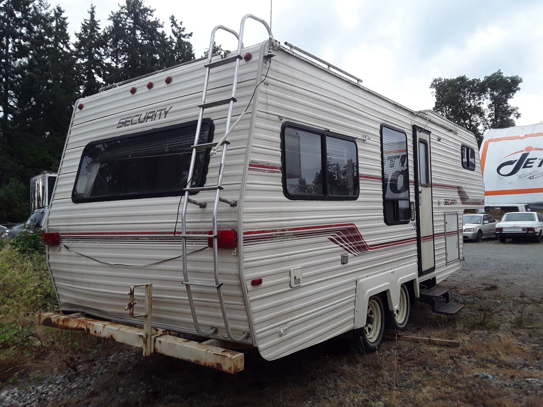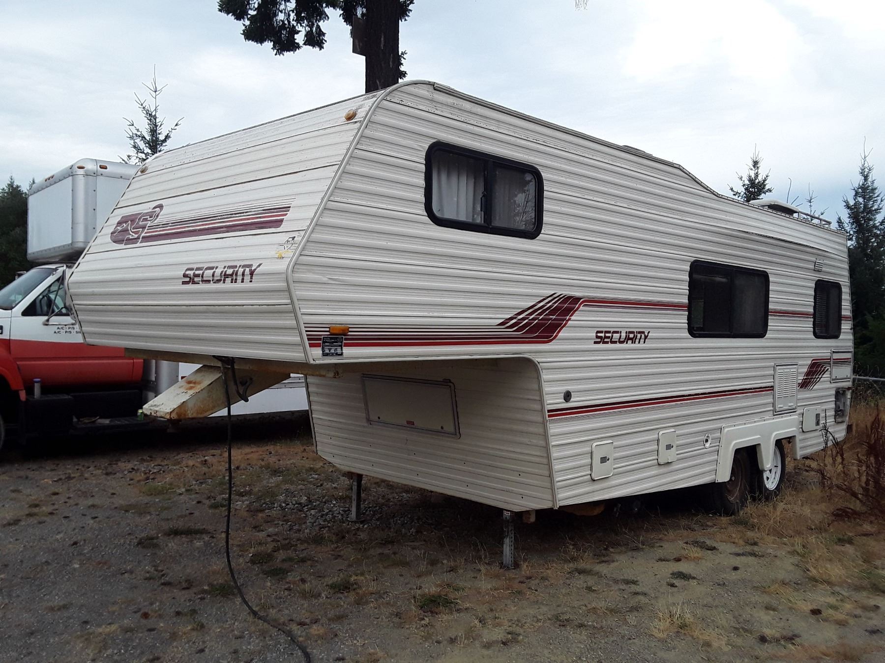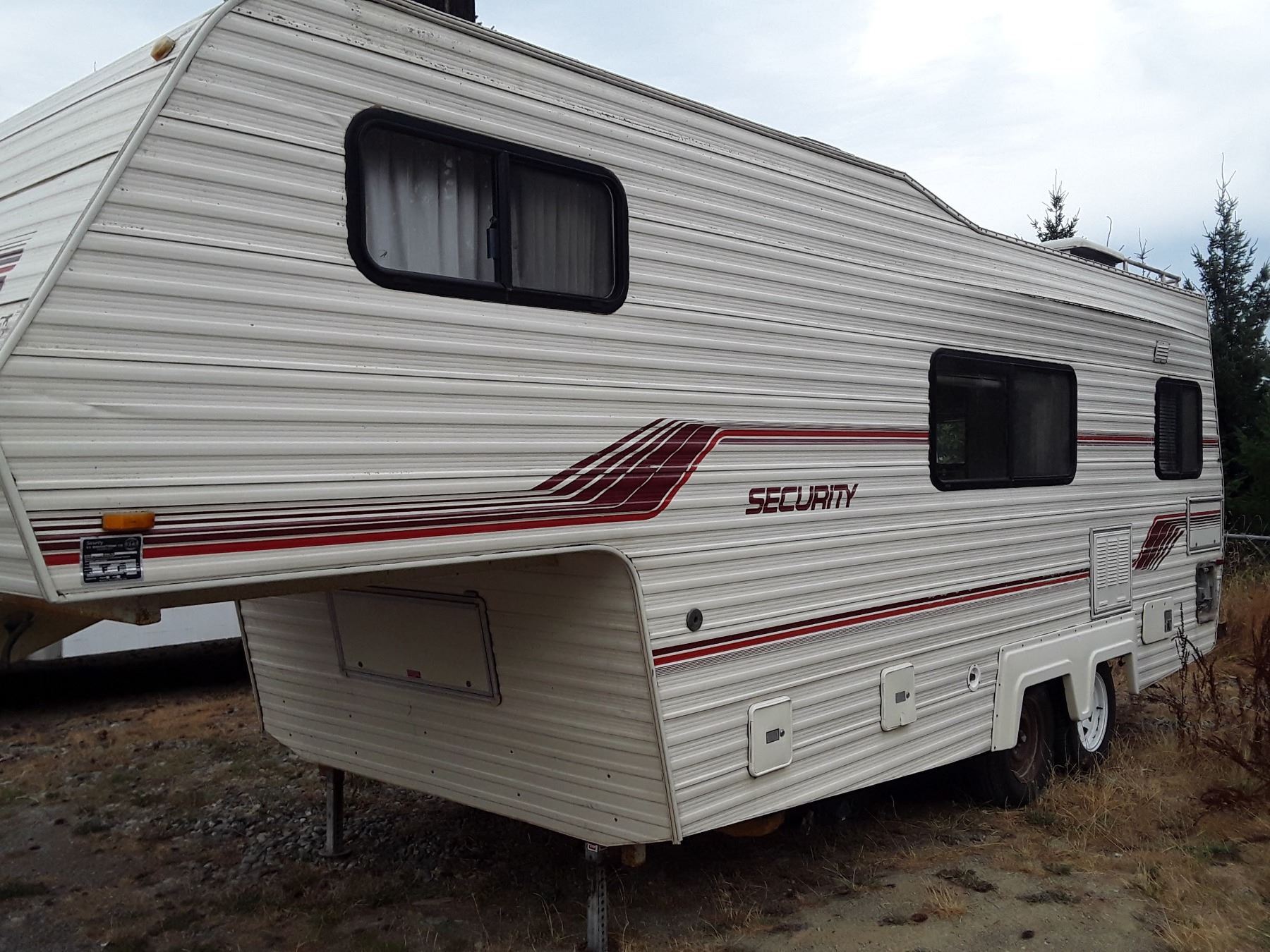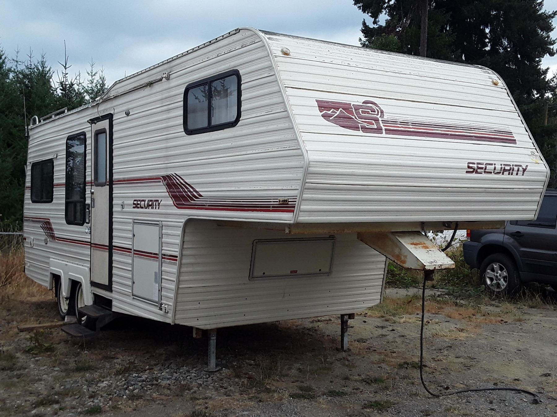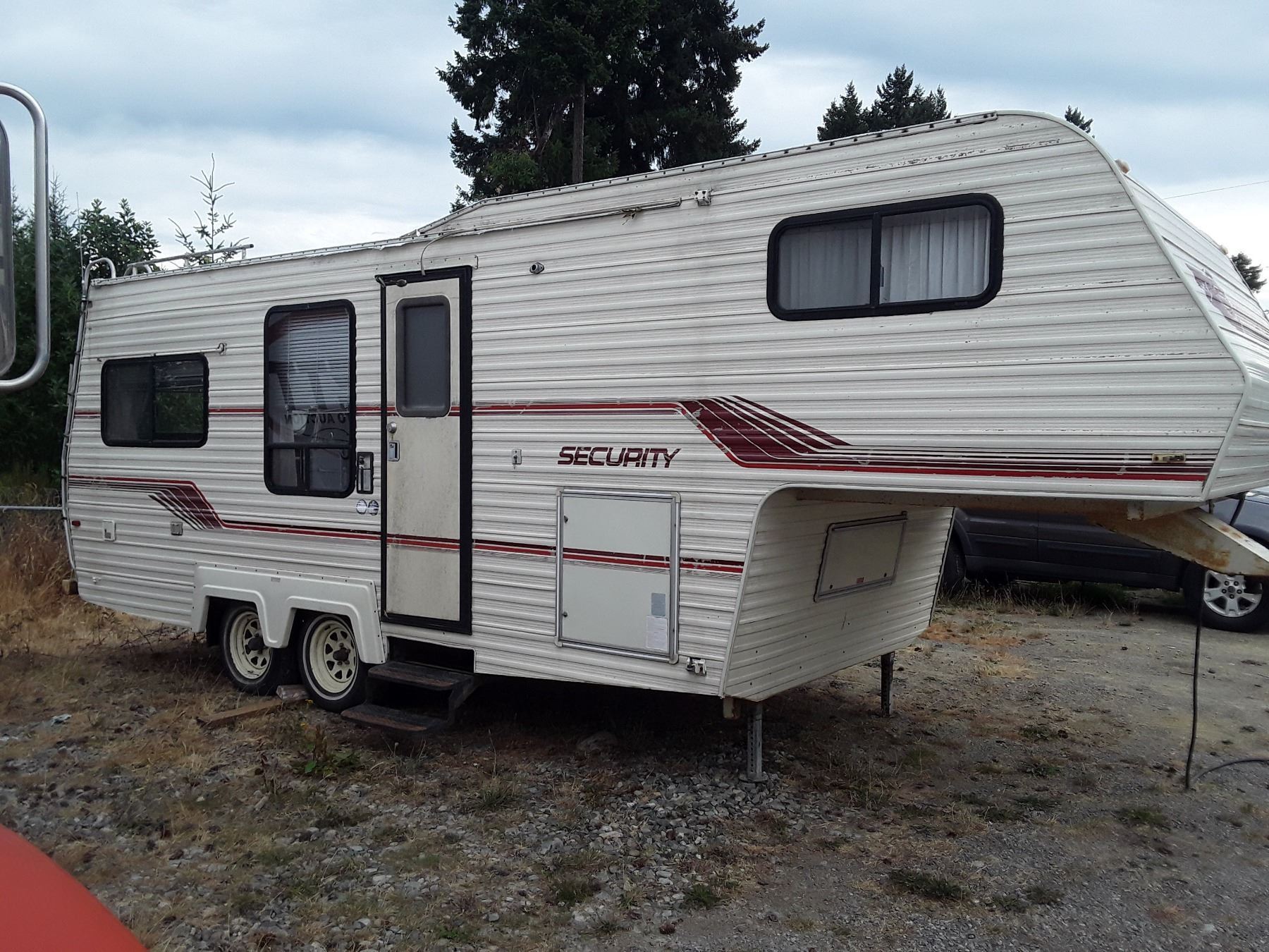 1989 SECURITY 5TH WHEEL – HAS WATER DAMAGE FROM ROOF LEAKING, SELLING “AS IS”