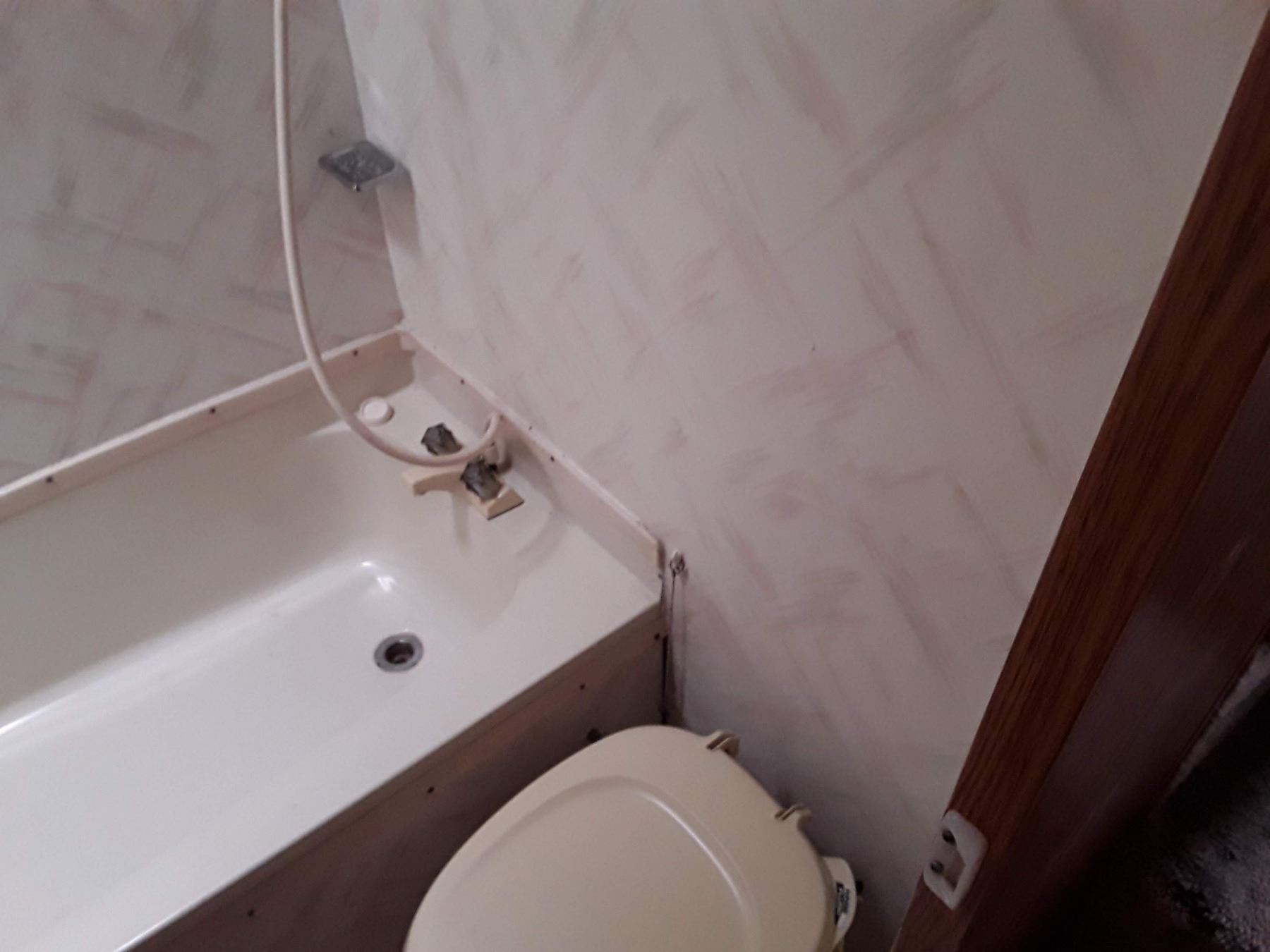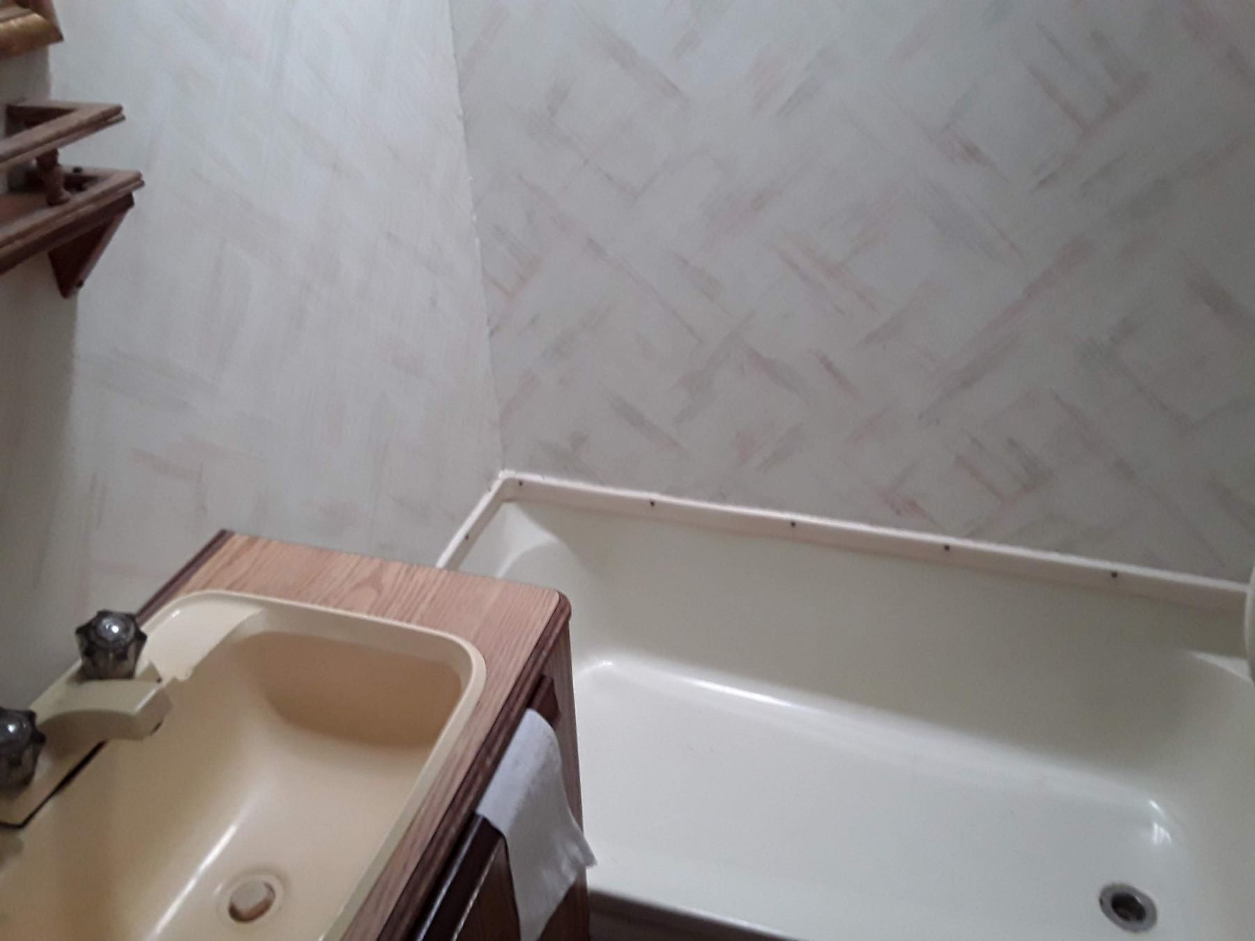 BATHROOM: TOLET, TUB SHOWER COMBO, SINK
