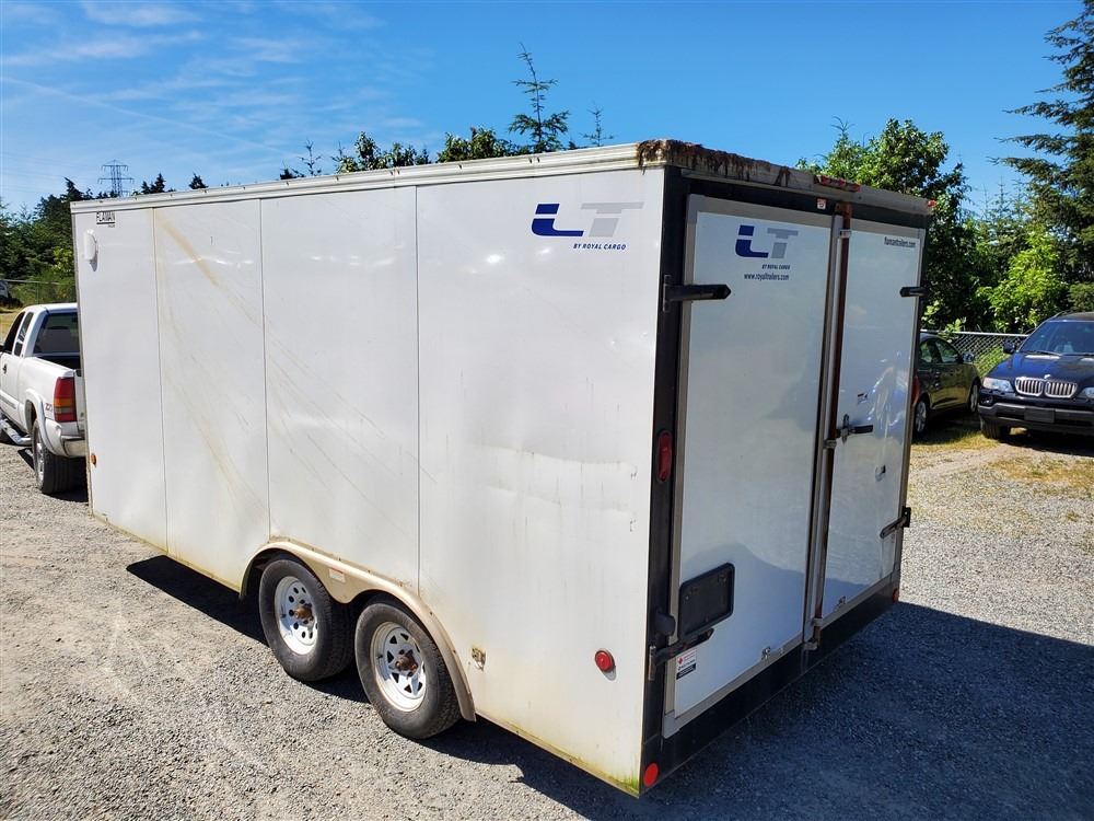 - 16'6' X 8' WIDE TRAILER WIRED WITH LIGHTS + PLUG INS, HAS BATTERY W/CHARGER,