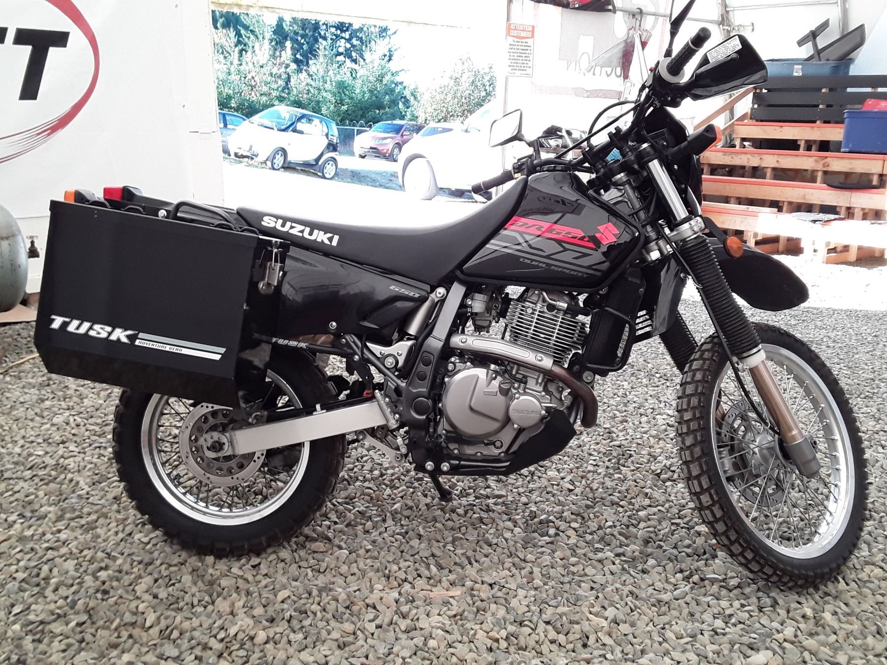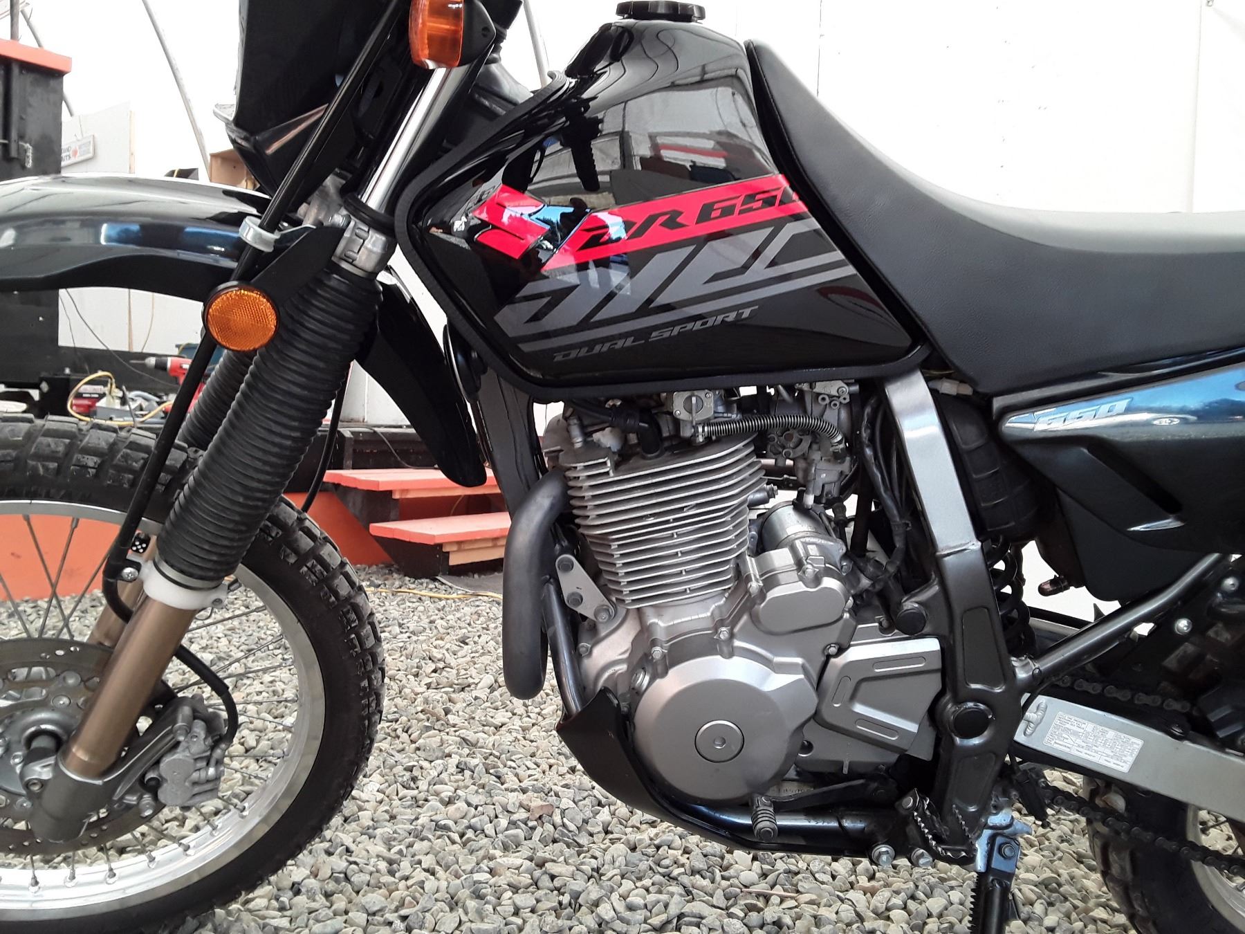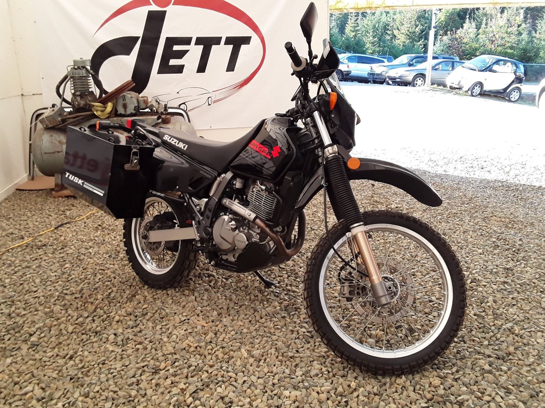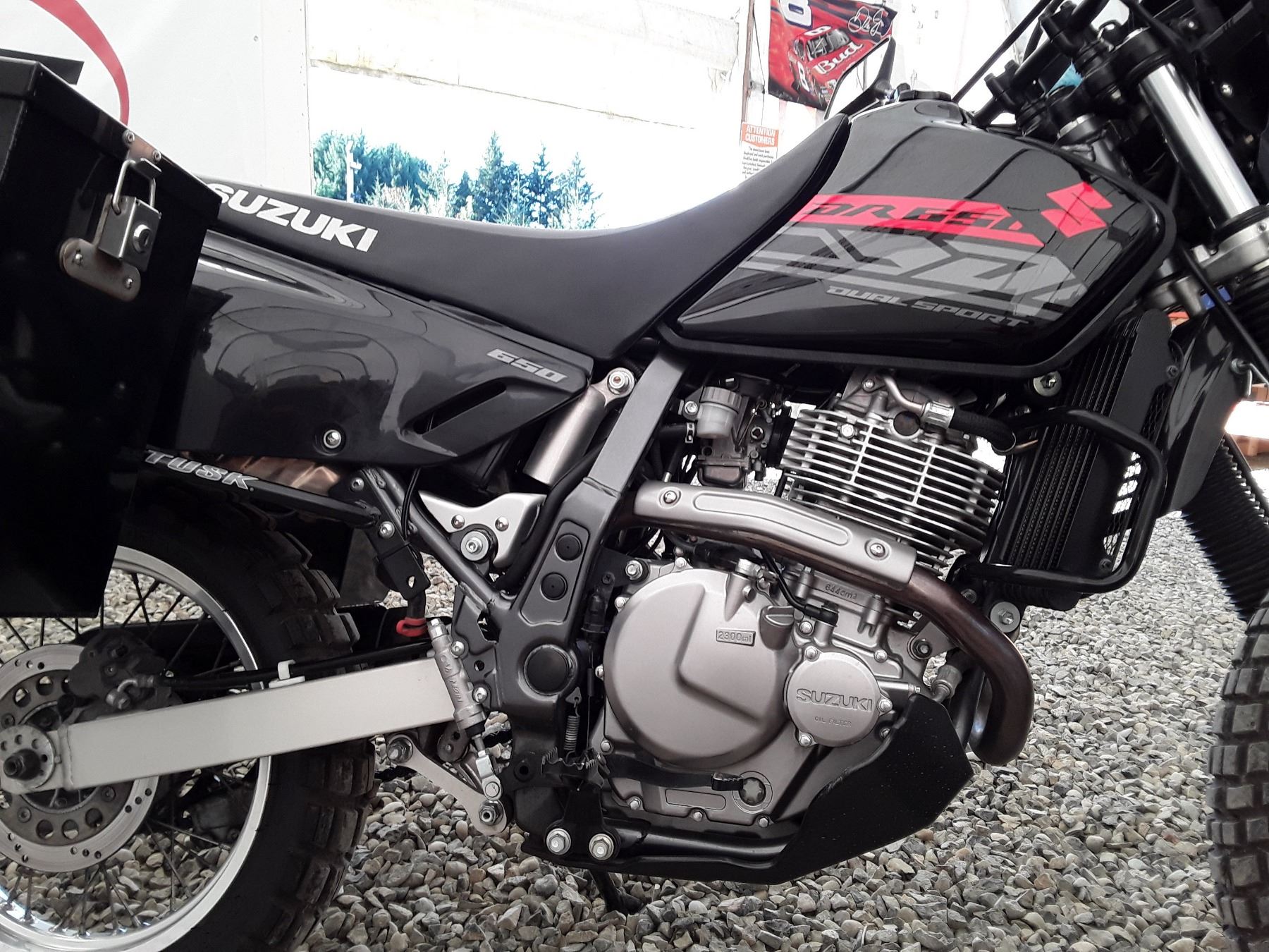The DR is a dual-sport motorcycle with a counterbalanced, single cylinder,