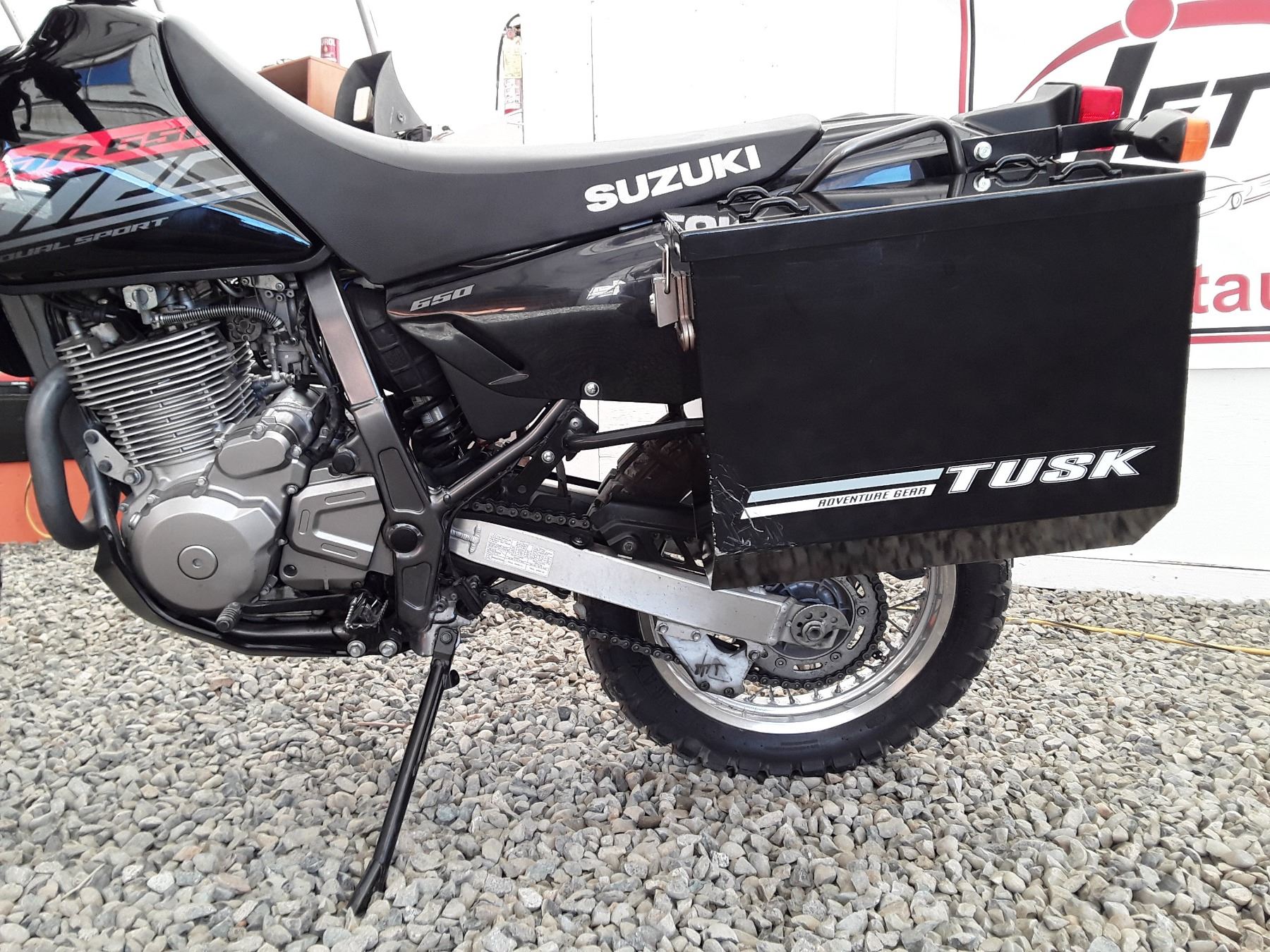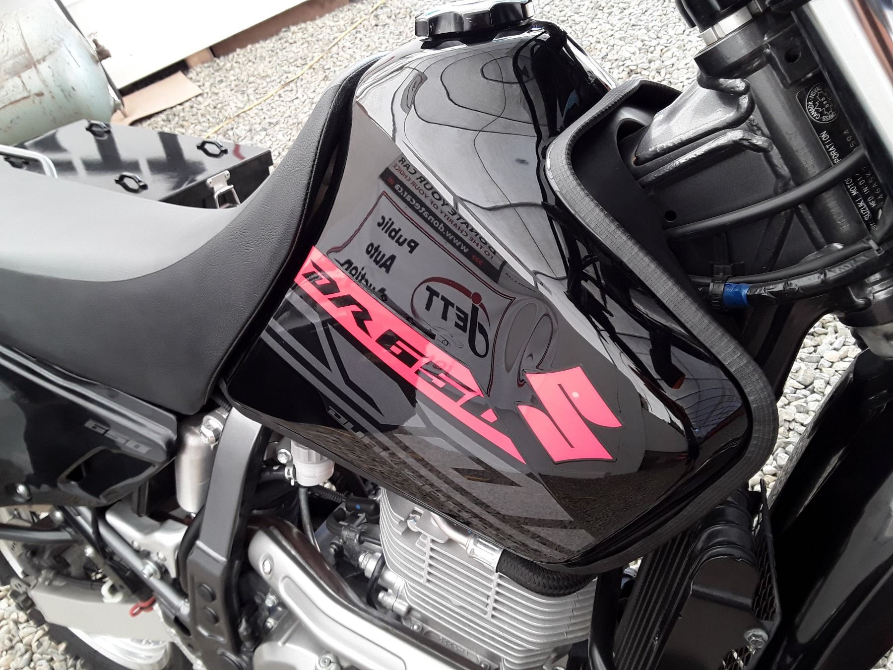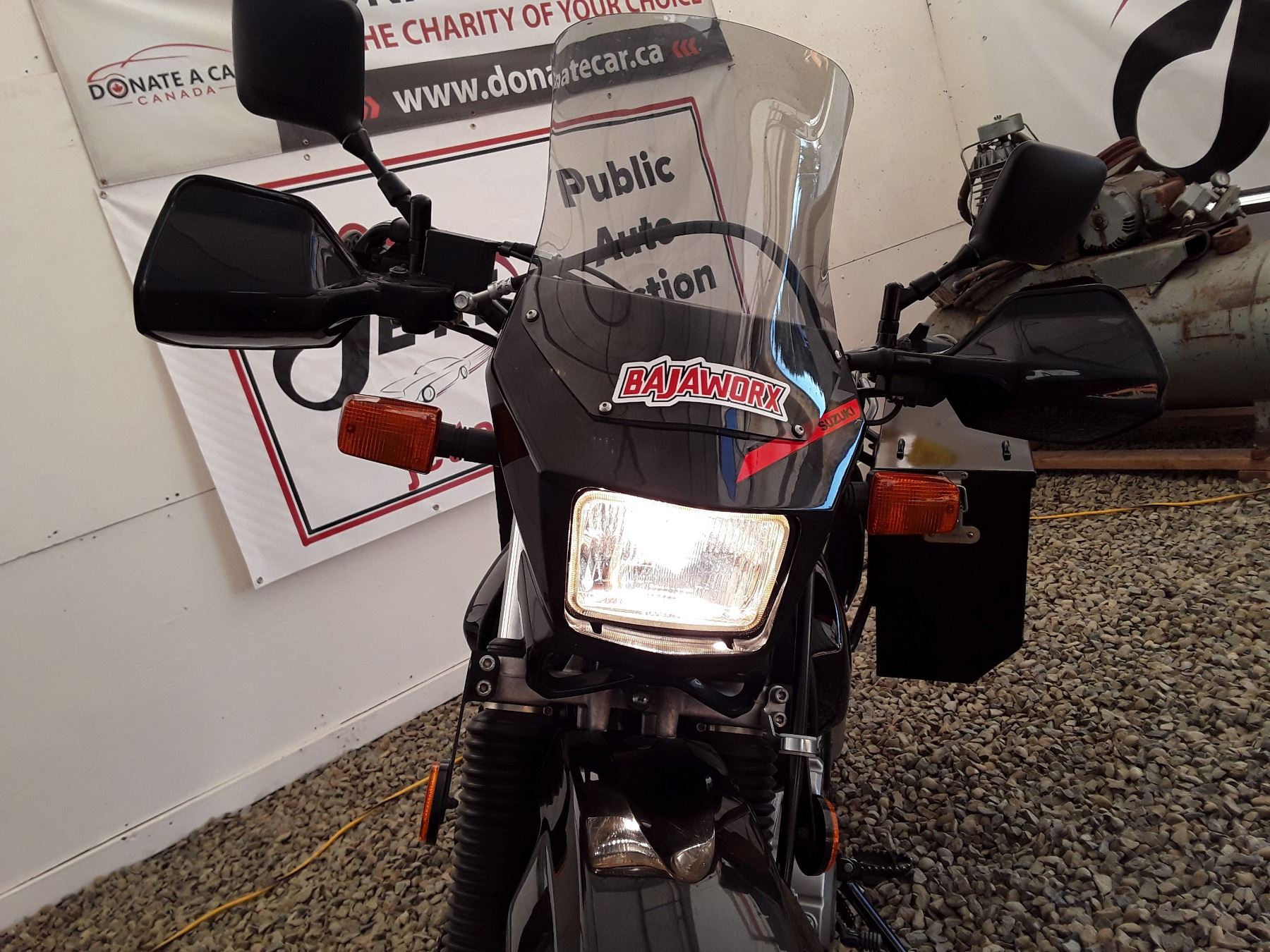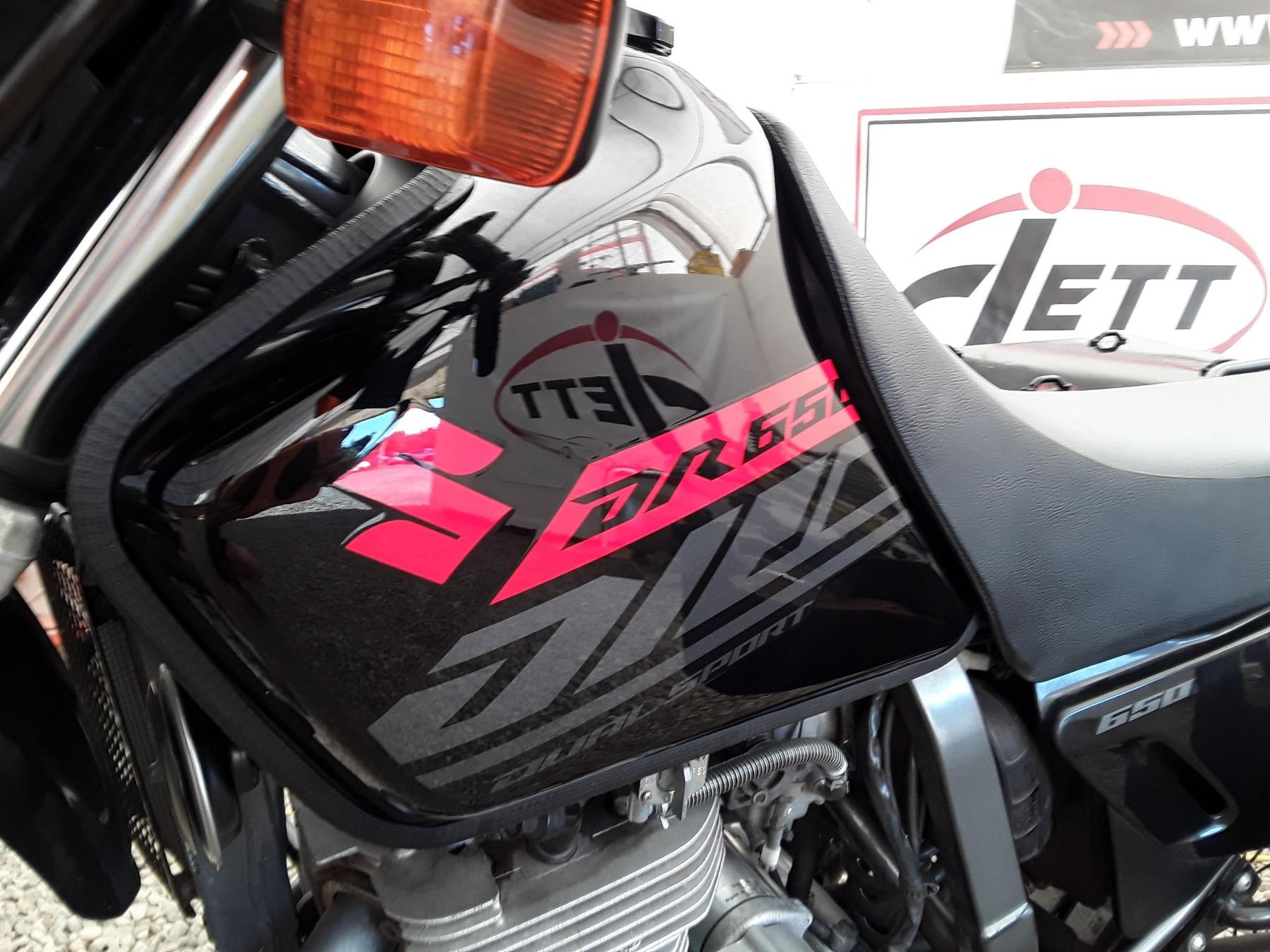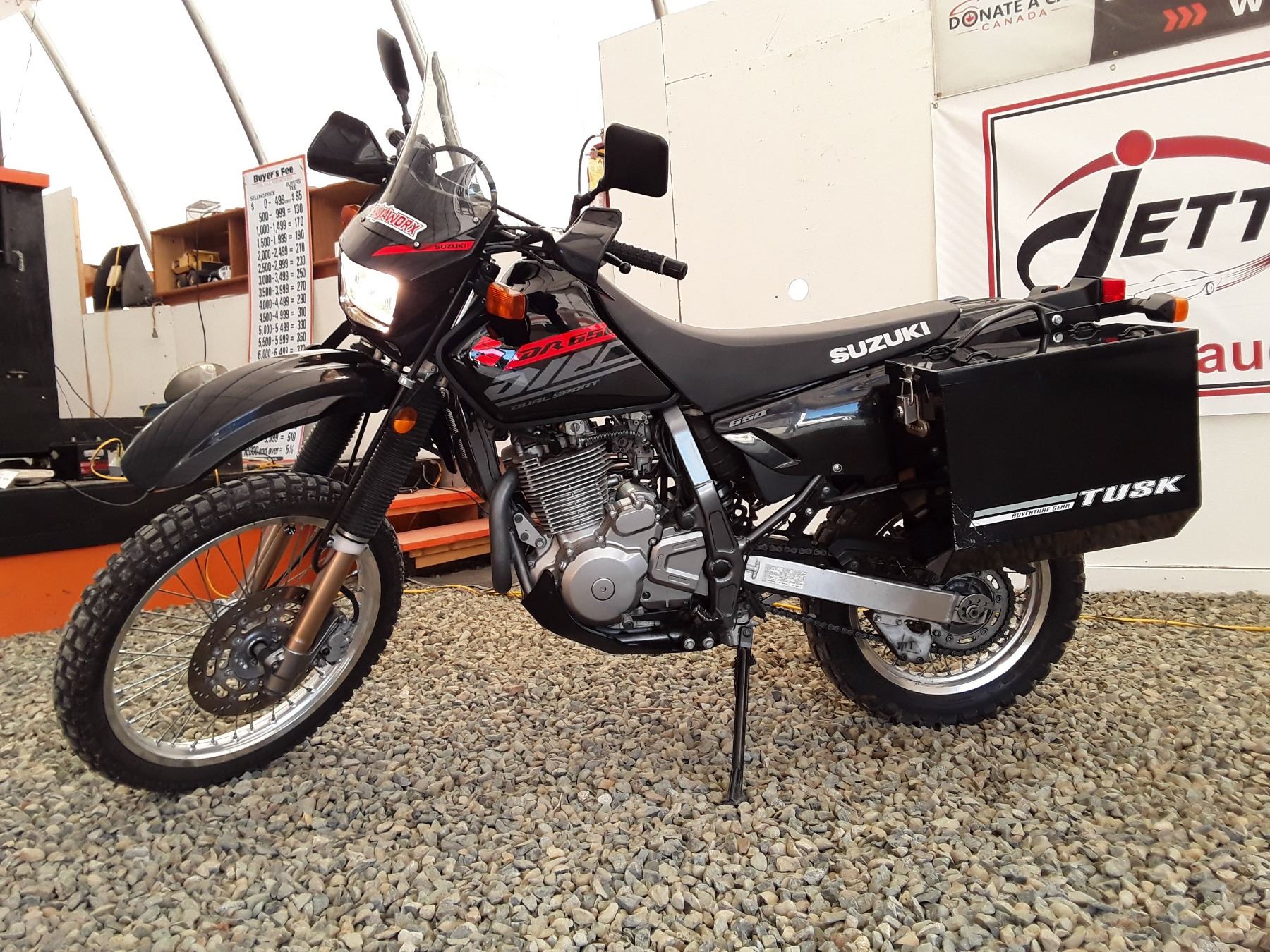 The DR is a dual-sport motorcycle with a counterbalanced, single cylinder,