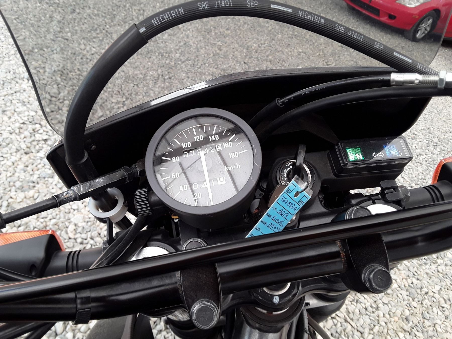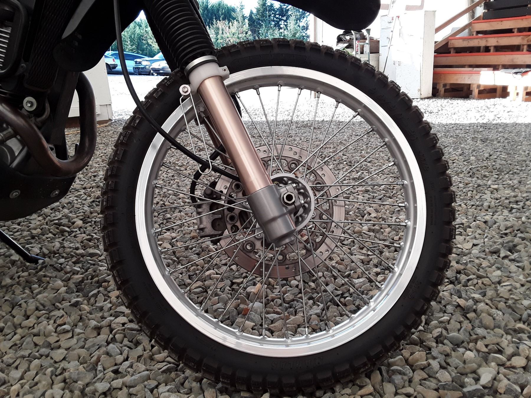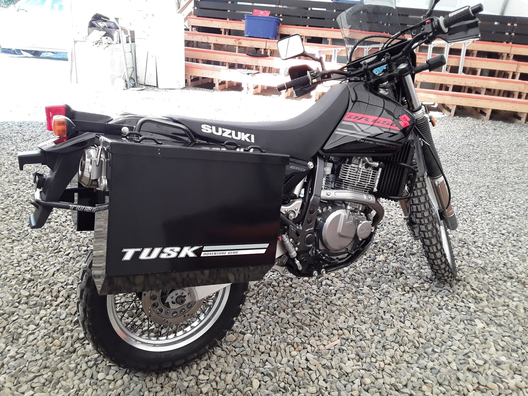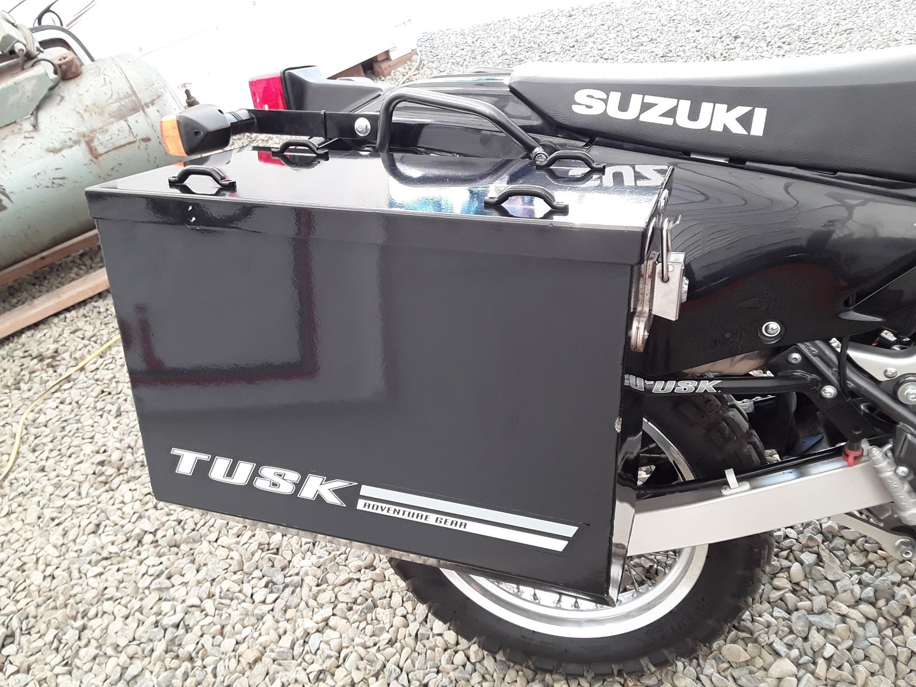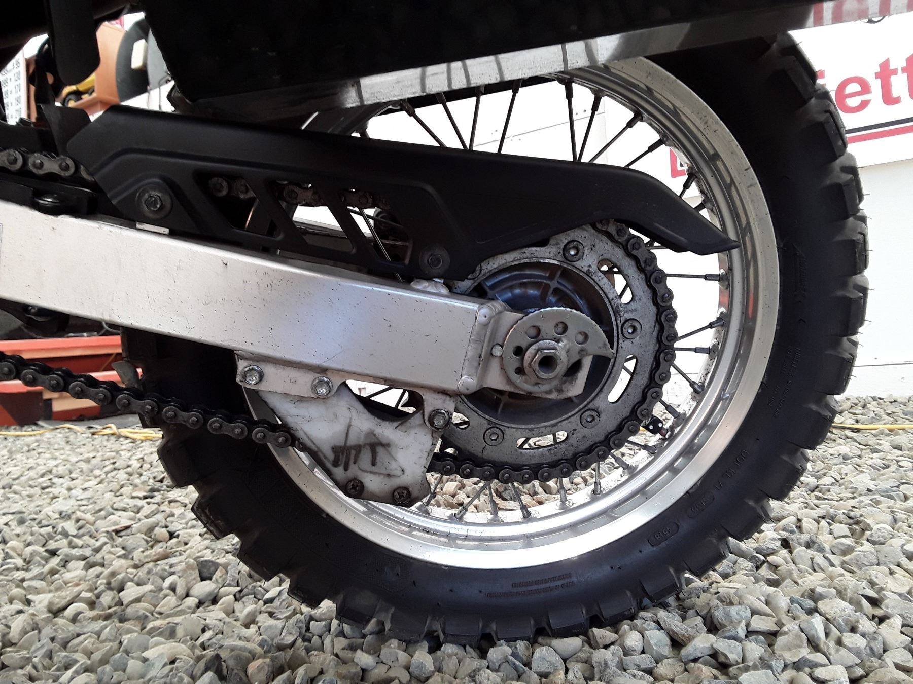 Seat and suspension height is adjustable, Like New Capra Mud & Snow Knobby Tires, Handle Bar Hand Protectors, Extra Large Gas Tank Included For Longer Trips, Tall Tinted Windshield, Tusk Adventure Aluminum Pannier Box's For Storage