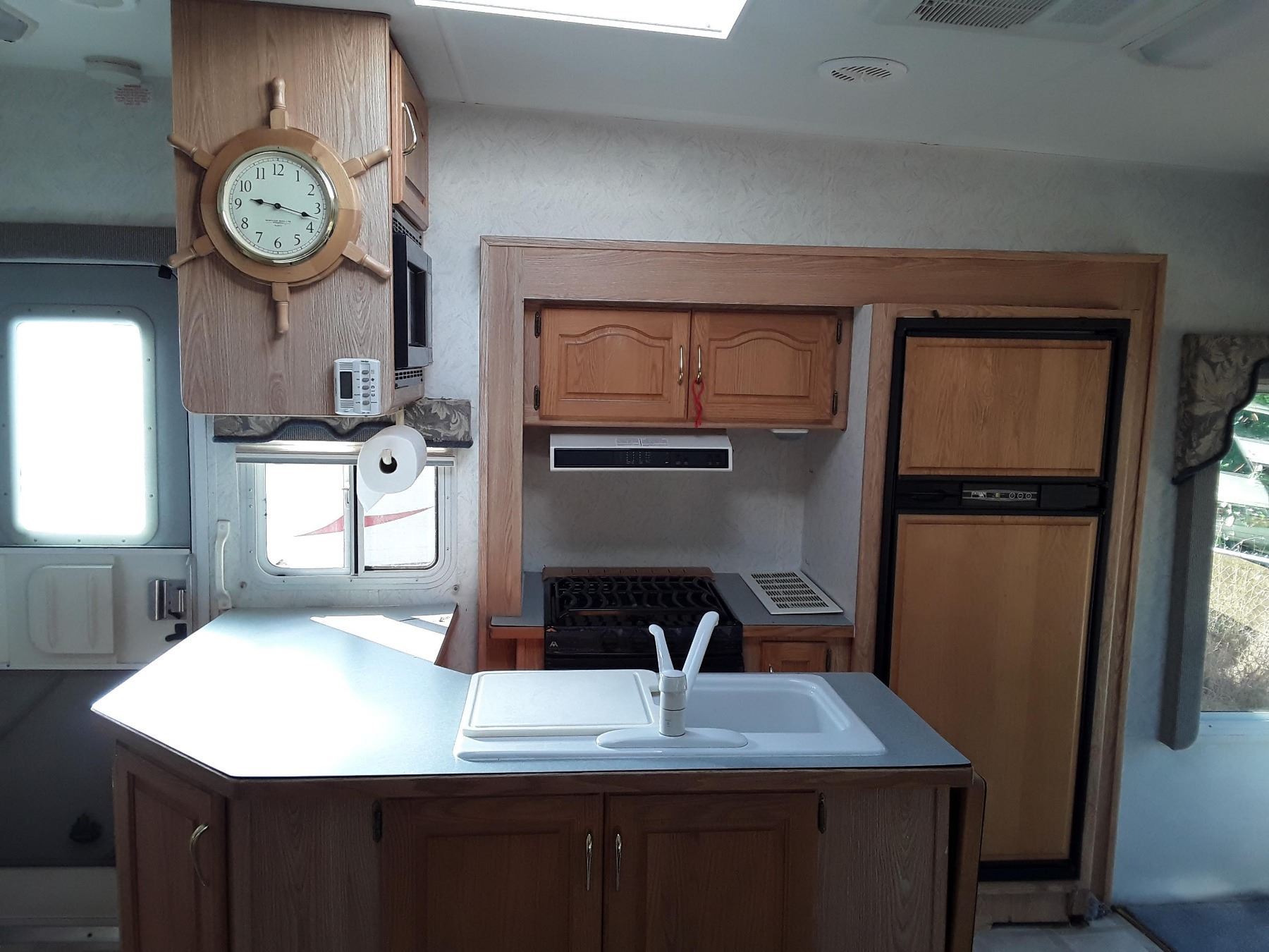 Kitchen: Stove/Oven Combo, Fridge/Freezer Combo, Double Sink, Microwave,