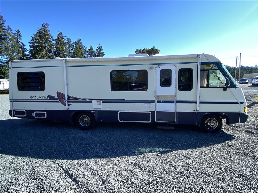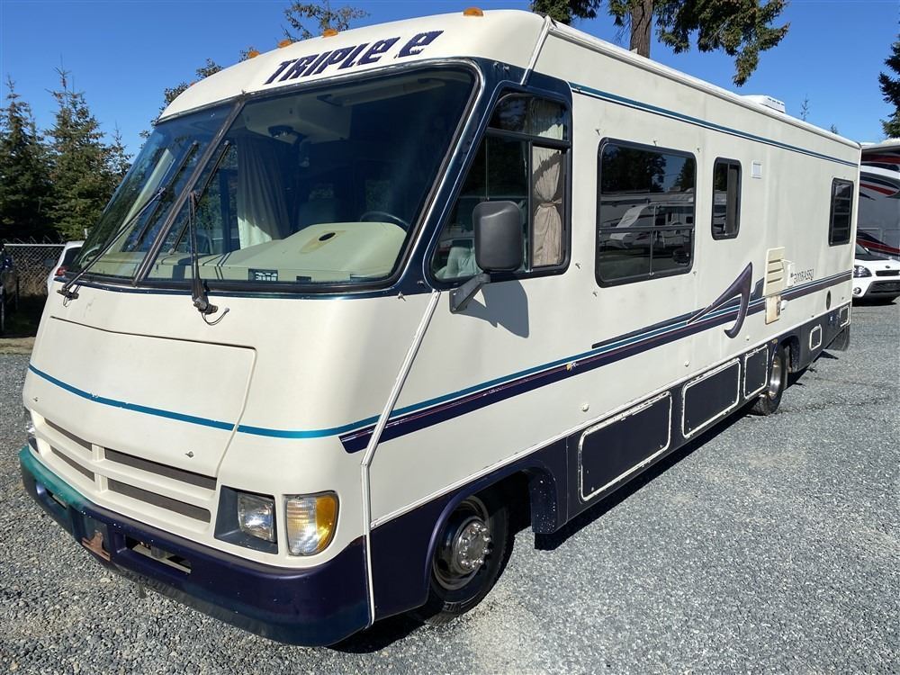 1994 TRIPLE E MOTORHOME, WHITE, 102242 KMS, 460, 8 CYLINDER, GASOLINE, AUTOMATIC, TRANSMISSION, REAR WHEEL DRIVE, SLEEPS 6, DOUBLE BED, TABLE FOLDS DOWN, COUCH FOLDS DOWN, DOUBLE SINK, FIDGE/FEEZE COMBO, STOVE/OVEN COMBO, MICROWAVE, SHOWER / TOILET/ SINK, MEDICINE CABINET, FURNACE, LOTS OF STORAGE, TV, RAIDO WITH CD PLAYER. AIR CONDITIONING, TILT STEERING, CRUISE CONTROL, CD PLAYER, REBUILT TRANSMISSION, NEWER TIRES/BRAKES/WANTER TANK/ 12V WATER PUMP. NEWER FAUCETS. KENWOOD STEREO . DECLARATIONS: NO DESIGNATIONS NOT MECHANICALLY INSPECTED, NOT SUITABLE FOR TRANSPORTATION. MUST TOW.0 ACCIDENTS 0 GLASS CLAIM, TOTALING $2708. SERVICE HISTORY SHOWS0 RECORDS.