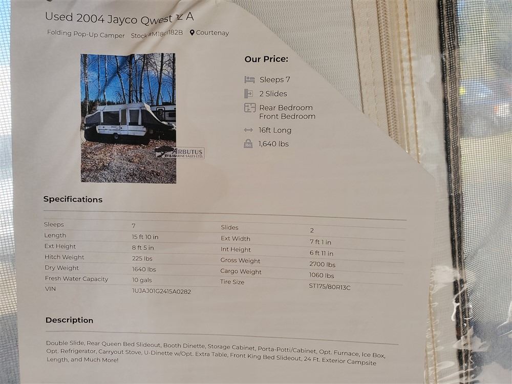 Auction Notes: Closed The Length Is 15.5' Apx & When Set Up 24' Apx, No Keys
