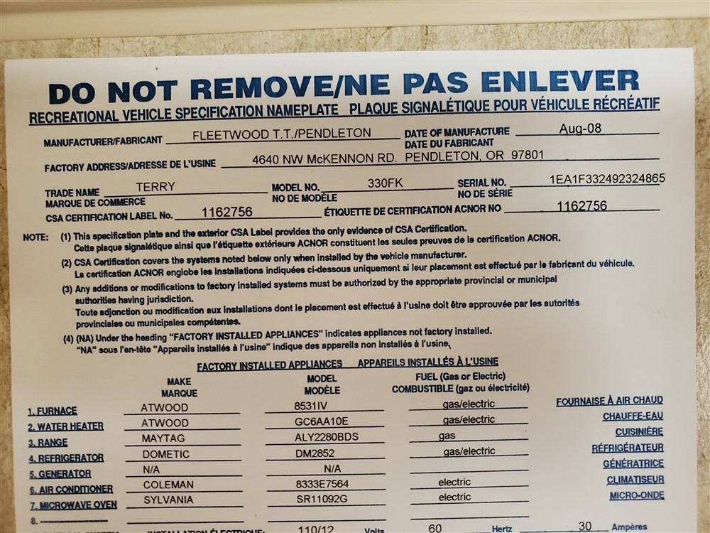 OTHER: Air Conditioning, Furnace, Lots Of Storage, Power Awning, 2 Power Slides, Out Side Shower, Stabilizer Jacks , TV, Radio With CD Player & Bluetooth, Has Manuals