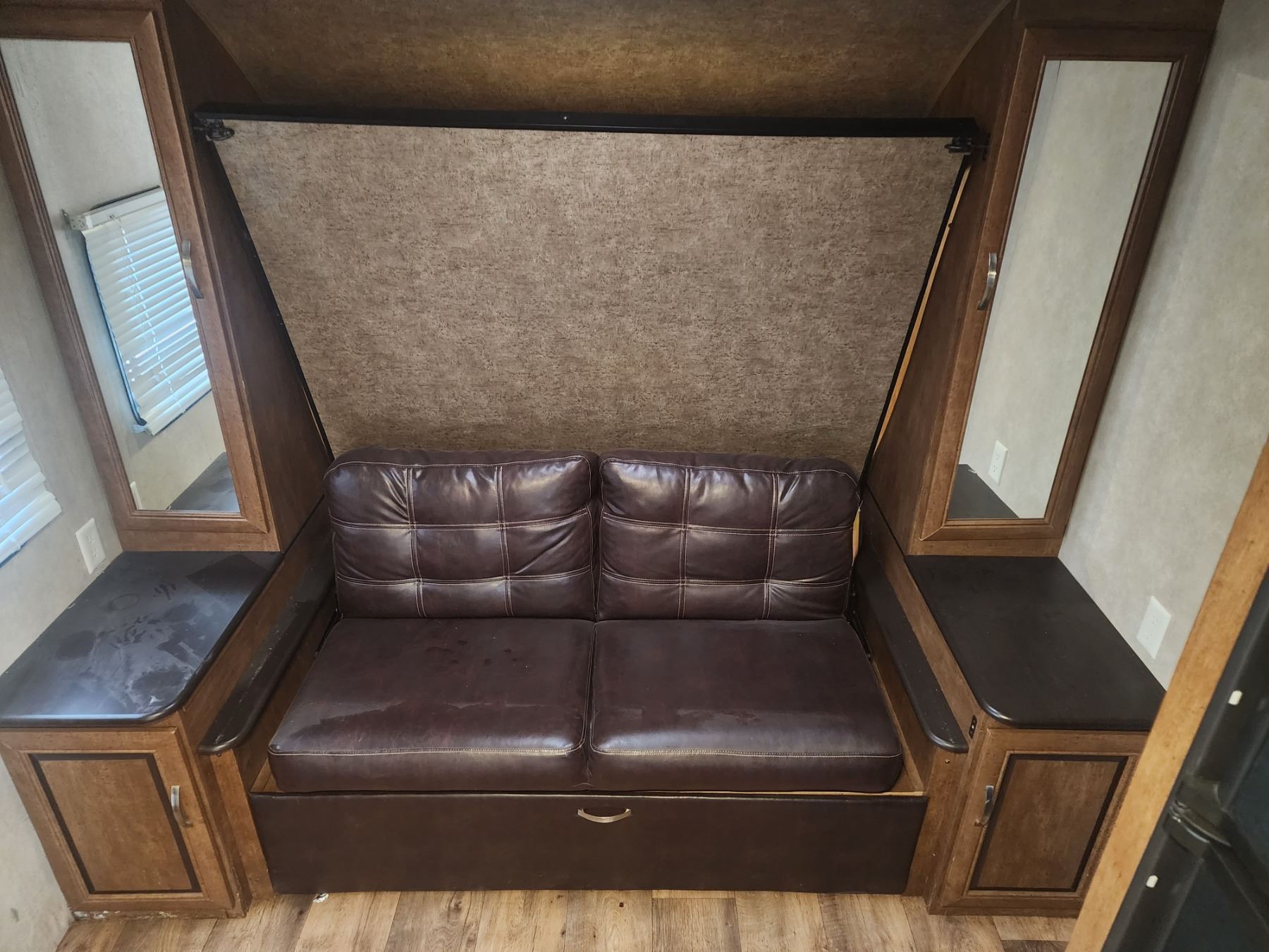 BEDROOM:, Double Bed, Table Folds Down, Couch Folds Down