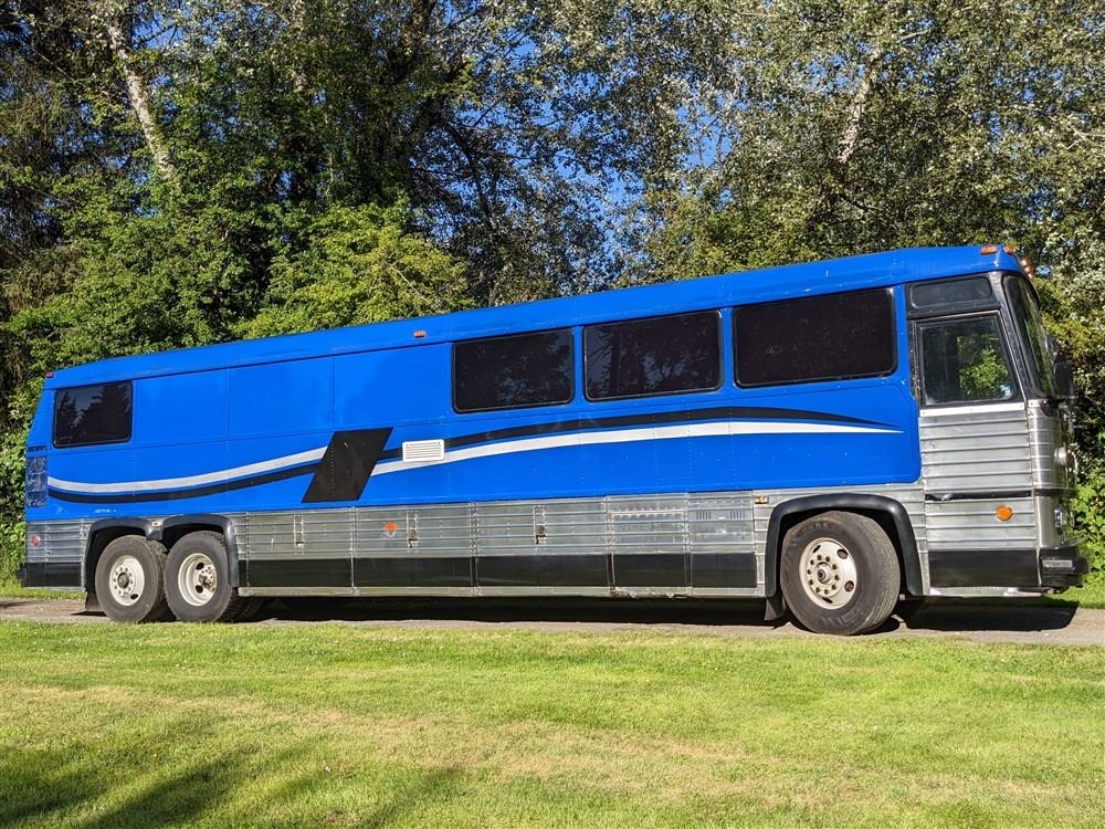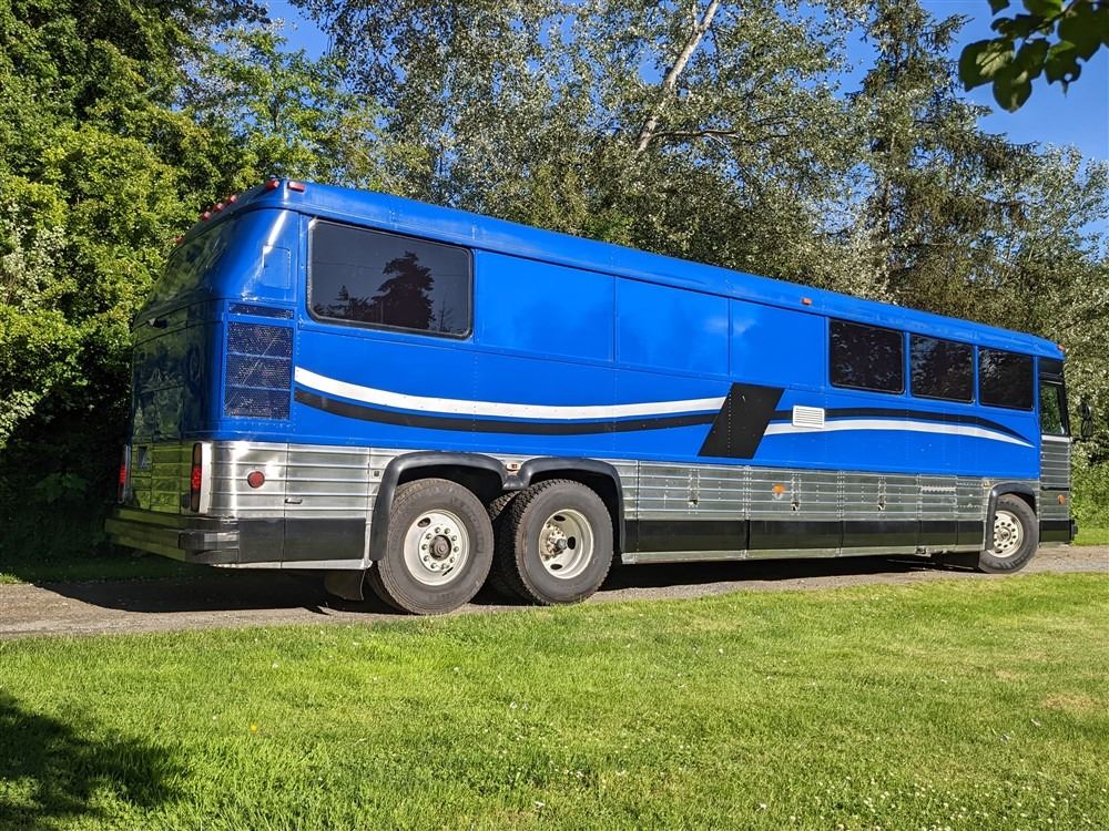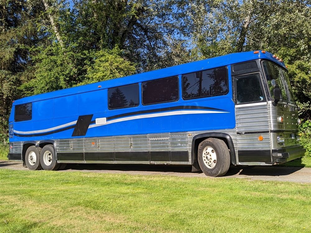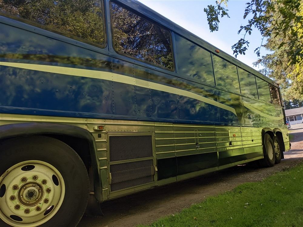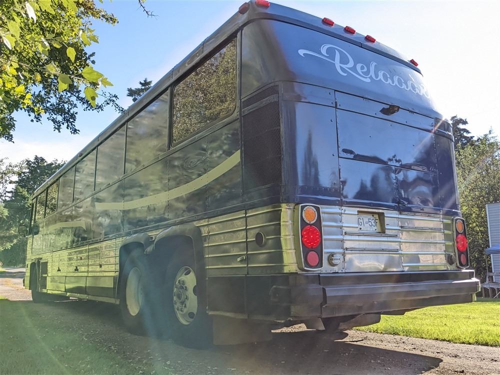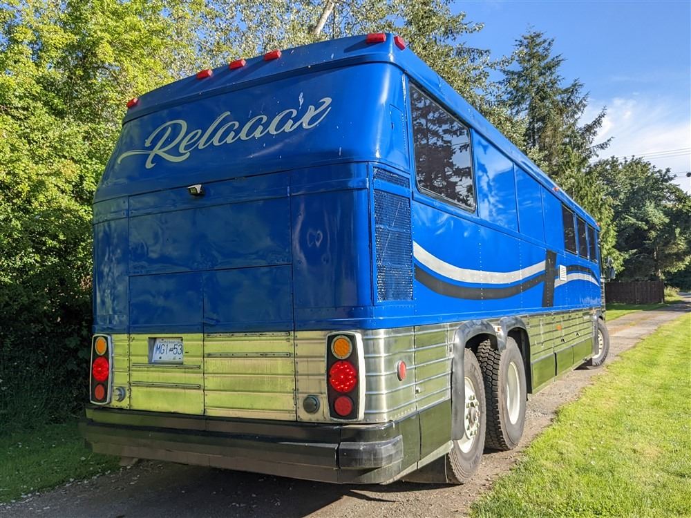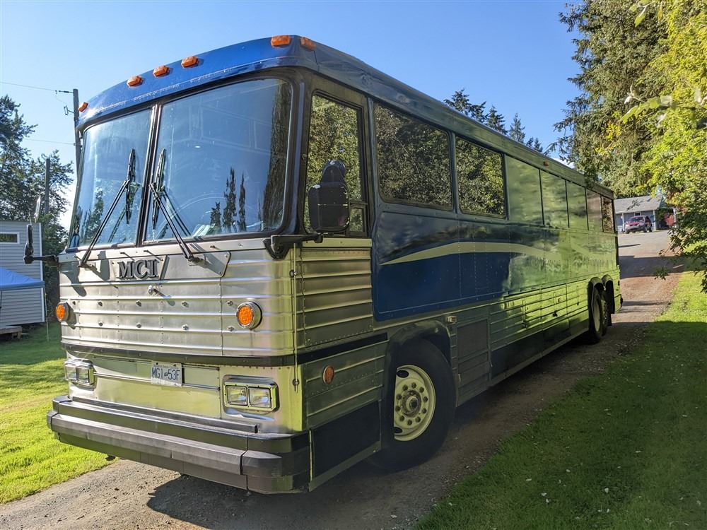 2021 bus conversion. Body is a 1979 MCI MC9. Bus is now registered as a motorhome with ICBC so you only need Class 5 with Air brake endorsement to drive this bus.