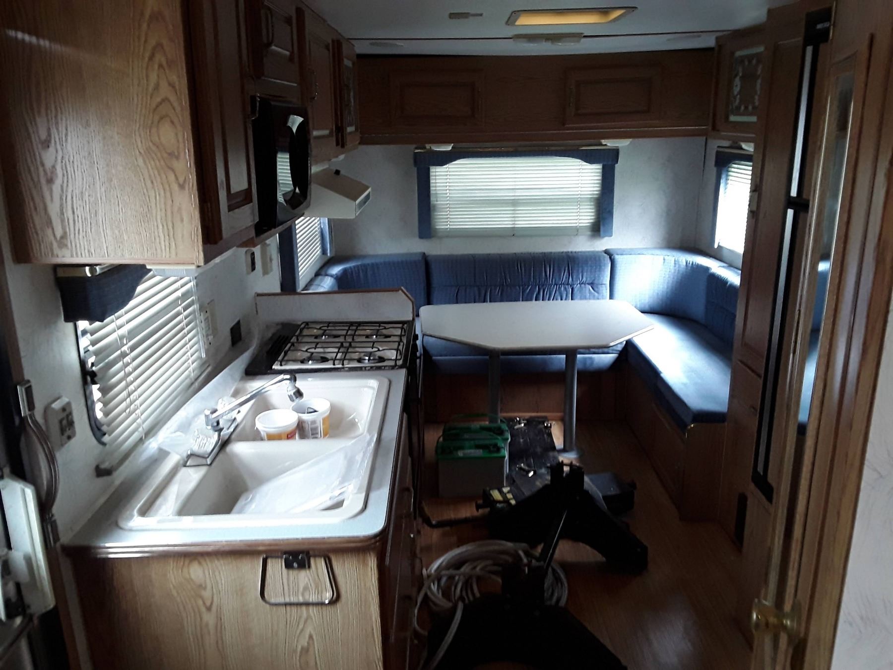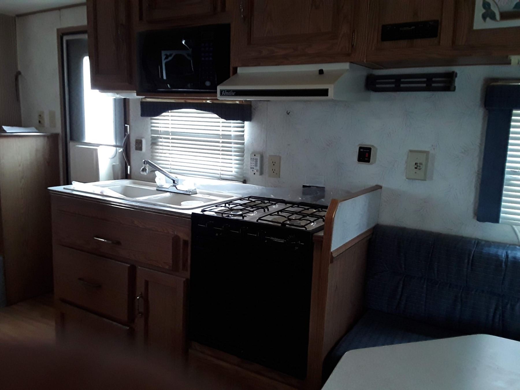 Includes Fridge, Stove, Microwave, Toilet & Shower, Double Sink, Queen size Bed, Complete 5th Wheel Hitch