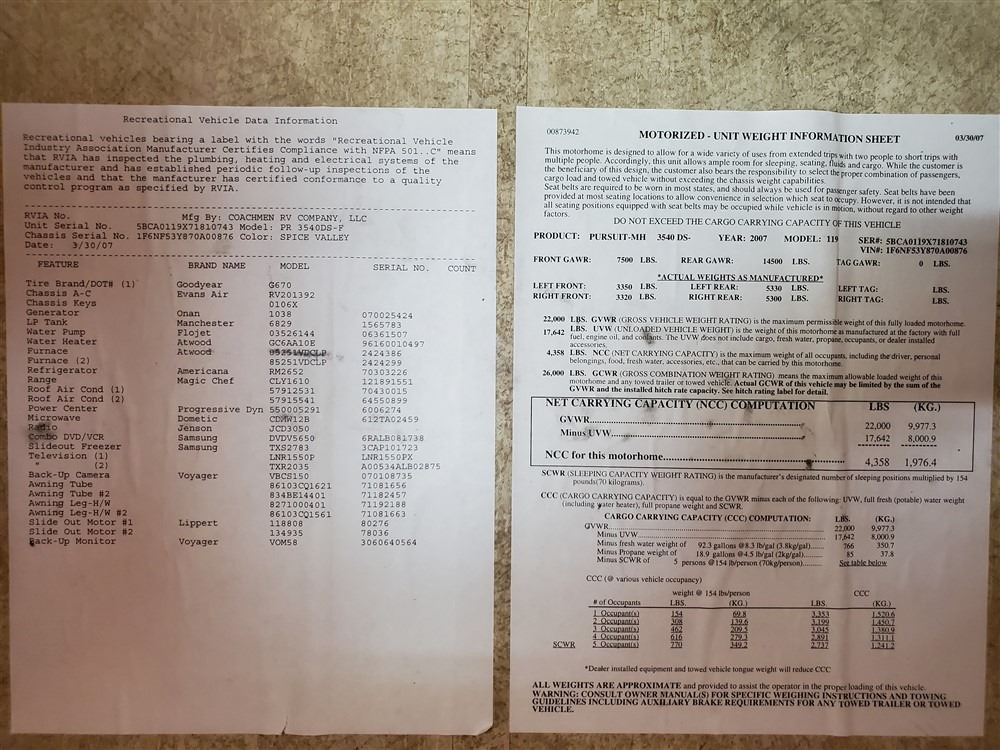 OTHER: Air Conditioning, Furnace, Lots Of Storage, Awning, 2 Power Slides, 3 TV, Has Manuals