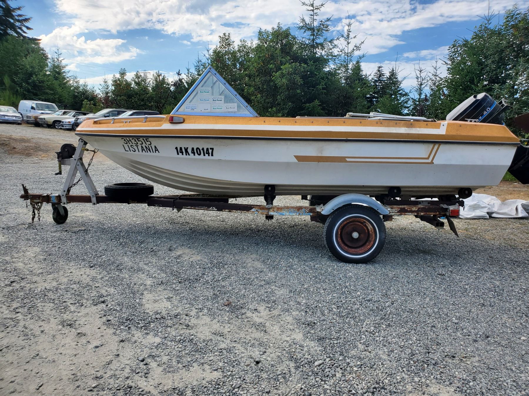 - COMES WITH A FUEL TANK AND JERRY CAN. THE BOAT SITES ON AN EZ-LOADER 4.4 GALVINIZED TRAILER