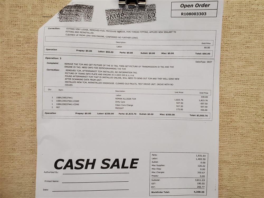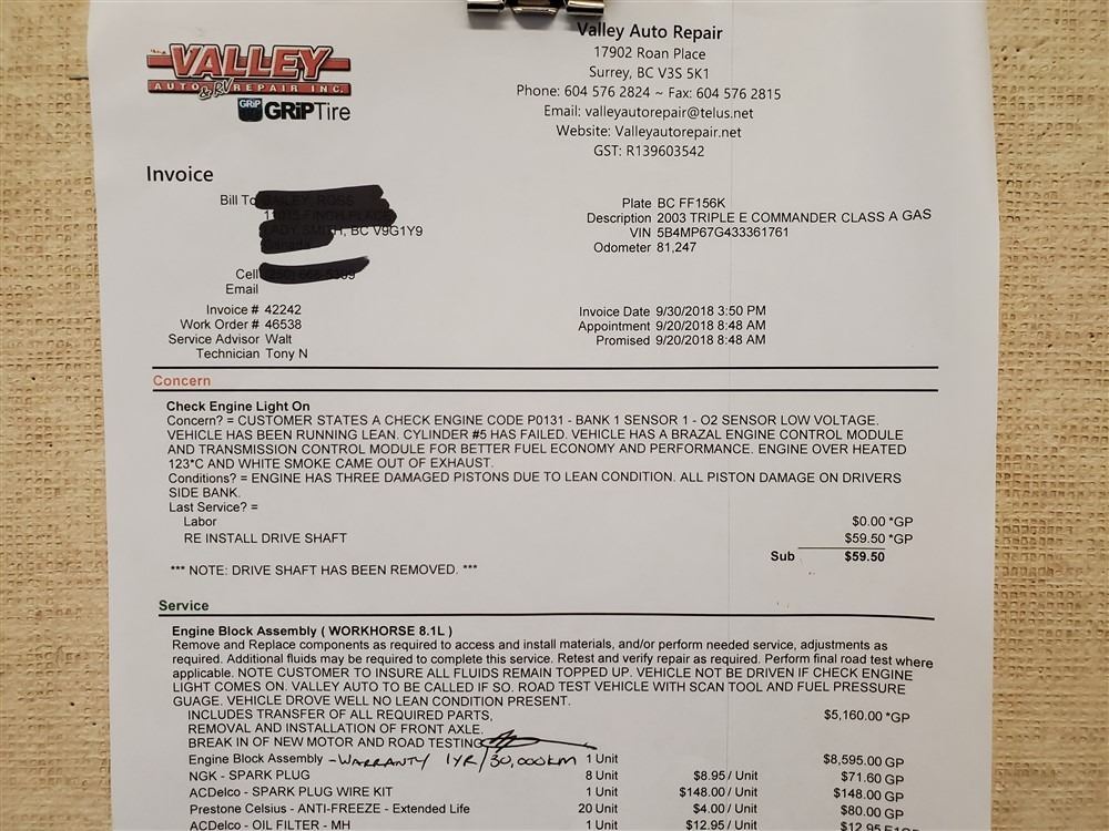 Auction Notes: Motorhome Is 35FT APX,Rebuilt engine 9/20/2018 @ 81000km, Lots of maintenance receipts from new "All Recreational Vehicles Are Sold As Presented No Returns, $4200 Transmission work just performed