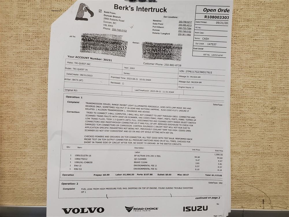 Automatic Allison transmission and GM, 10 Cylinder Engine , Rear Wheel Drive, 95,024 Kilometers