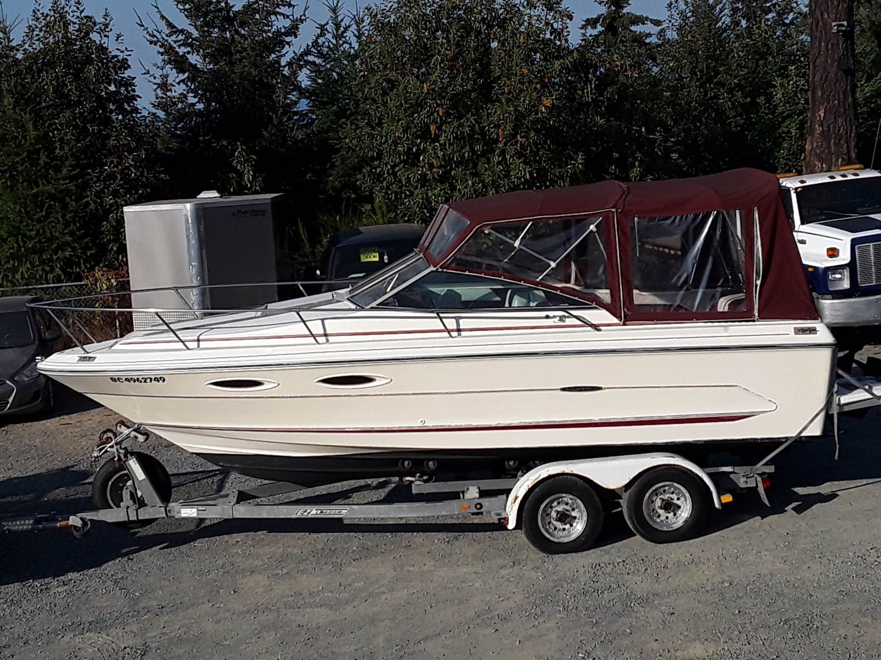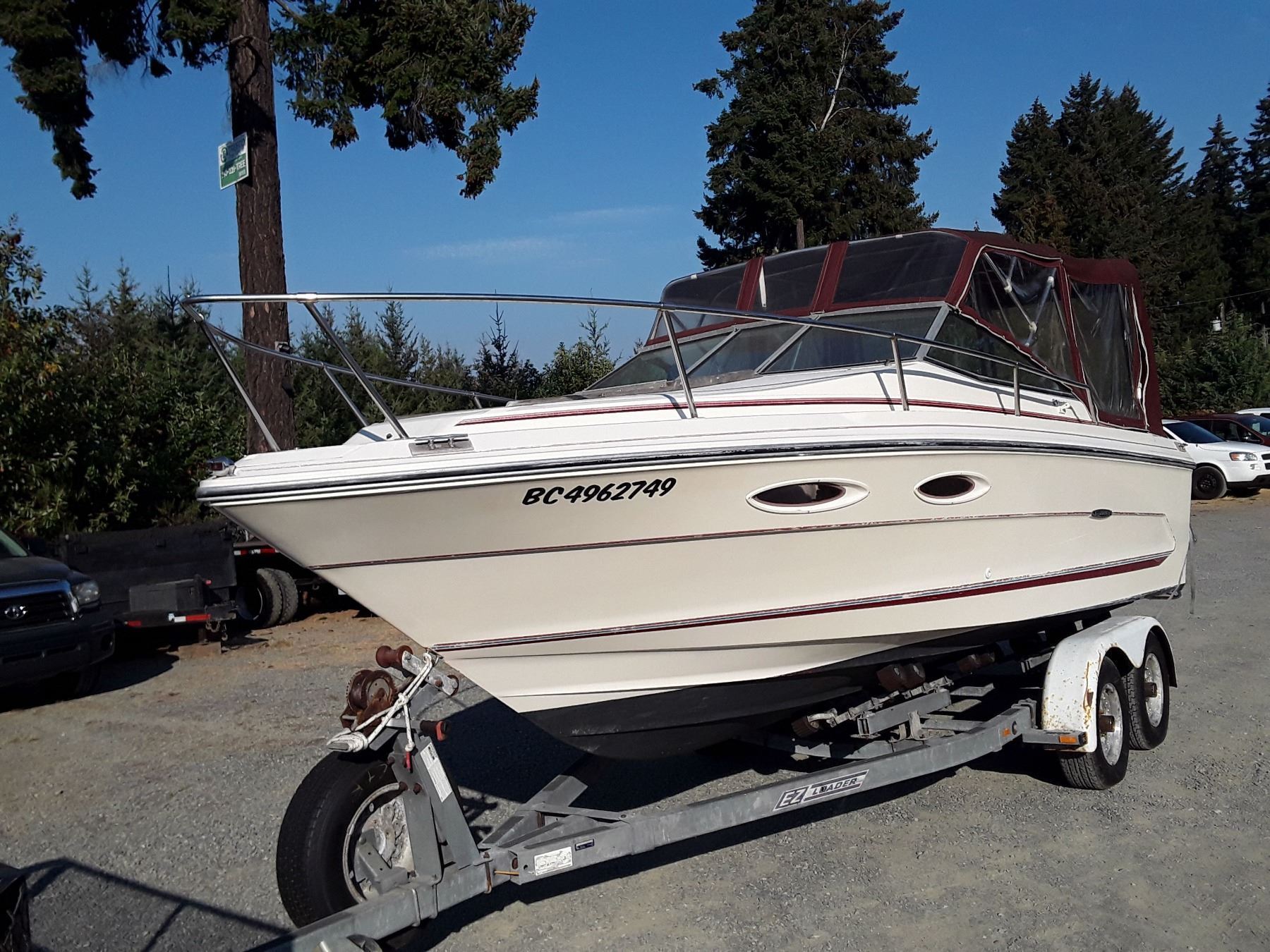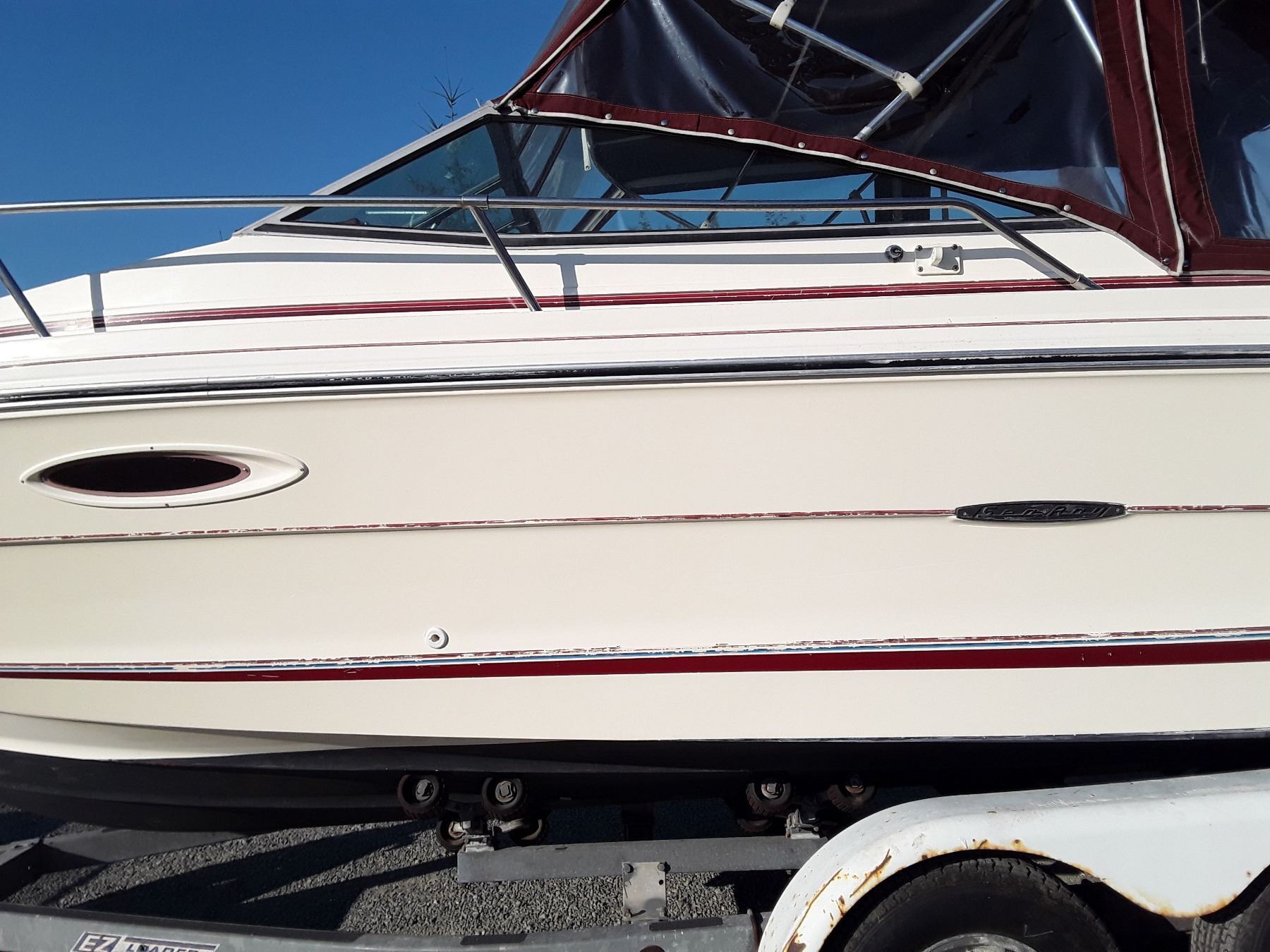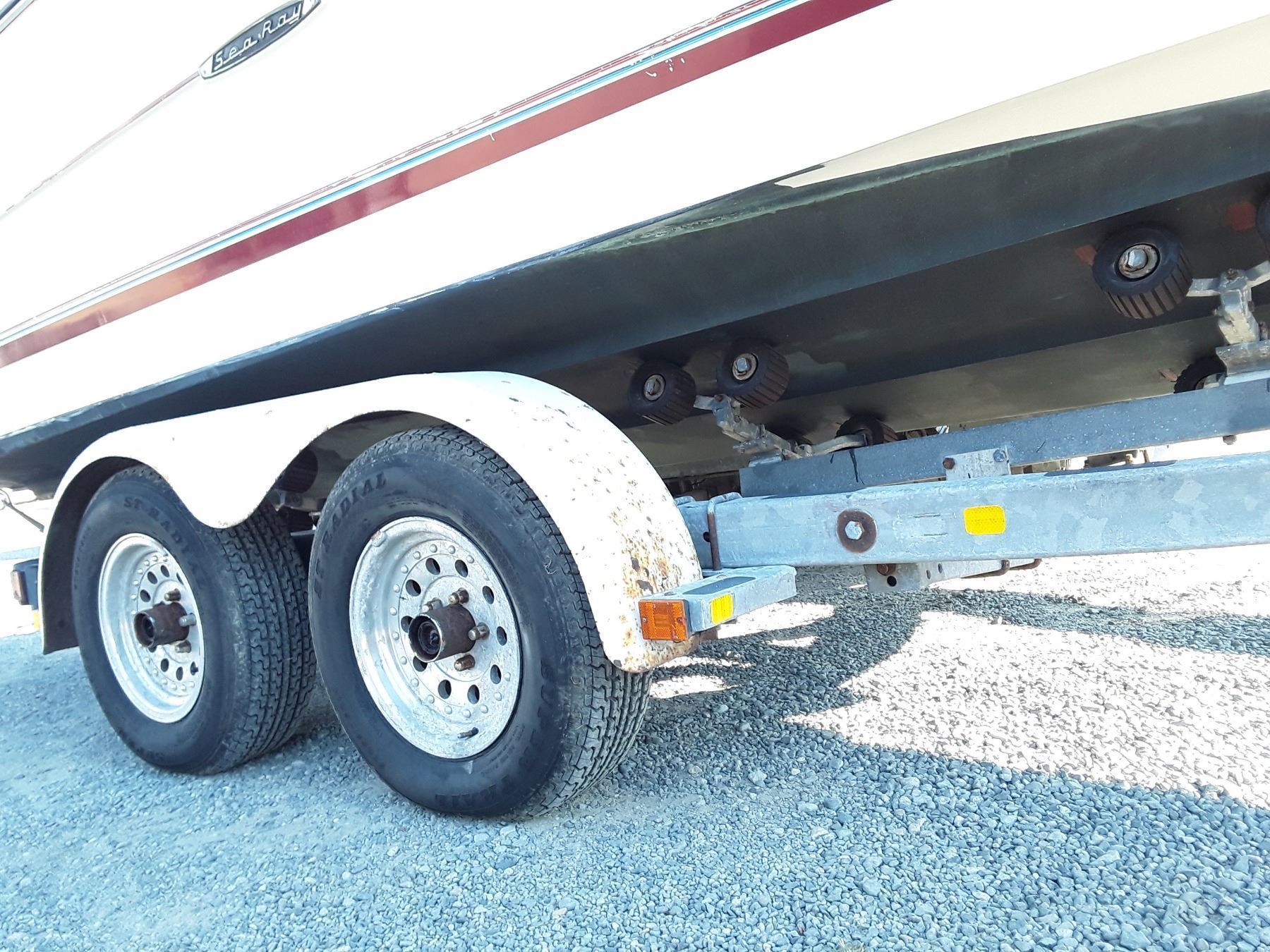 1984 SEARAY BOAT 24FT APX SITTING ON A 23.5 FT APX EZ LOADER BOAT TRAILER