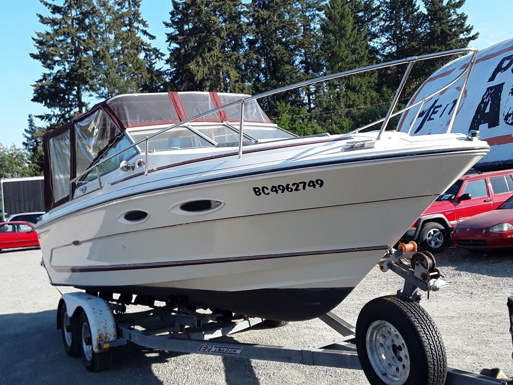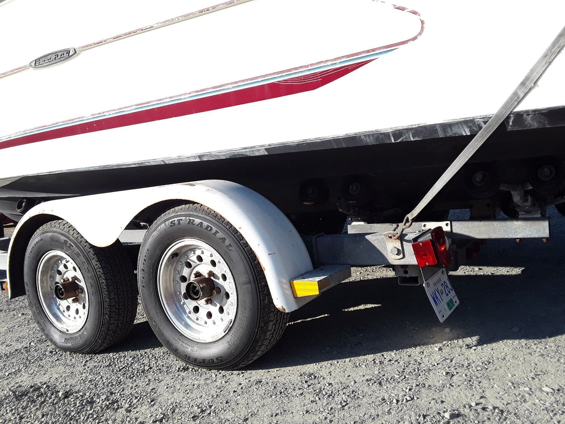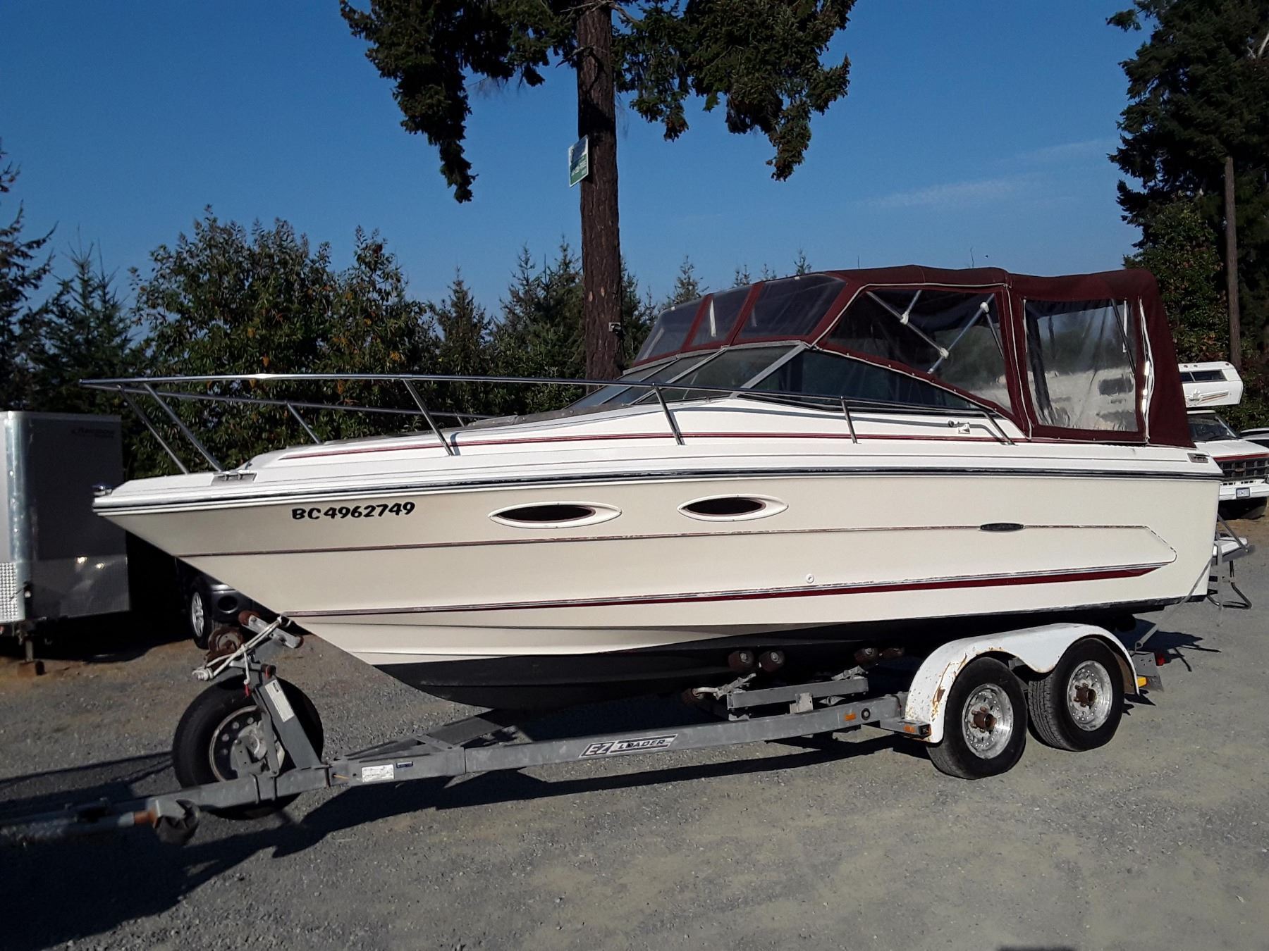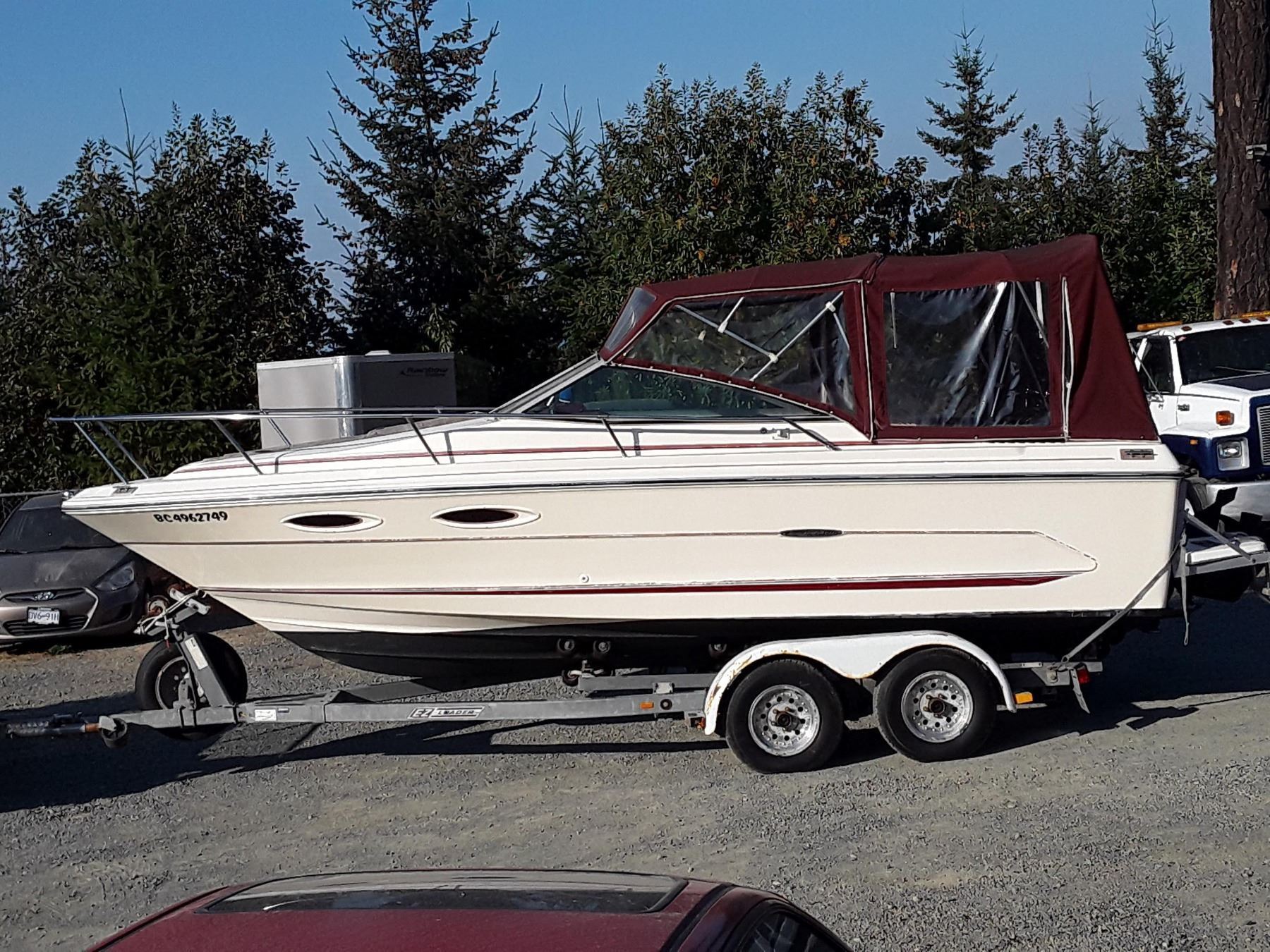 1984 SEARAY BOAT 24FT APX SITTING ON A 23.5 FT APX EZ LOADER BOAT TRAILER