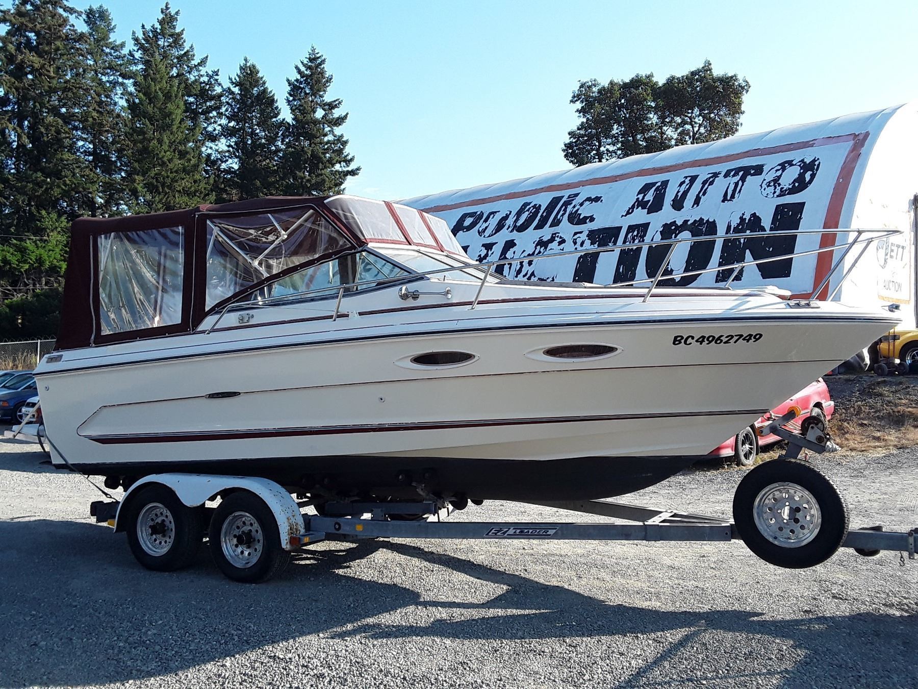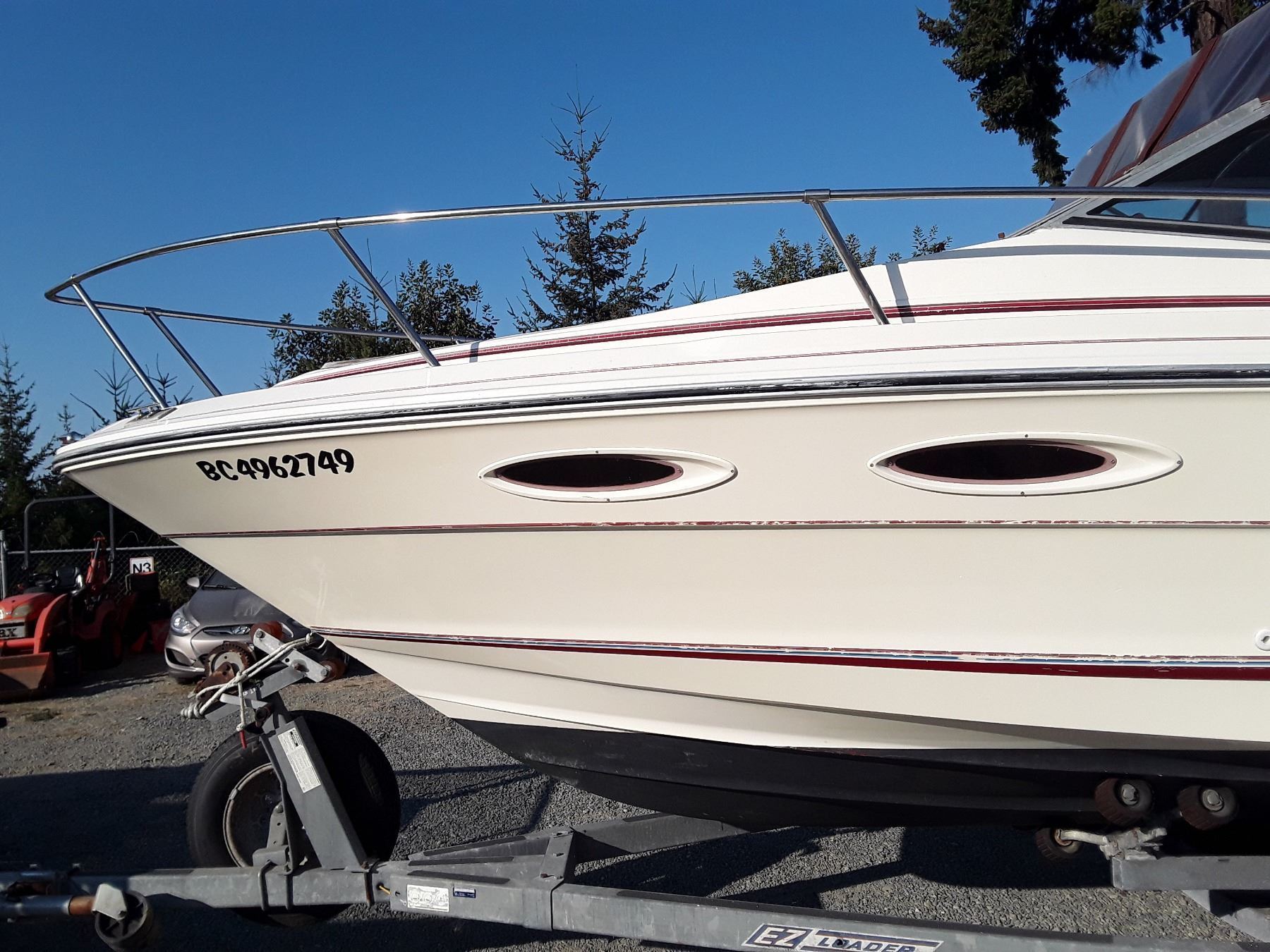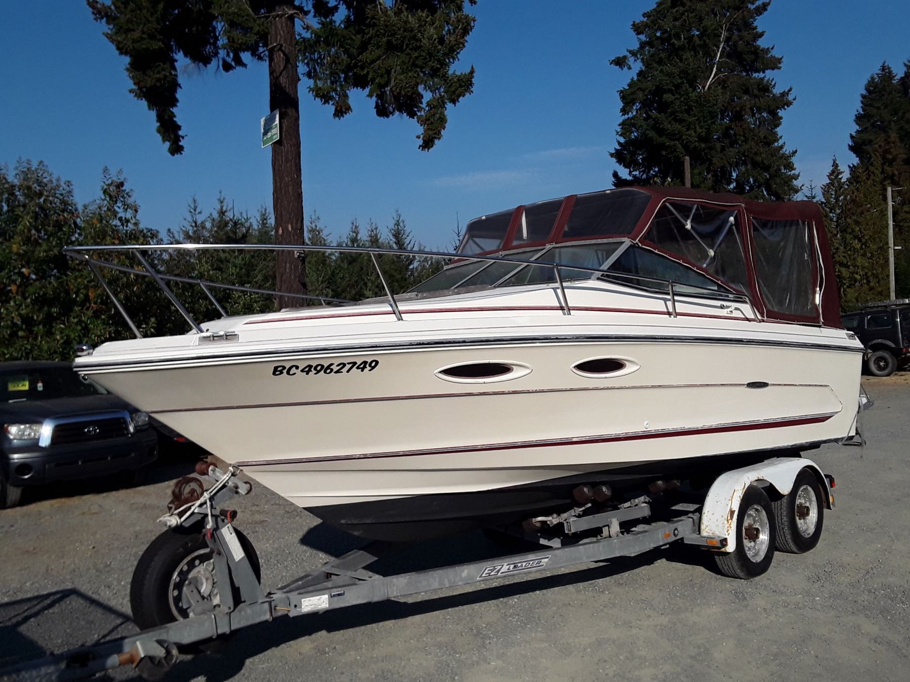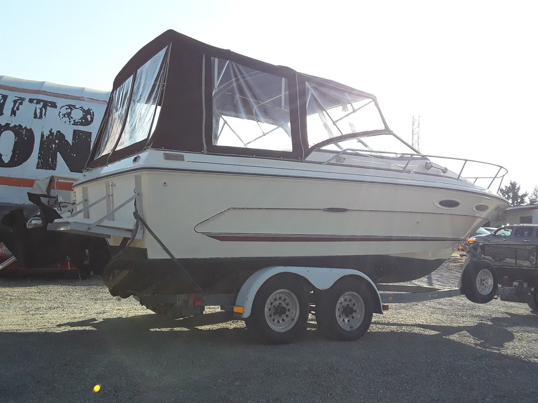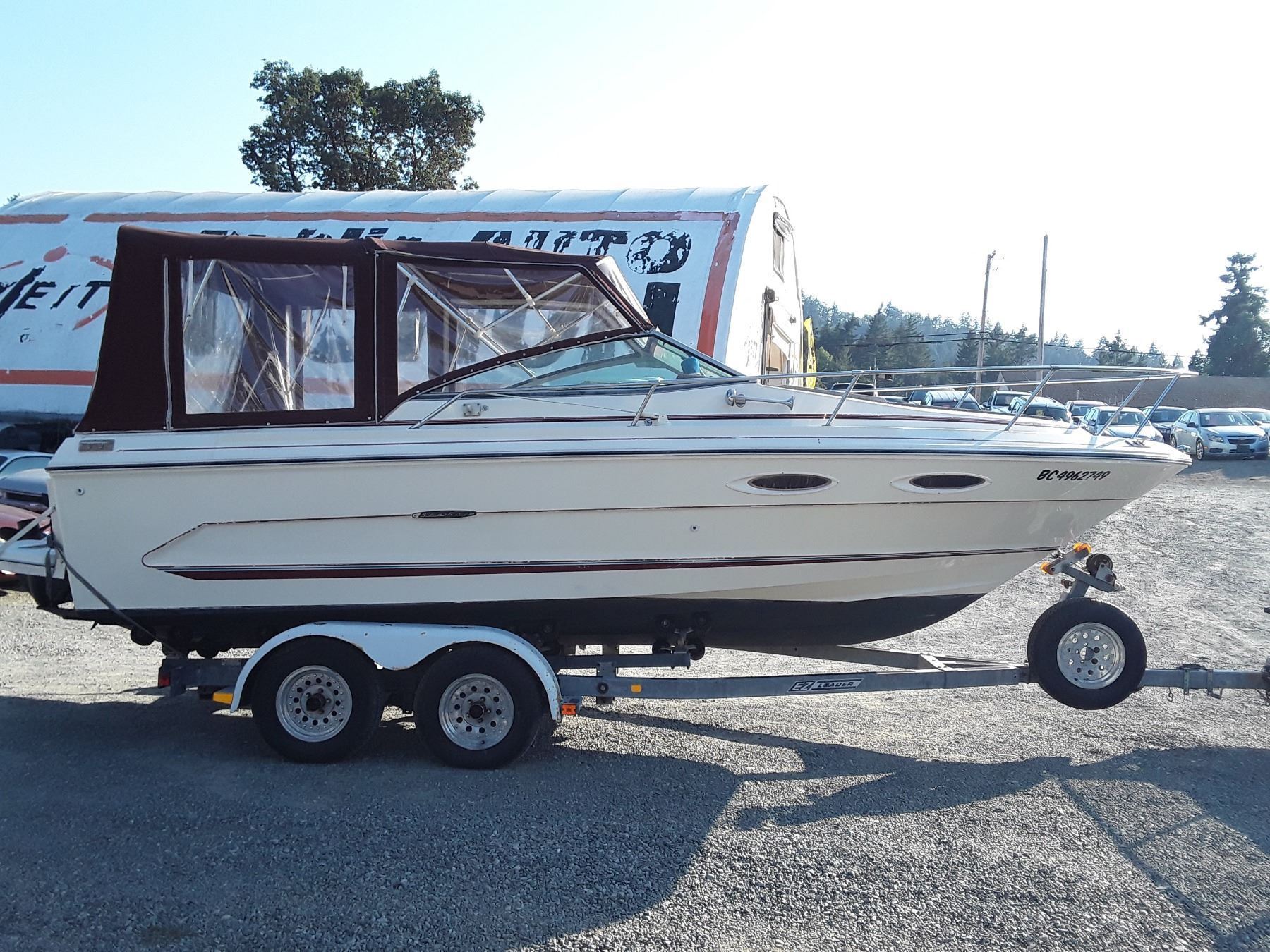 1984 SEARAY BOAT 24FT APX SITTING ON A 23.5 FT APX EZ LOADER BOAT TRAILER