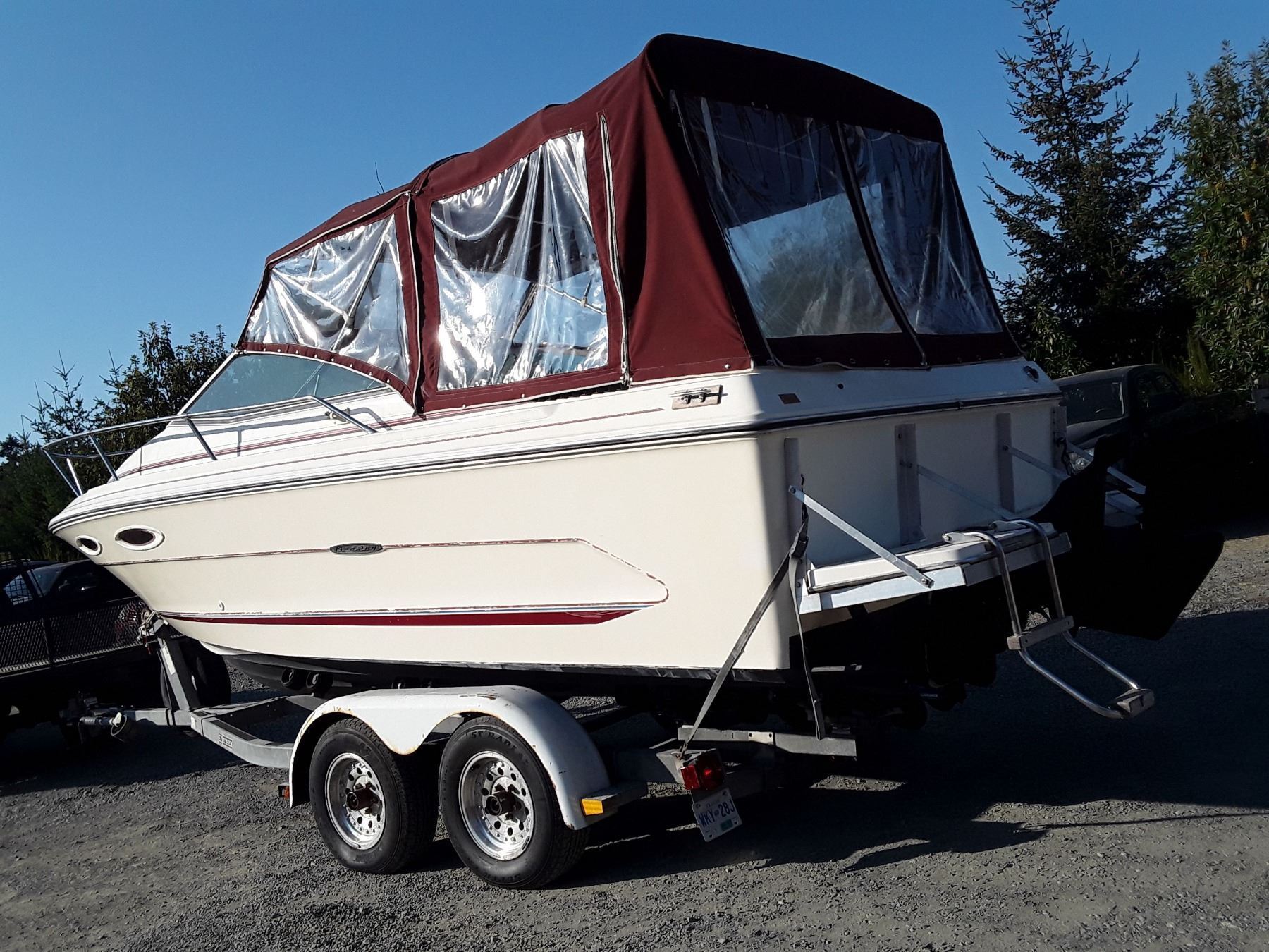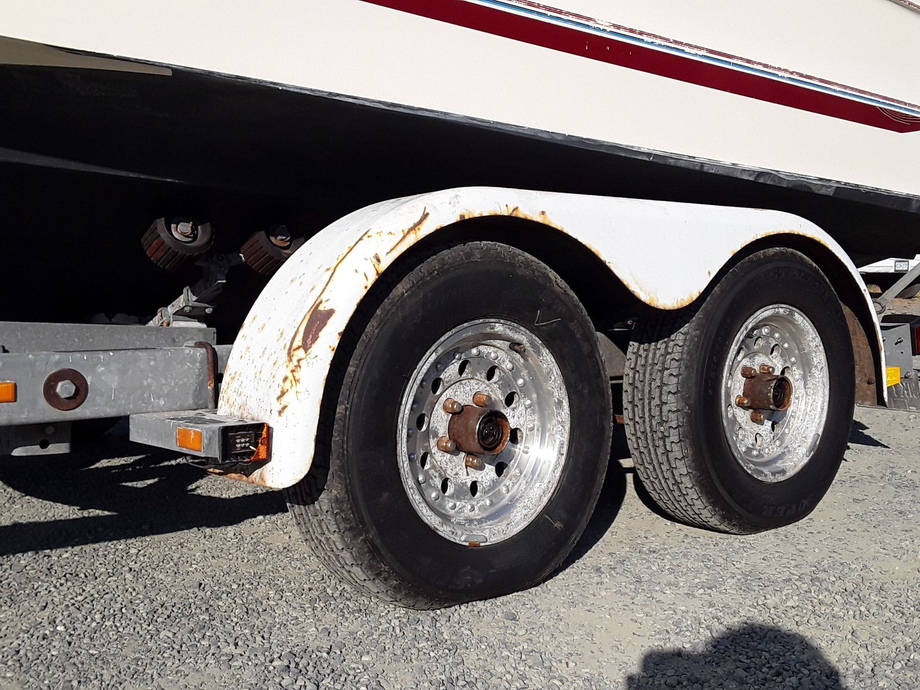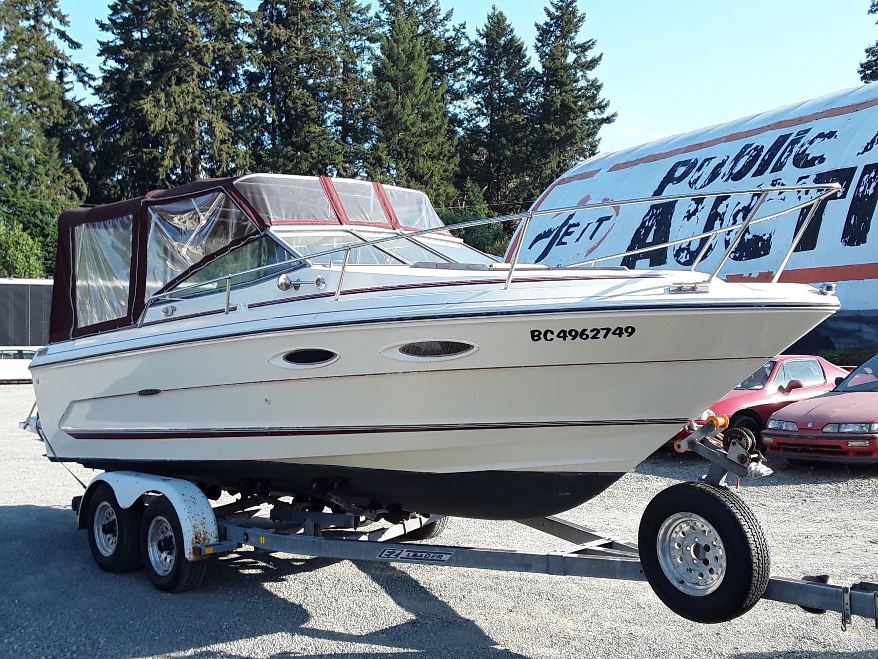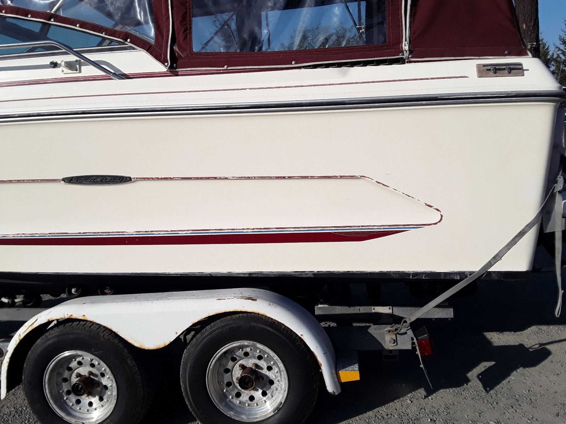 1984 SEARAY BOAT 24FT APX SITTING ON A 23.5 FT APX EZ LOADER BOAT TRAILER