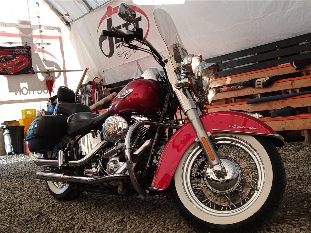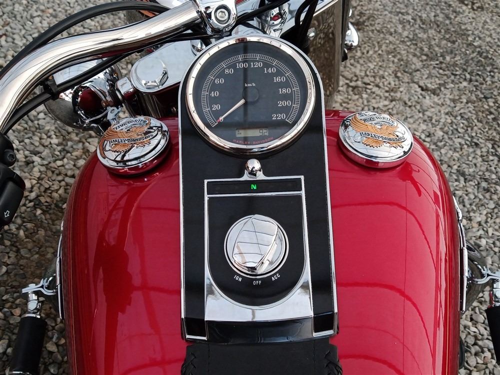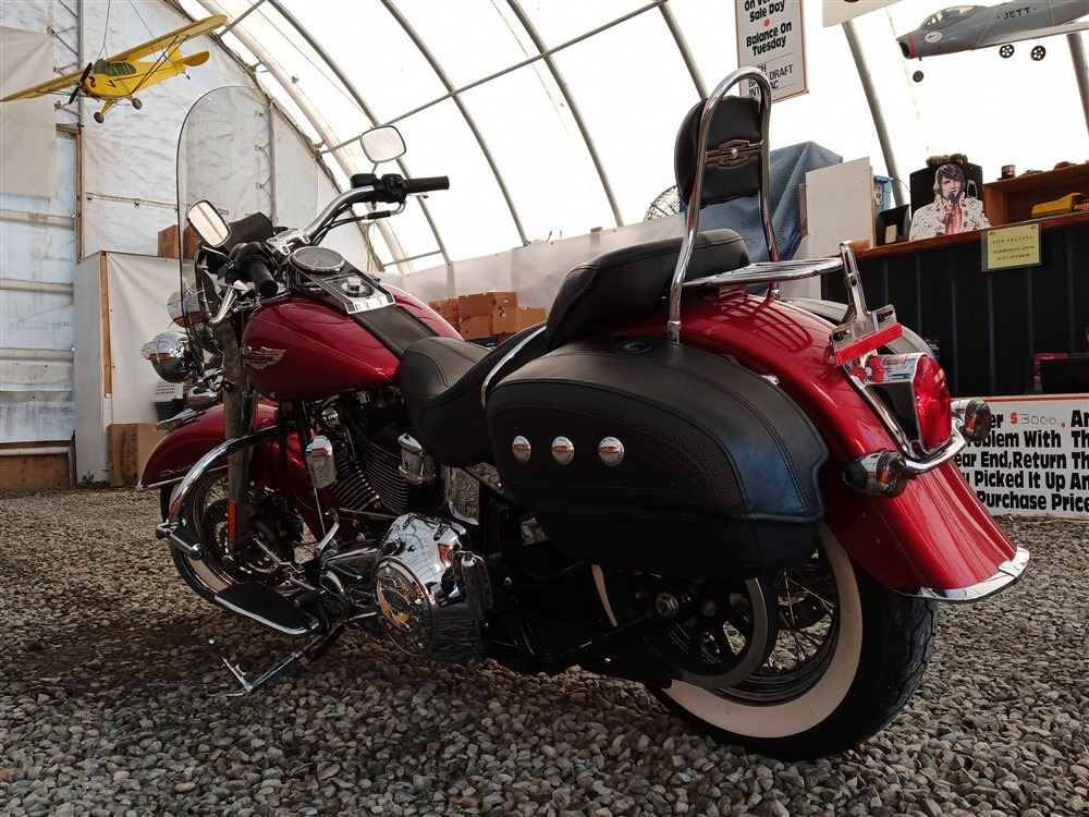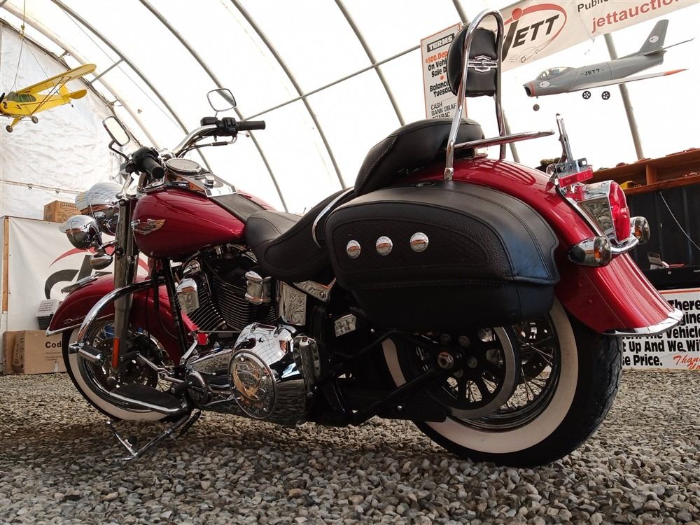 Auction Notes: Pull Back Handle Bar & Riser Easy Reach, Extended Kick Stand, Counter Balanced Twin Cam & 6 Speed Cruise Drive Transmission, Has Light Bar, Tombstone Tail light, Chrome Grab Rail & Luggage Rack, Chrome Laced Wheels With Wide White Wall Tires, Dual Mirrors, Detachable Windshield, Two Piece Two Up Seat,