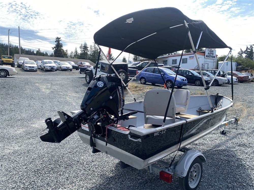 Auction Notes: INCLUDED WITH SALE: 2021 EZ Loader 800lb trailer, 2021 Lund WC12 Aluminum Boat, 2021 Mercury ME15mh motor - less than 50 hours use, Bimini top with fold-down cover, 2 seats, Garmin depth sounder with lithium battery, charger, and waterproof case, 7' varnished wood oars, anchor with rope and chain, scotty prawn trap puller and downrigger, prawn trap plus weight and 300' of line, various documents (books/manuals, original bill of sale, and more), travel boat cover plus a new boat cover (unused), motor lock, ball hitch lock, 25 liter fuel tank with extra fuel line. STOCK #: JB009501ALL RECREATIONAL VEHICLES SOLD AS PRESENTED, NO RETURNS