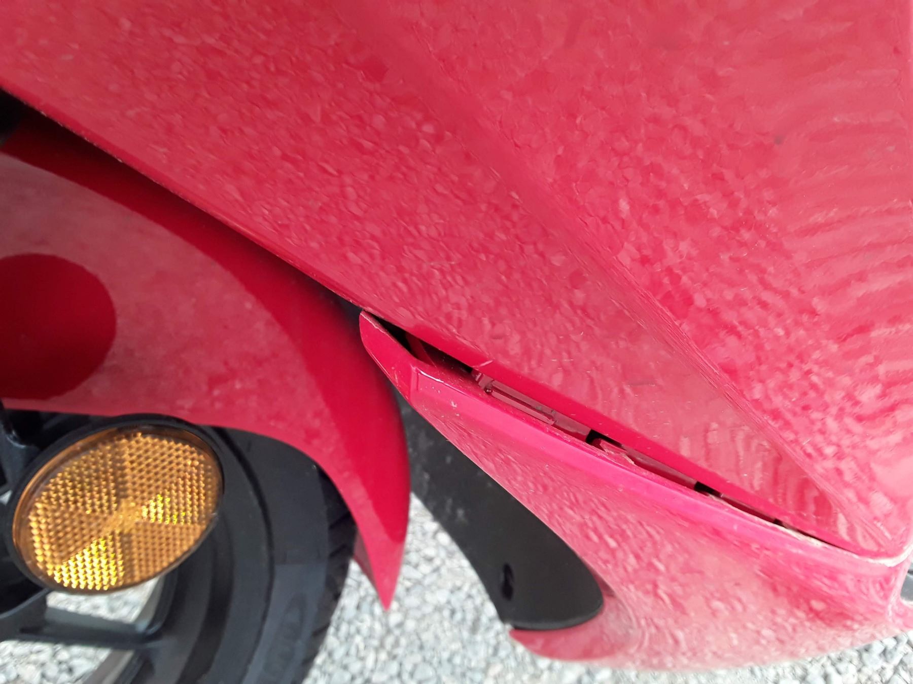 Headlights and turn signal, short windscreen, pair of dry storage compartments in the inner fairing,