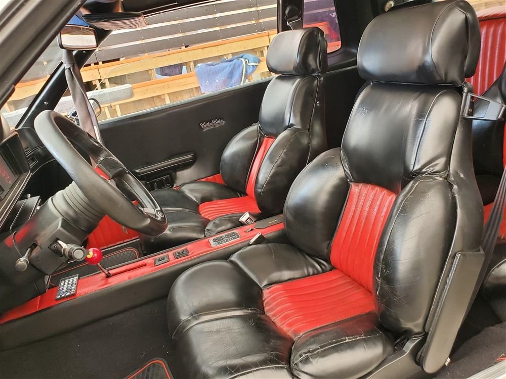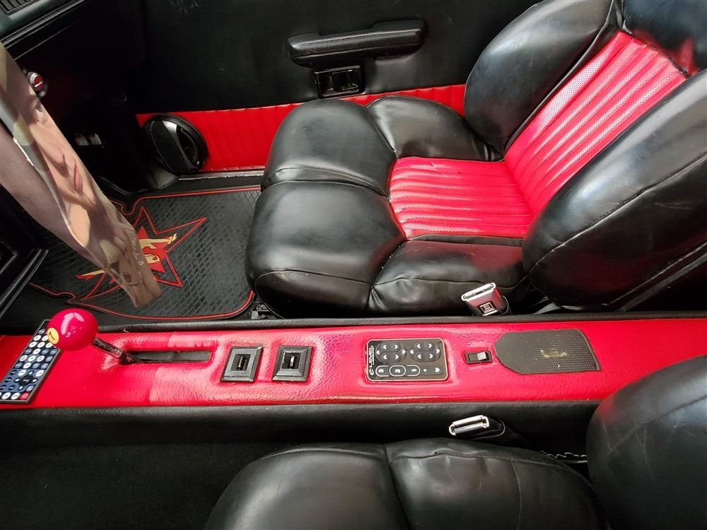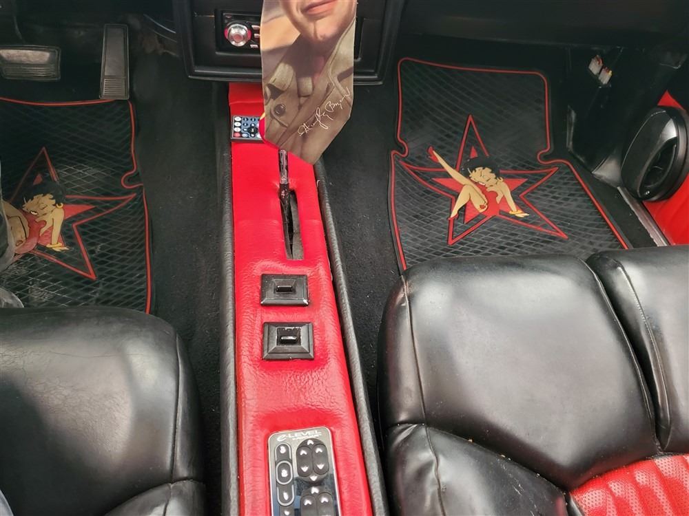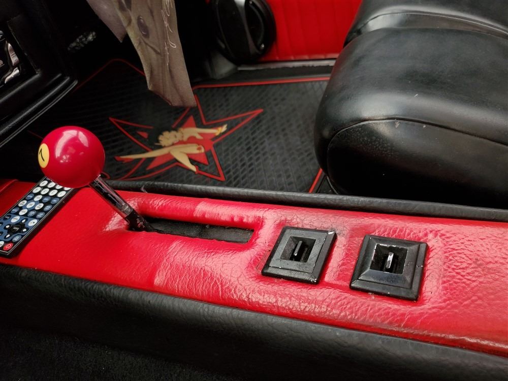 Two piece removable glass T- roof so becomes a convertible. Red and black interior with red/black Betty Boop floor mats.