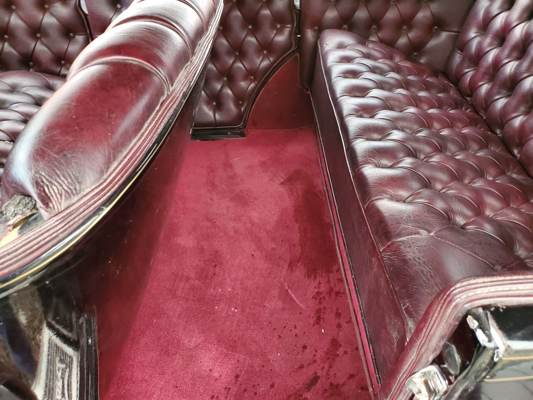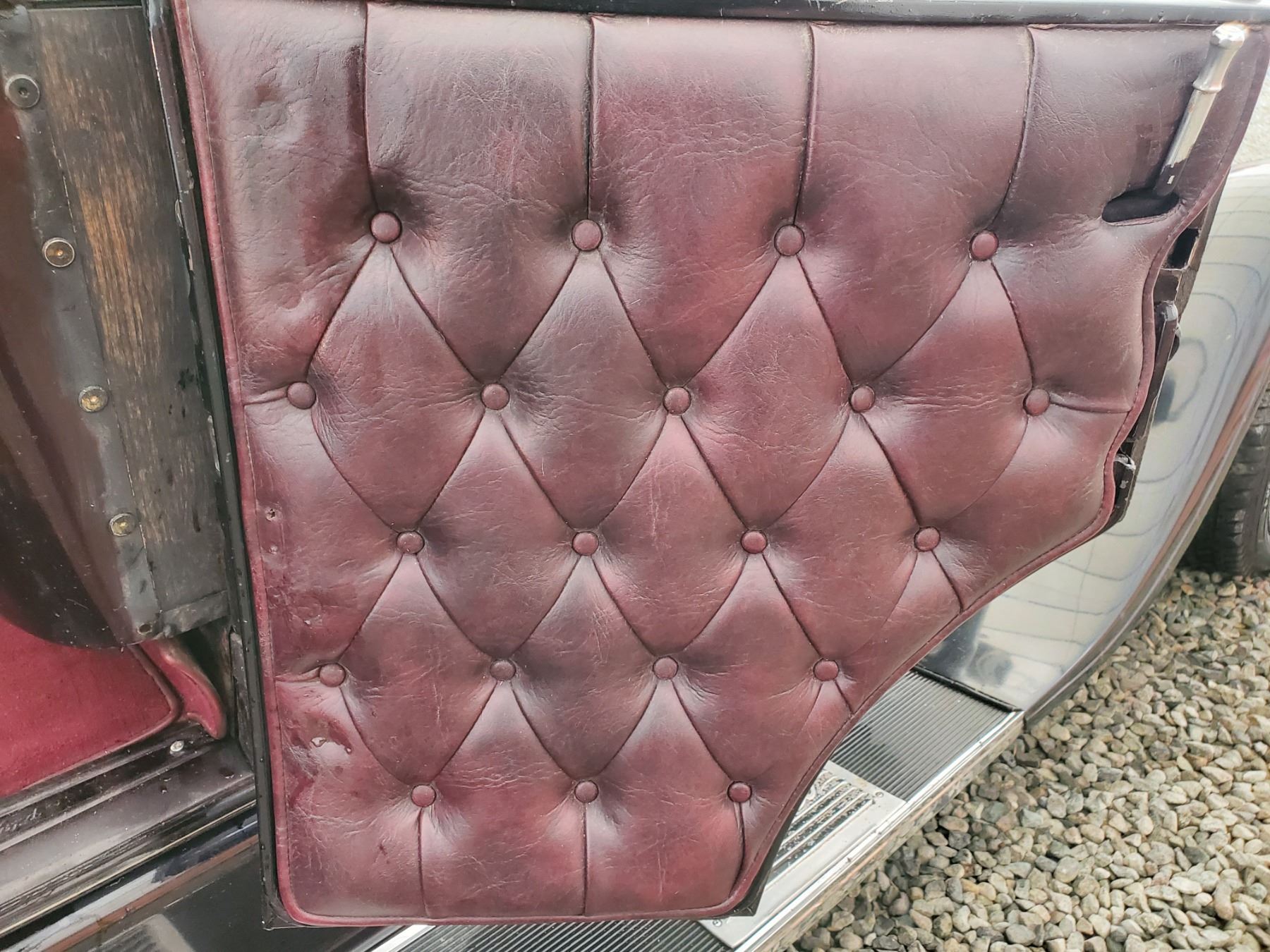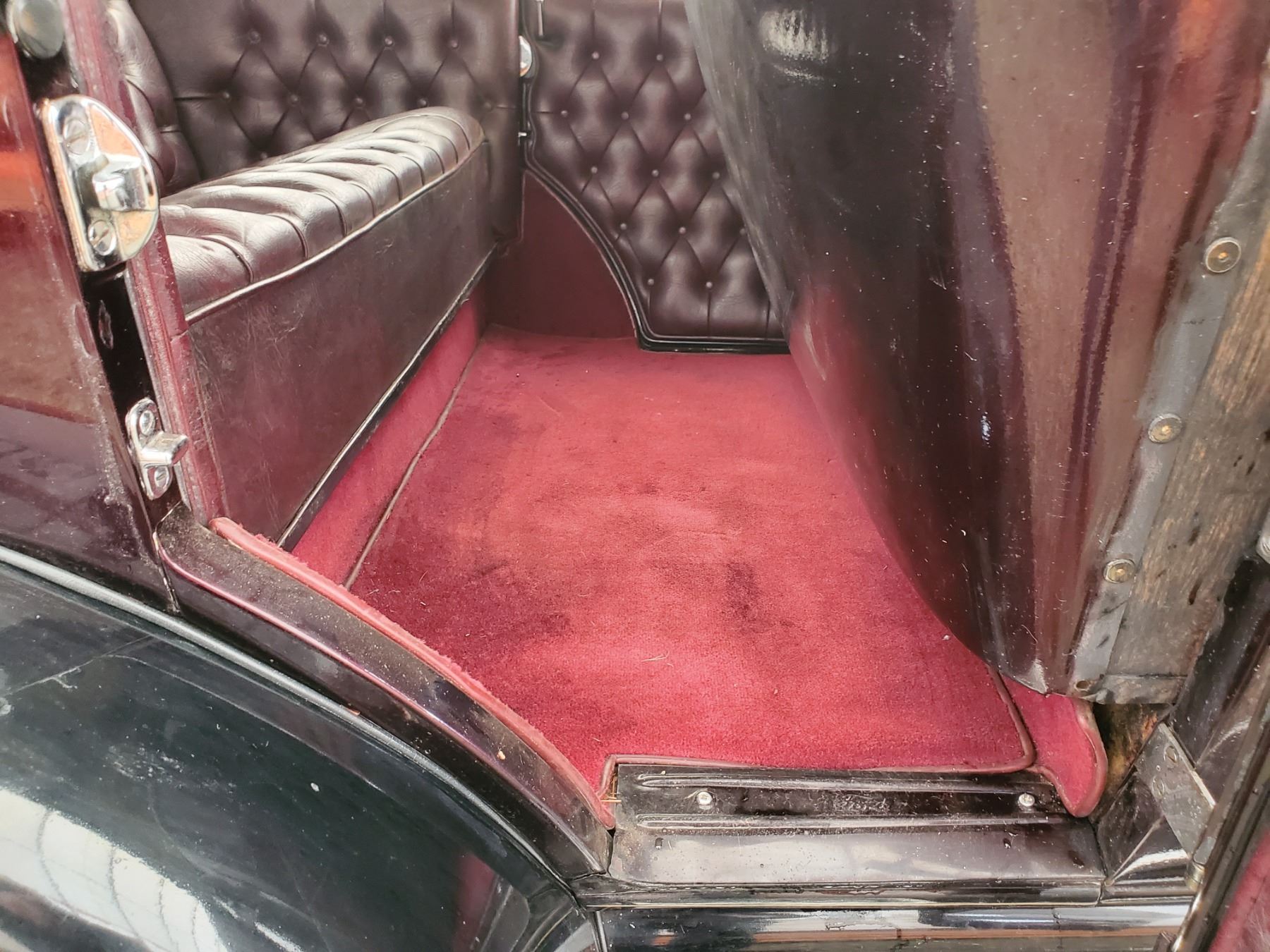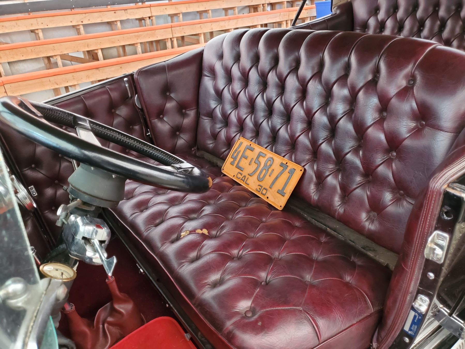 This 1929 Ford Model A Phaeton features bodywork finished in High gloss maroon paint with black fenders over Maroon upholstery, and power comes from a Ford VF8 Racing Engine paired with three-speed Automatic transmission. Features include a Black soft top, chrome bumpers, dual taillights, running boards with Ford-branded step plates, glass wind wings, a wire grille guard, a MotoMeter radiator cap, High rise Edelbrock intake and Edelbrock carburetor and Chrome wire wheels. Odometer shows 18643 Miles (True Milage Unknown). No Key