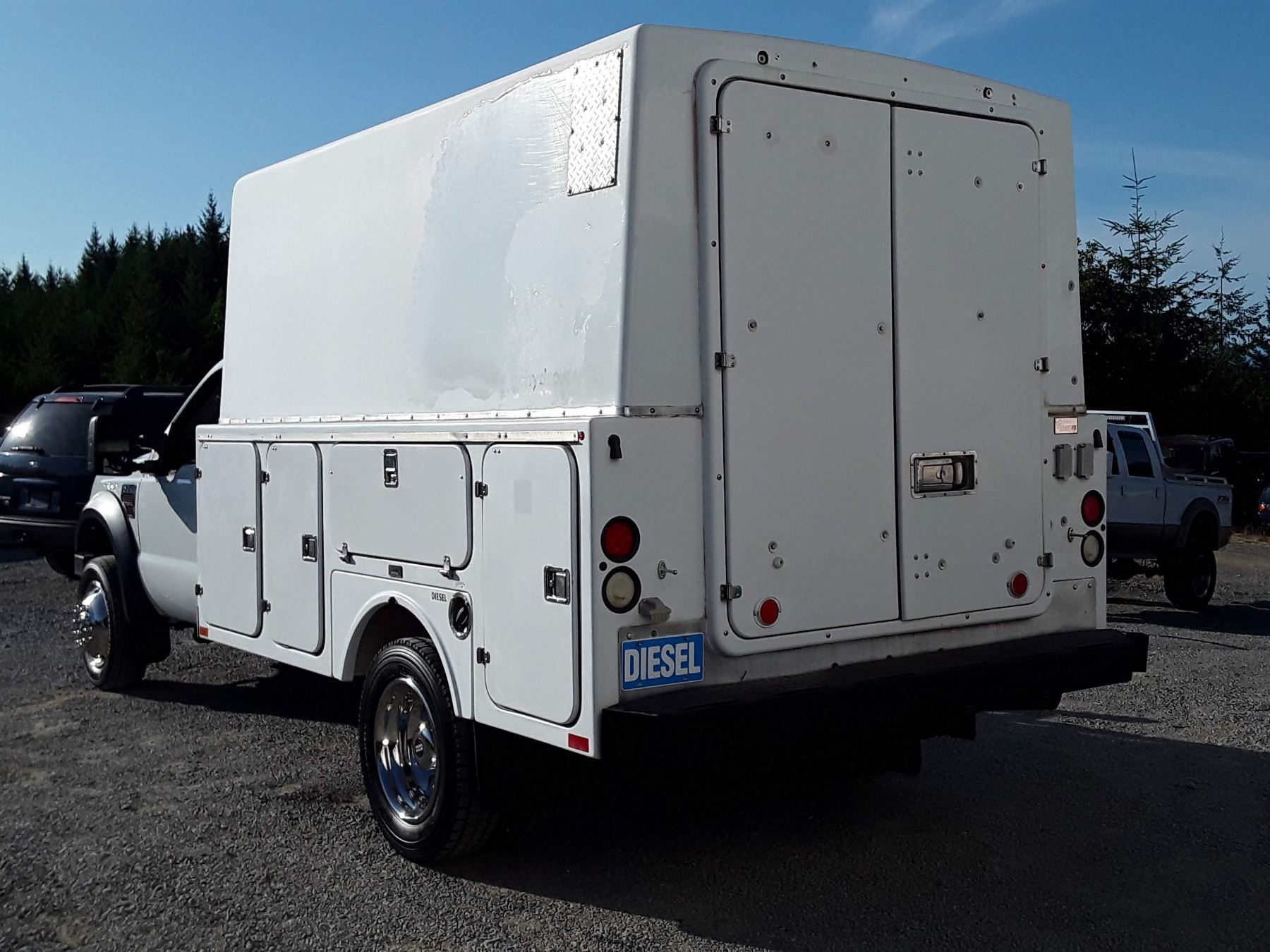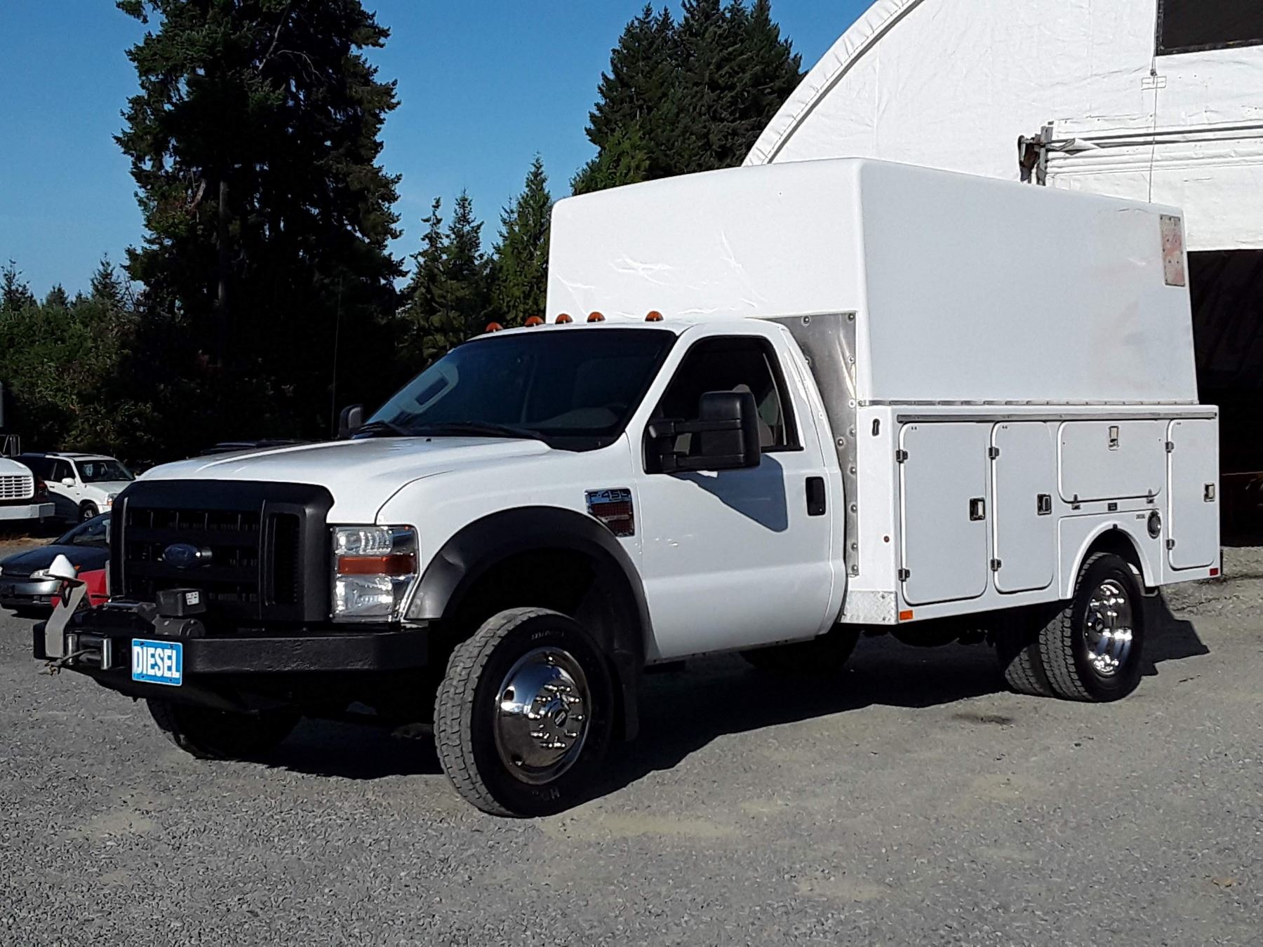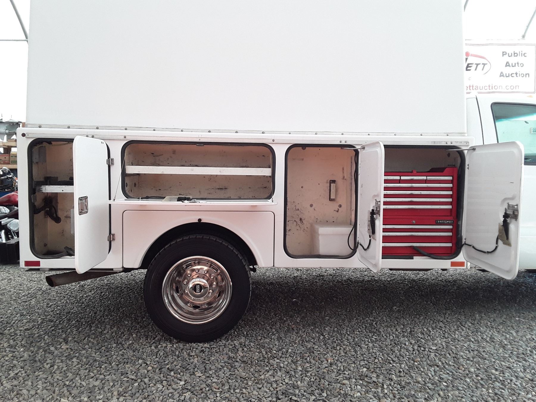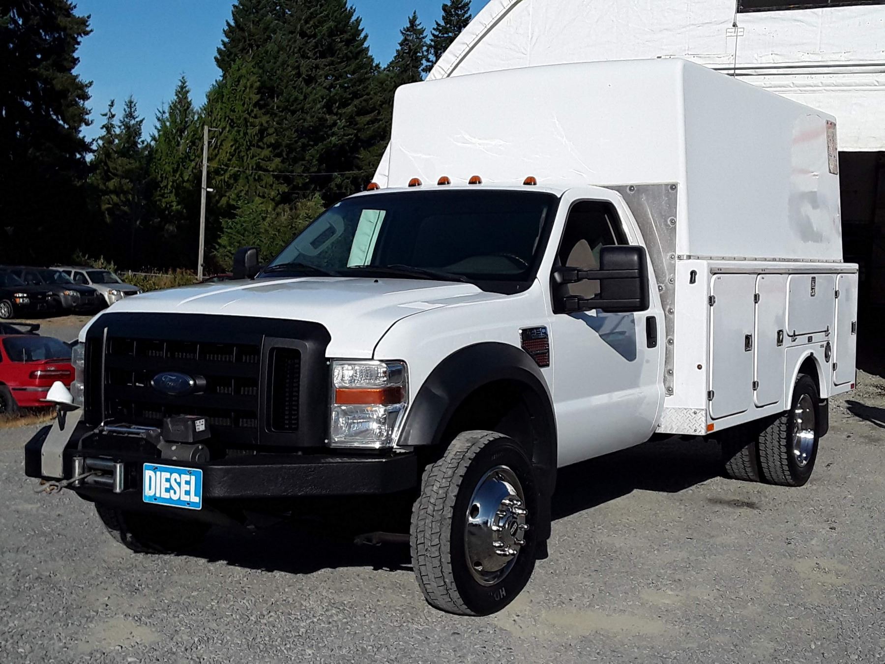 Automatic transmission and TWIN TURBO POWERSTROKE 6.4 Litre Engine, Diesel 8 cylinder , Four Wheel Drive, 173220 KilometersWhite ,2 PassengerNo Declarations - BC Vehicle, No Accidents over $2000, No Reported Accidents,Power Steering, Power Brakes, Intermittent Wipers, Dual Air Bag, AM/FM Stereo , Rear Defroster, Bucket Seats, Anti Lock Brakes, Front Disc Brakes-Air Conditioning, Tilt Steering, Cruise Control, Anti Theft, CD PlayerAuction Notes : Aftermarket Pioneer Stereo, 8 Tool Boxes W/Locks, Work Area In Back, 15000Lb Winch, Tow Mirrors, Brand FX Box Service Body, Just Passed Commercial Inspection, Carfax Shows 84 Service Records, One Owner, Spare Key, Runs + Drives Great!