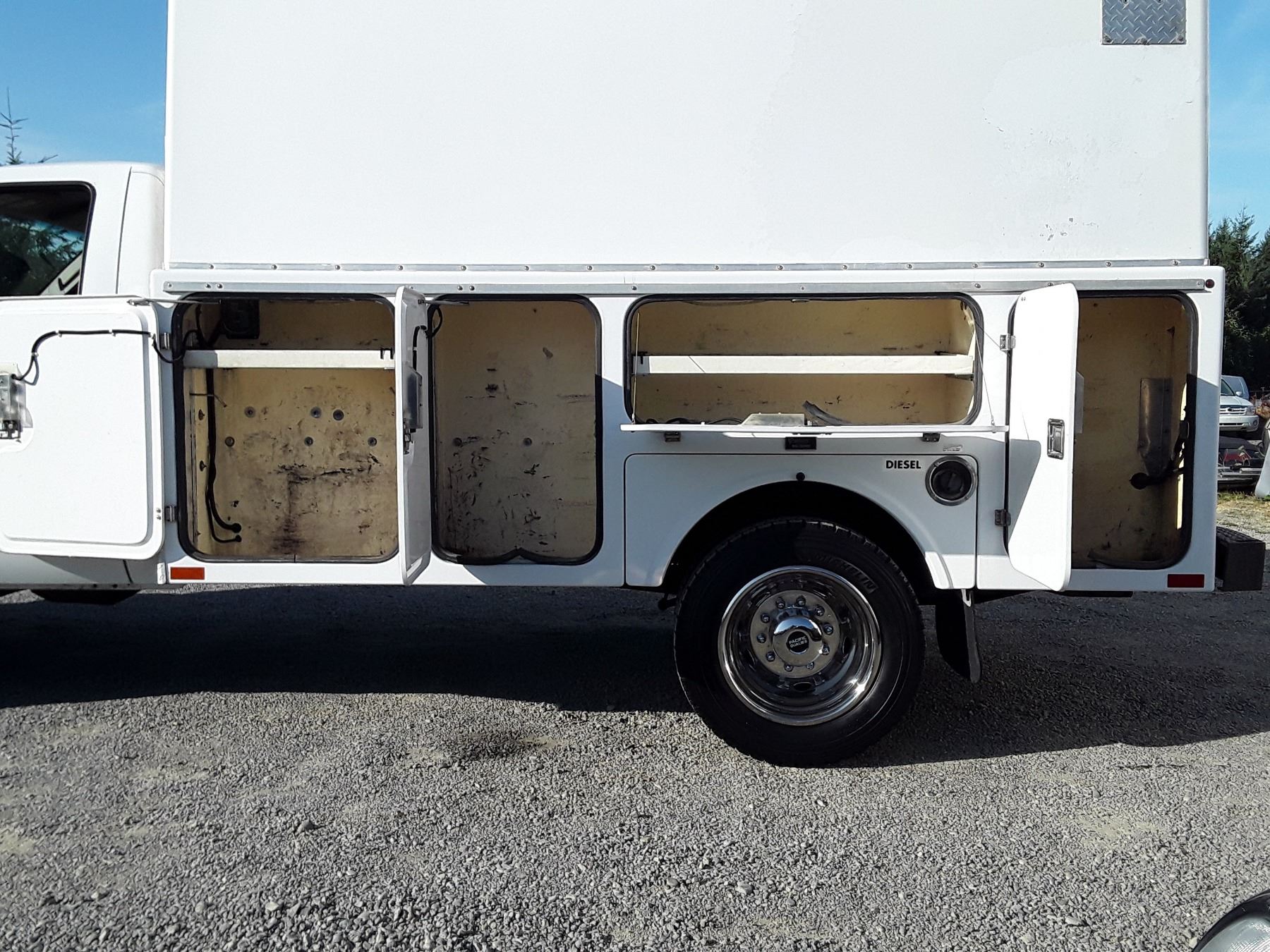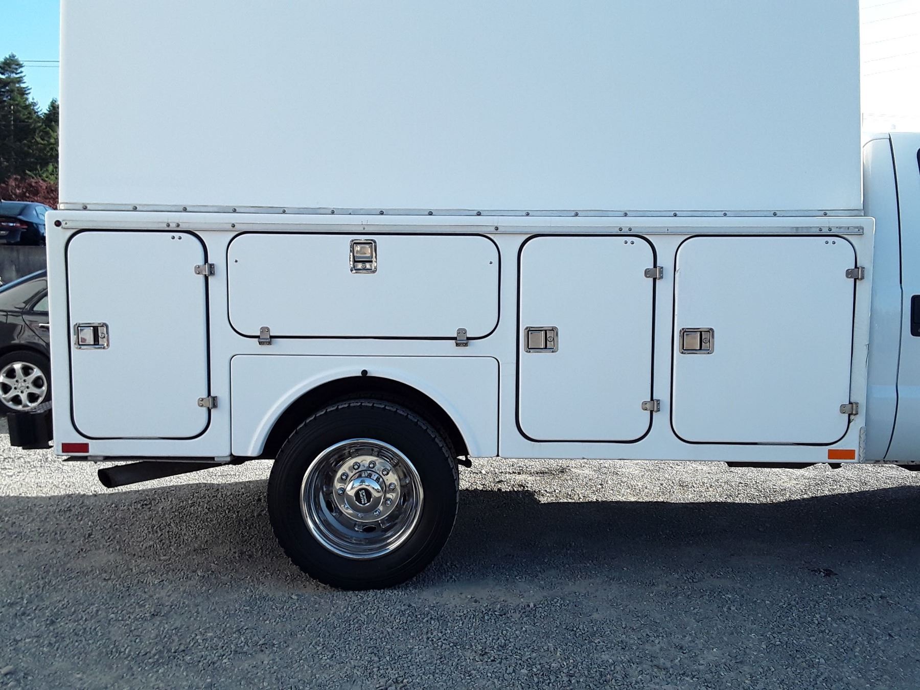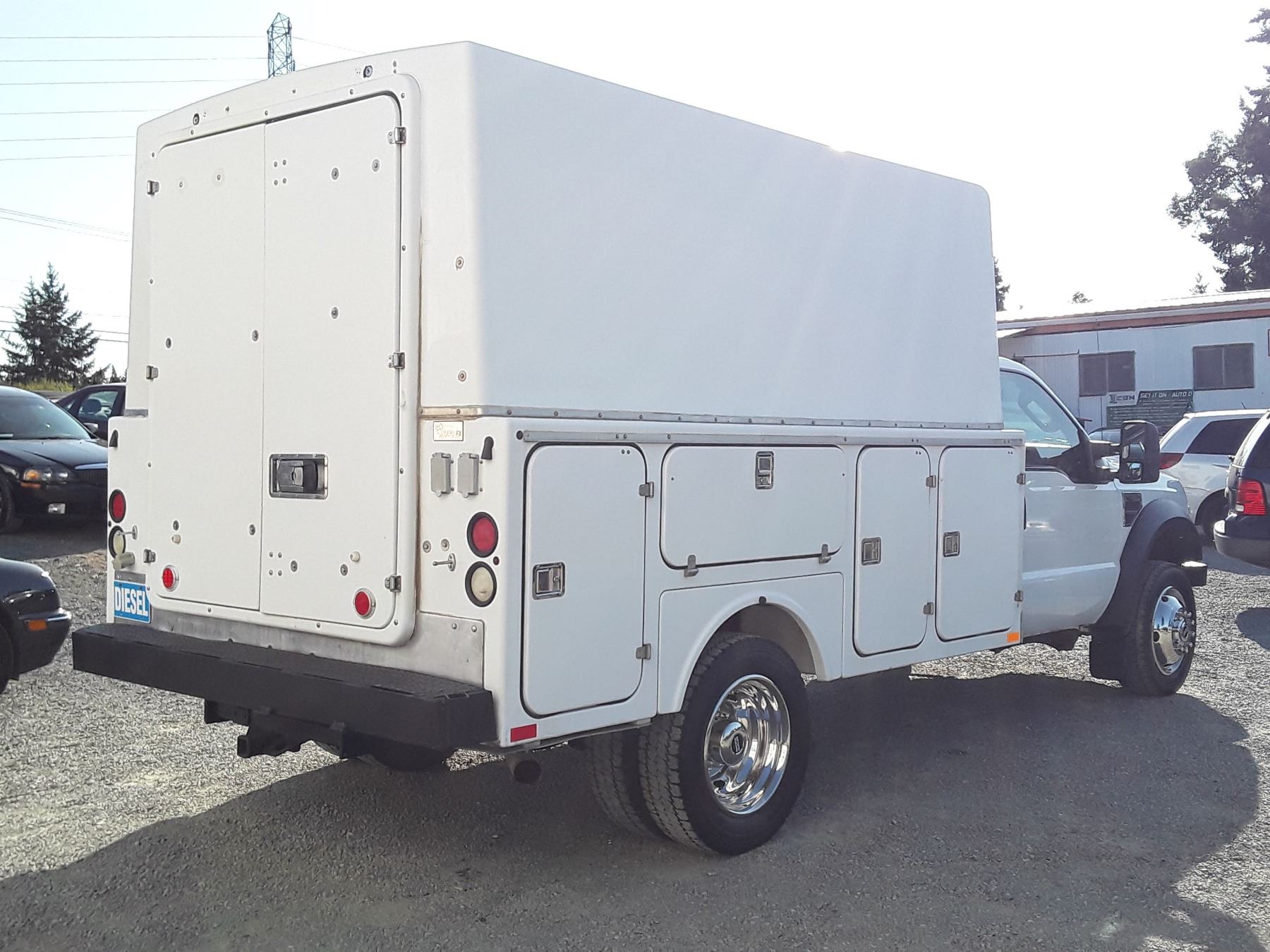 Automatic transmission and TWIN TURBO POWERSTROKE 6.4 Litre Engine, Diesel 8 cylinder , Four Wheel Drive, 173220 KilometersWhite ,2 PassengerNo Declarations - BC Vehicle, No Accidents over $2000, No Reported Accidents,Power Steering, Power Brakes, Intermittent Wipers, Dual Air Bag, AM/FM Stereo , Rear Defroster, Bucket Seats, Anti Lock Brakes, Front Disc Brakes-Air Conditioning, Tilt Steering, Cruise Control, Anti Theft, CD PlayerAuction Notes : Aftermarket Pioneer Stereo, 8 Tool Boxes W/Locks, Work Area In Back, 15000Lb Winch, Tow Mirrors, Brand FX Box Service Body, Just Passed Commercial Inspection, Carfax Shows 84 Service Records, One Owner, Spare Key, Runs + Drives Great!