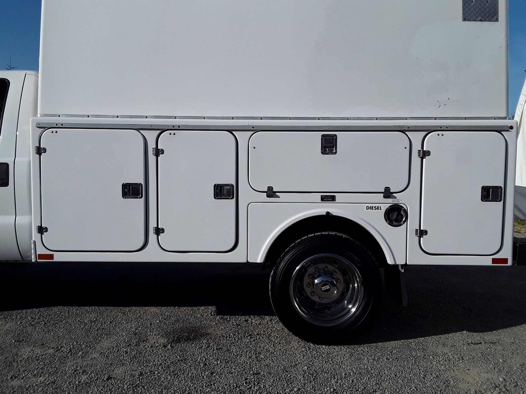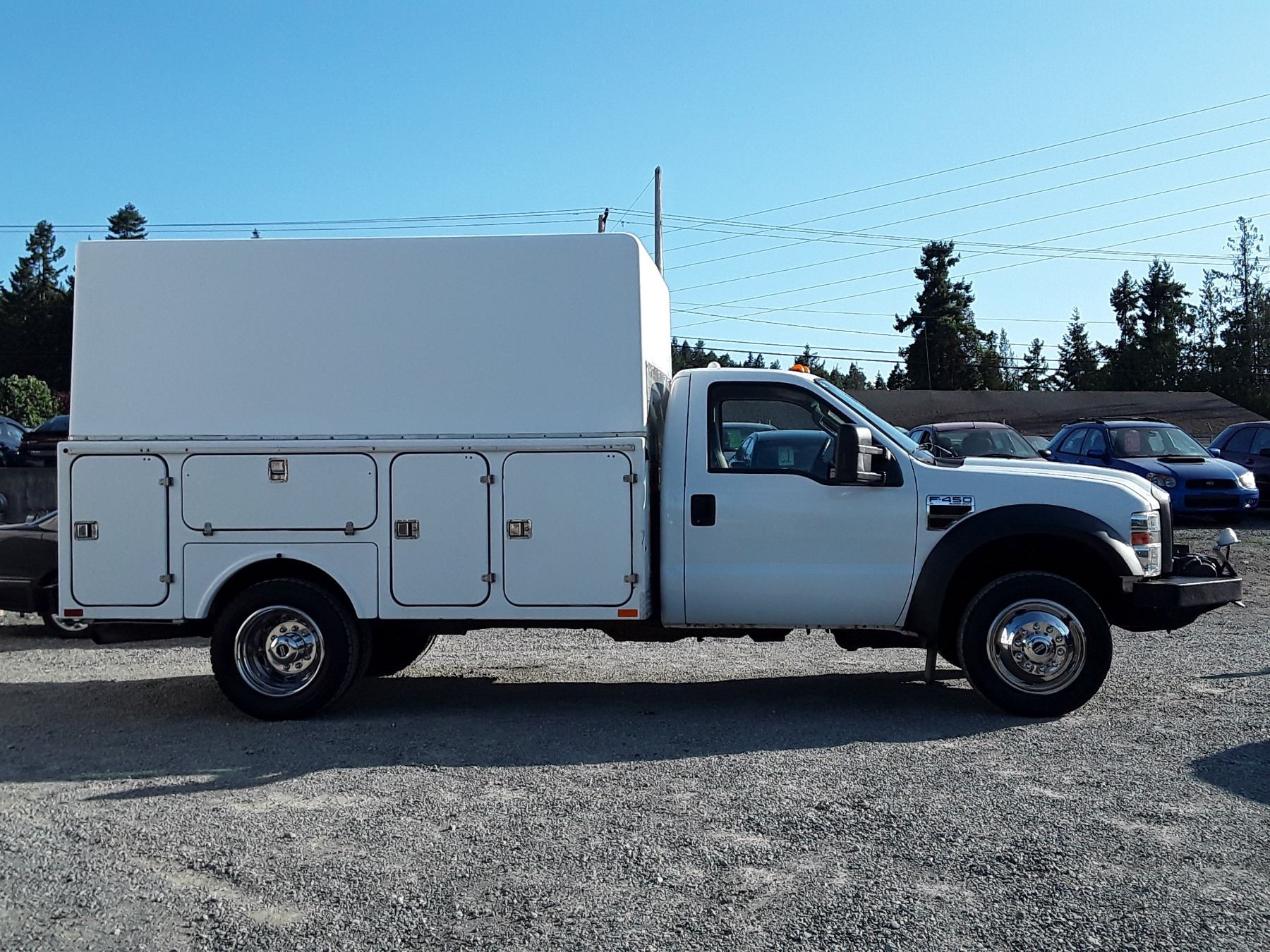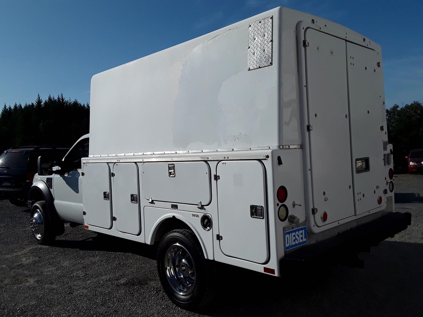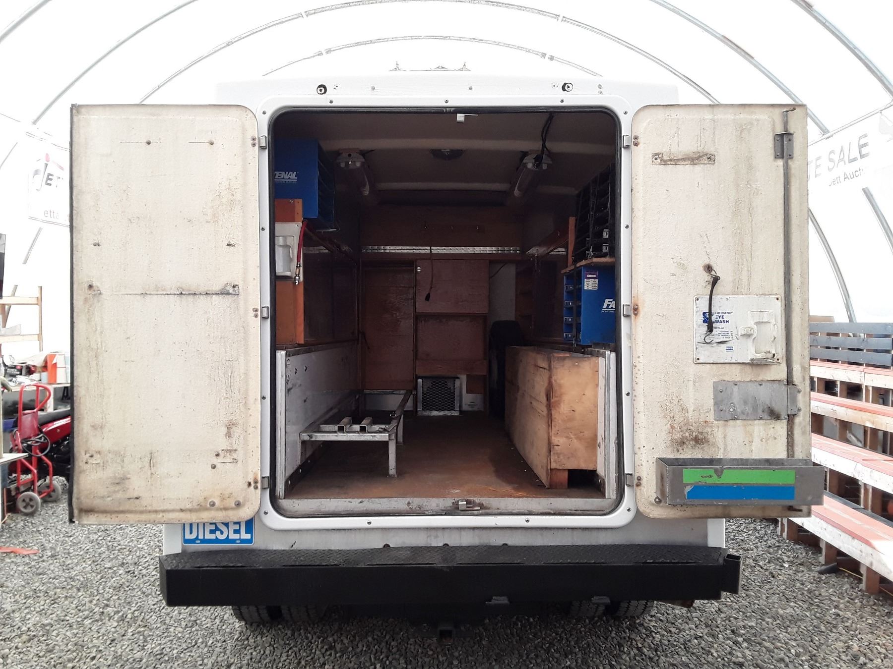 Automatic transmission and TWIN TURBO POWERSTROKE 6.4 Litre Engine, Diesel 8 cylinder , Four Wheel Drive, 173220 KilometersWhite ,2 PassengerNo Declarations - BC Vehicle, No Accidents over $2000, No Reported Accidents,Power Steering, Power Brakes, Intermittent Wipers, Dual Air Bag, AM/FM Stereo , Rear Defroster, Bucket Seats, Anti Lock Brakes, Front Disc Brakes-Air Conditioning, Tilt Steering, Cruise Control, Anti Theft, CD PlayerAuction Notes : Aftermarket Pioneer Stereo, 8 Tool Boxes W/Locks, Work Area In Back, 15000Lb Winch, Tow Mirrors, Brand FX Box Service Body, Just Passed Commercial Inspection, Carfax Shows 84 Service Records, One Owner, Spare Key, Runs + Drives Great!