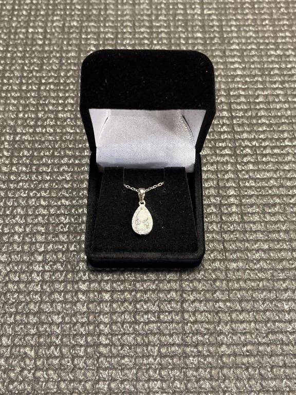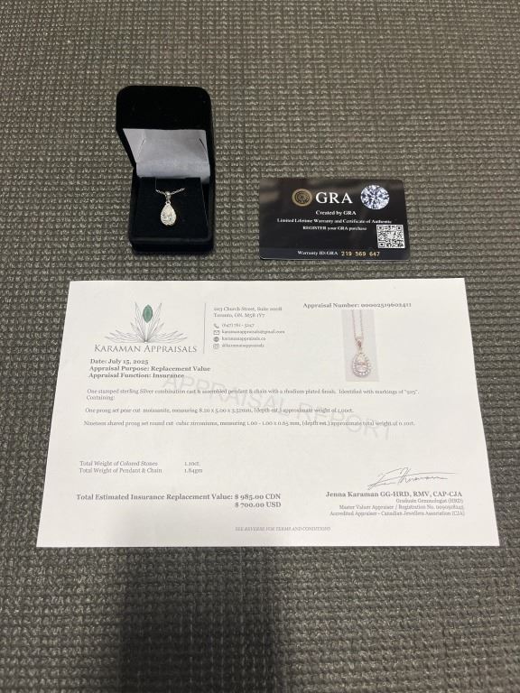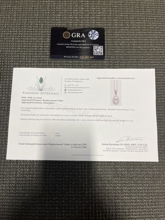 1.00 CT GRA CERTIFIED PEAR CUT MOISSANITE STONE VVS D COLOR WITH THE 19 ROUND BRILLIANT CUT CUBIC ZIRCONIA WITH PEAR SHAPE HALO AND SET IN 925 SILVER PENDANT RETAIL VALUE $985.00
