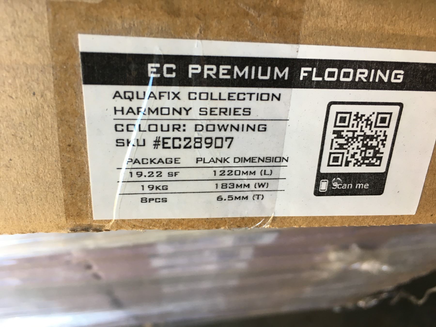1,057.1 SQ FT OF EC PREMIUM AQUAFIX HARMONY SERIES DOWNING 6.5MM GLUE LESS VINYL FLOORING 19.22 SQ FT PER BOX 55 BOXES 1,057.1 SQ FT TOTAL *MUST TAKE ALL ON PALLET*