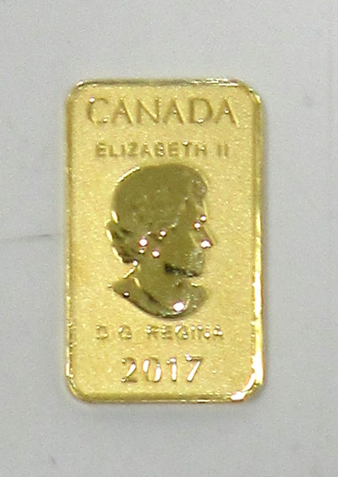 1/10 Oz .9999 Fine Gold 2017 Legal Tender Bar Tax exempt.