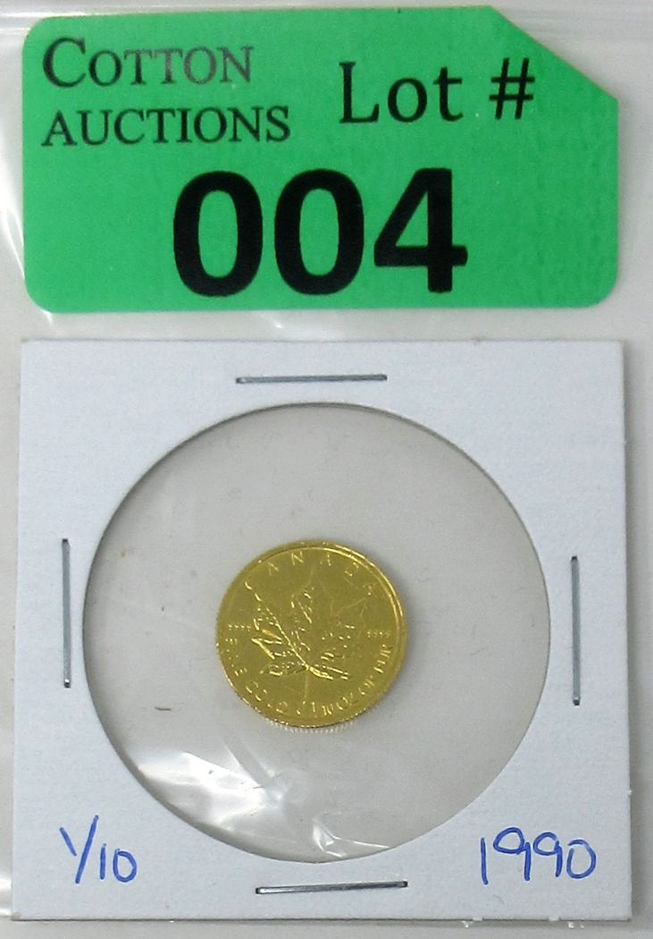 1/10 Oz .9999 Gold 1990 Canada Maple Leaf Coin