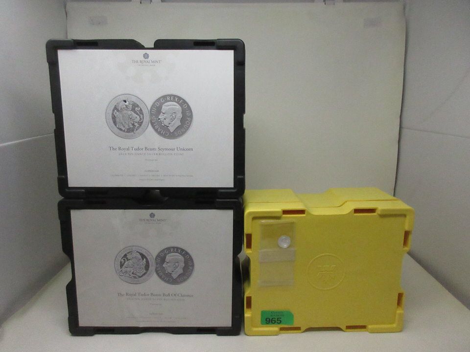 St. Helena Mint /New Guinea round. 1 Yellow RCM and 2 Royal Mint Bullion boxes measure: 8.5" x 10" x 4" deep.