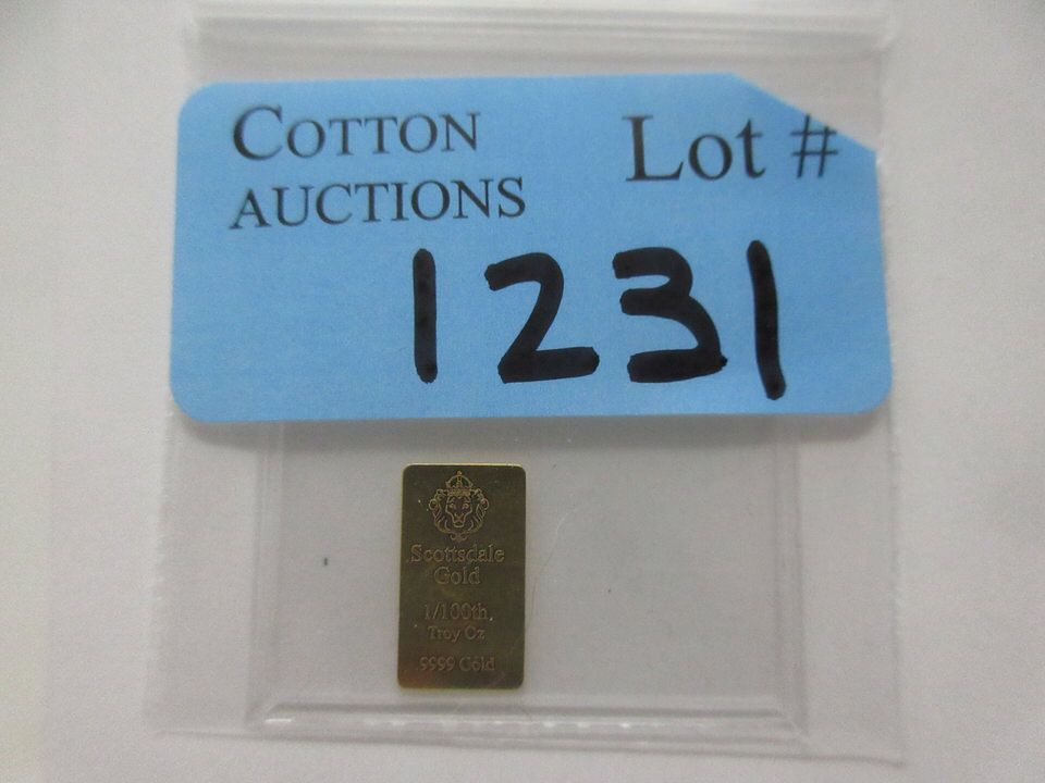 1/100 Oz .9999 Fine Gold Scottsdale Lion Bar