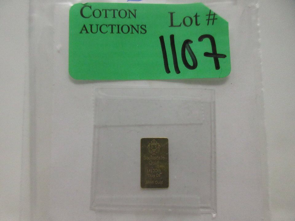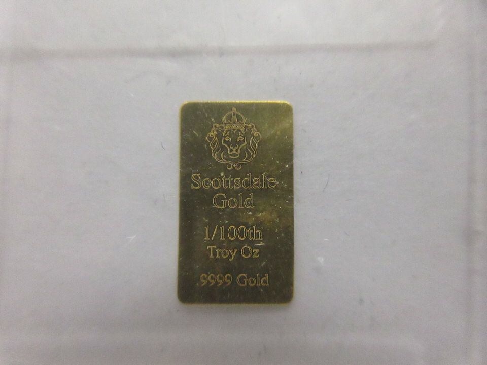 1/100 Oz .9999 Fine Gold Scottsdale Lion Bar
