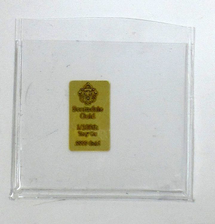 1/100 Oz .9999 Fine Gold Scottsdale Lion Bar