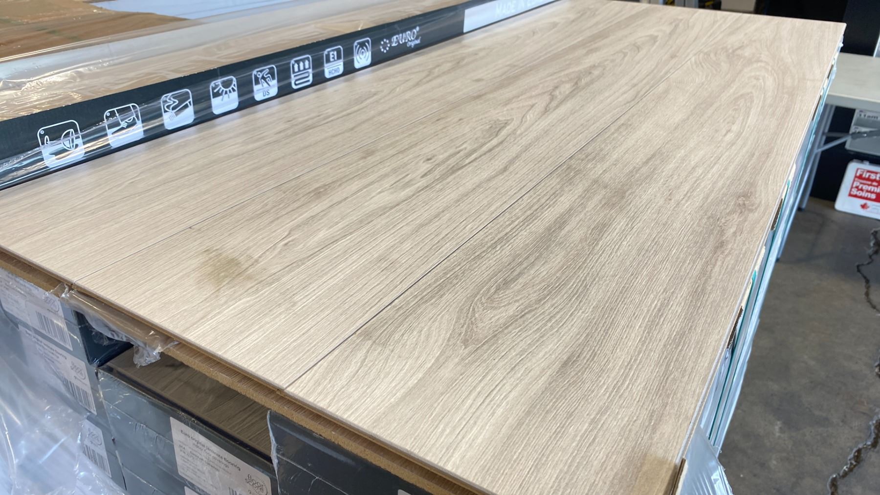 1,123.36 SQ FT OF EURO ORIGINAL EURO-LOFT COLLECTION 10MM ALPS 3710 GLUELESS LAMINATE FLOORING 20.06 SQ FT PER BOX 56 BOXES 1,123.36 SQ FT TOTAL *MUST TAKE ALL ON PALLET*