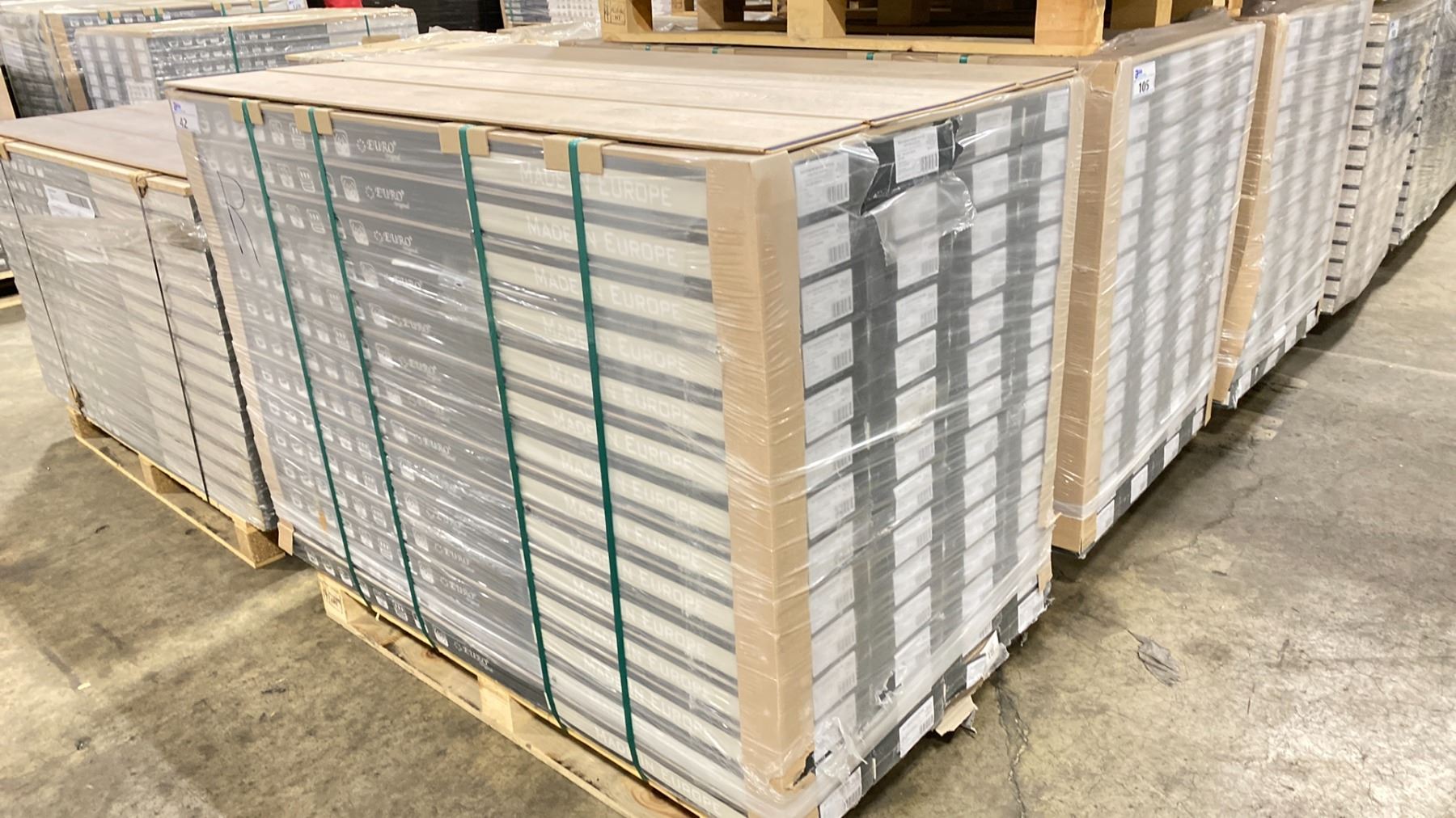 1,123.36SQ FT OF EURO ORIGINAL EUROLOCK ROSA 10MM GLUELESS LAMINATE FLOORING 20.06 SQ FT PER POX 56 BOXES, 1,123.36 SQ FT TOTAL *MUST TAKE ALL ON PALLET*