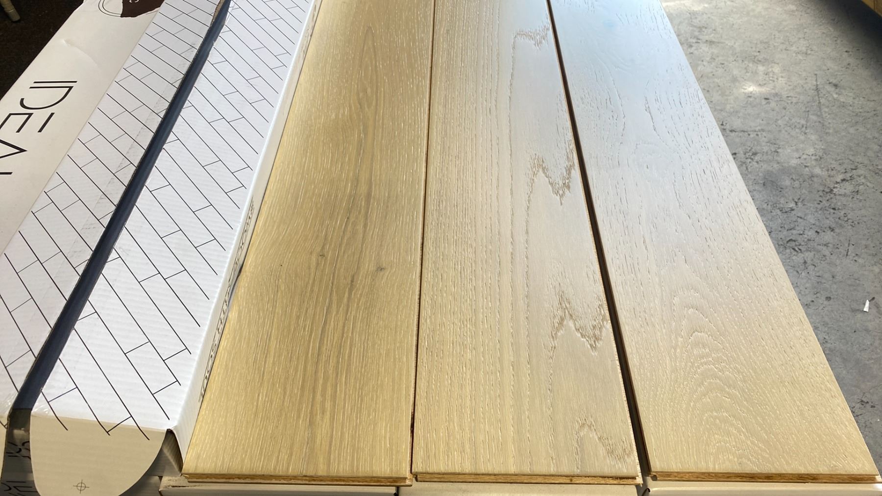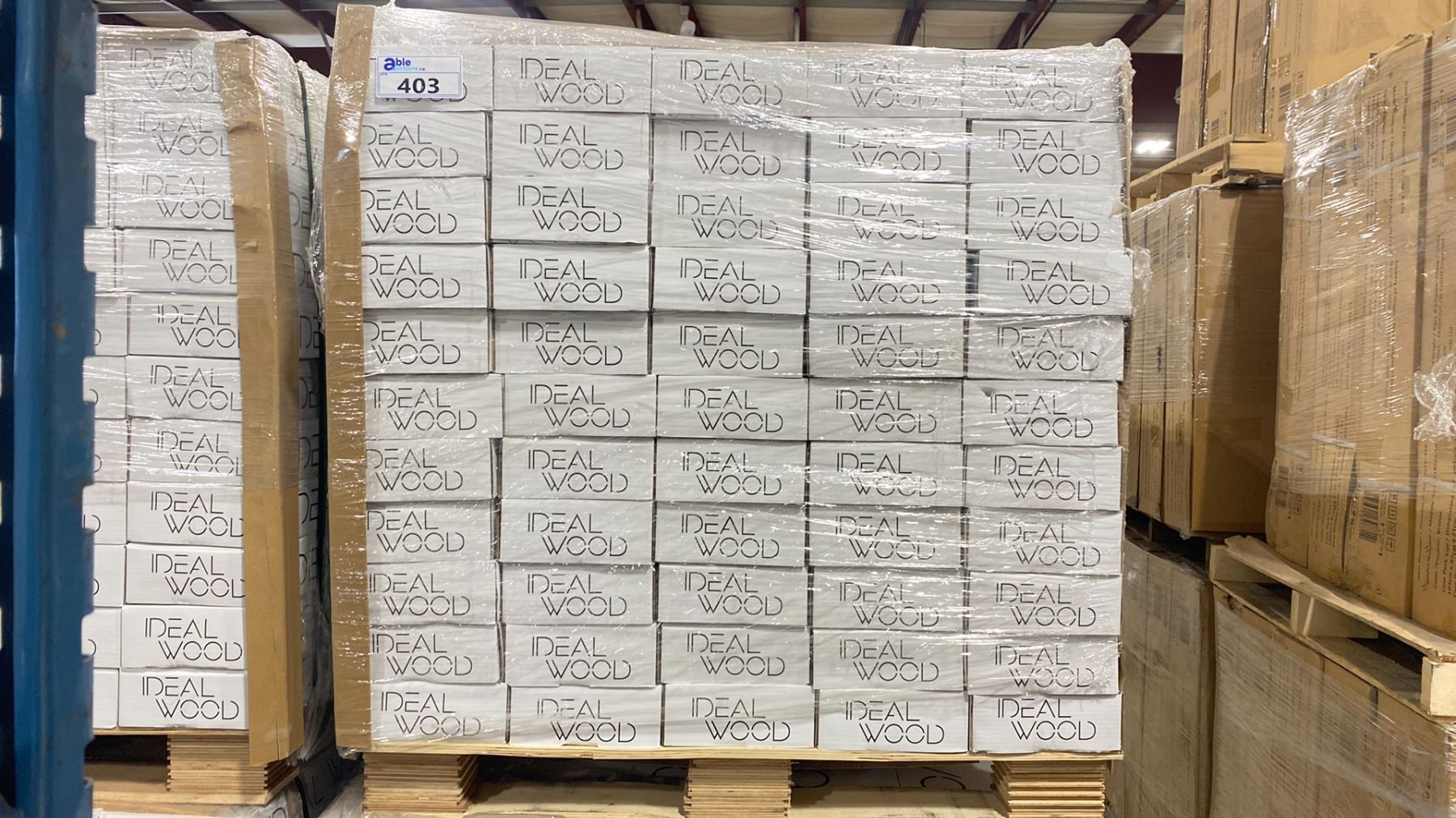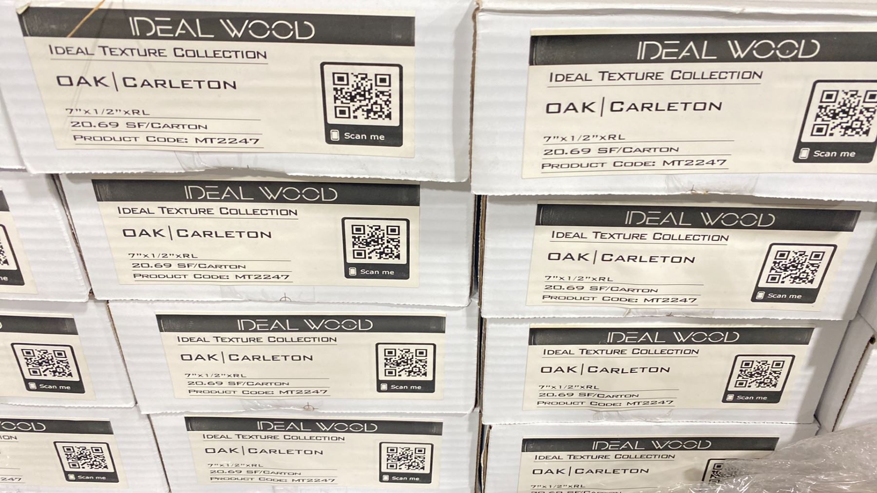 1,137.95 SQ FT OF IDEALWOOD CARLETON OAK WIDE PLANK ENGINEERED REAL WOOD FLOORING 20.69 SQ FT PER BOX 55 BOXES 1,137.95 SQ FT TOTAL *MUST TAKE ALL ON PALLET*