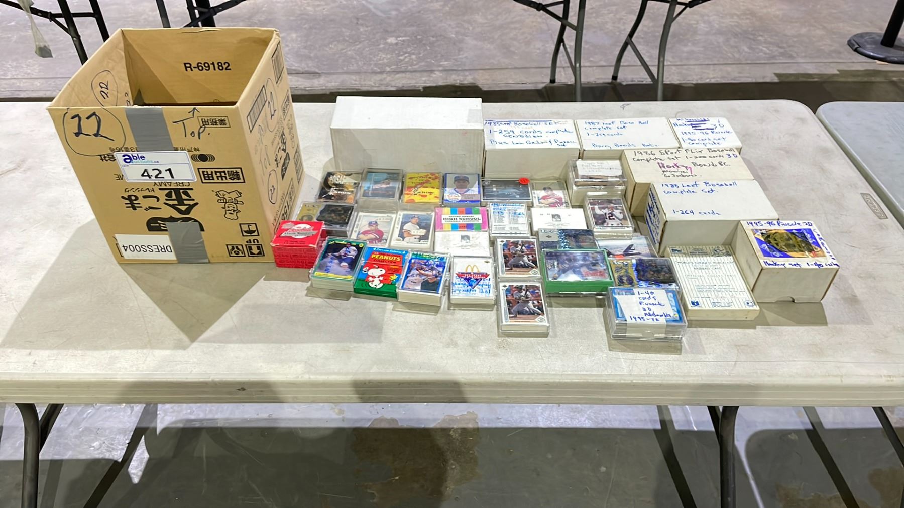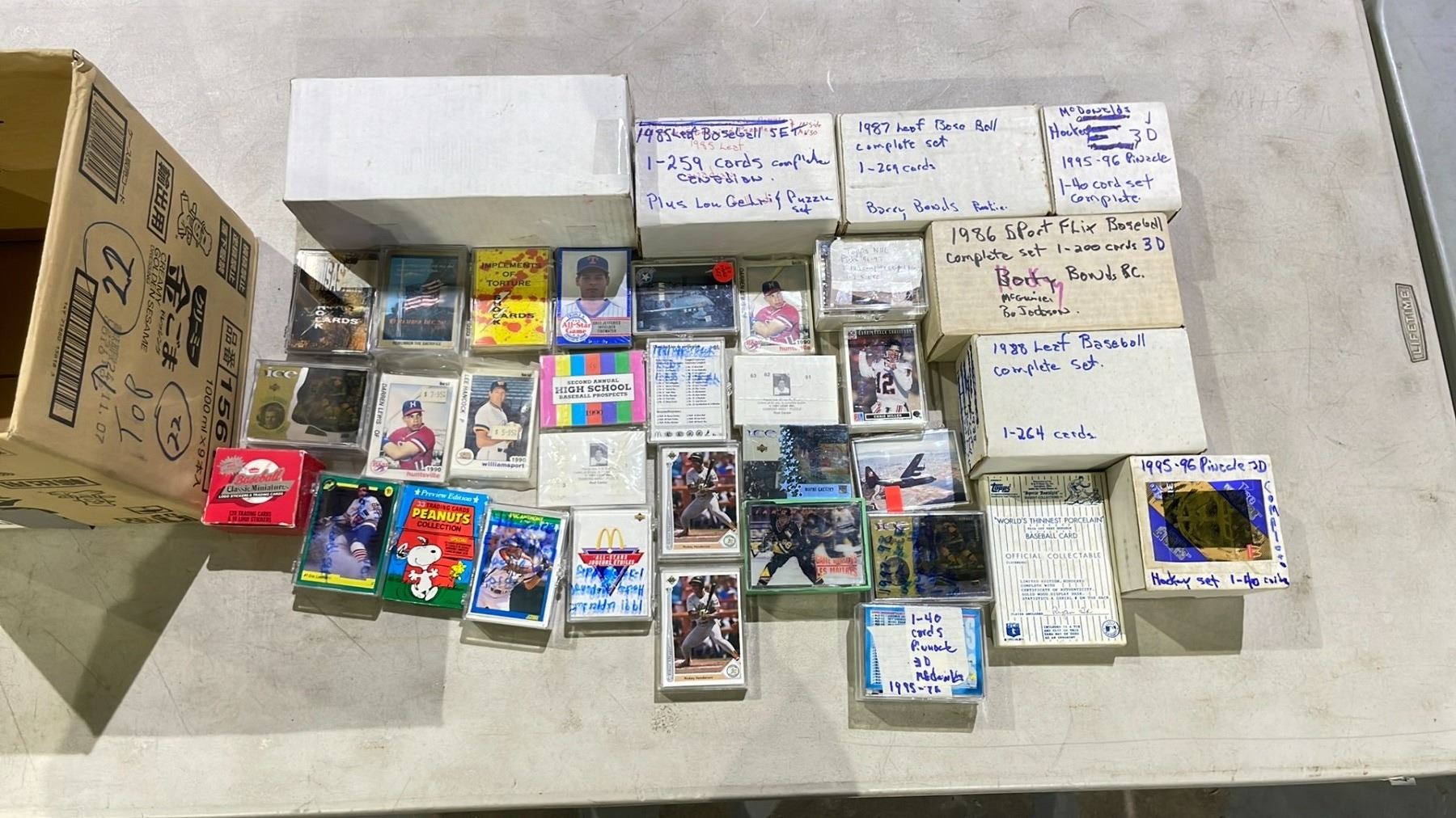 1 1985 LEAF BASEBALL SET, 1-259 CARDS (COMPLETE) 1 1986 SPORT FLIX BASEBALL 3-D SET, 1-200 CARDS (COMPLETE) 1 1987 LEAF BASEBALL SET, 1-264 CARDS (COMPLETE) 1 1988 LEAF BASEBALL SET, 1-264 CARDS (COMPLETE) 1 1986 FLEER CLASSIC MINIATURES BASEBALL SET, 120 CARDS, PLUS 18 CARDS, PLUS STICKERS (COMPLETE) 1 1996 -1997 TOPPS NHL PICKS, 1-179 SKIPPED NO. SET (COMPLETE) 1 1991 CLASSIC HOCKEY PREMIER EDITION, 1-50 CARDS (COMPLETE) 4 1995-1996 HOCKEY PINNACLE MCDONALDS 3-D SETS, 1-40 CARDS EACH (COMPLETE) 1 1994 FLEER HOCKEY POWER PLAY HIBOY SET, STARS ROOKIES SPARE 3 1997-1998 UPPERDECK MCDONALDS HOCKEY SET, 1-40 CARDS (COMPLETE) 1 1990 SCORE BASEBALL ERIC ANTHONY ROOKIE NO. 45, 1 BOX OF 40 2 1991 UPPER DECK MCDONALDS HOCKEY SETS, 1-25 CARDS, PLUS 6 HOLOGRAMS 1 1990 LITTLE SUN BASEBALL HIGHSCHOOL PROSPECTS SET, 1-24 CARDS 2 1991 LEAF BASEBALL PUZZLES, ROD CAREW 1 1990 HUNTSVILLE STARS BASEBALL SET, 1-26 CARDS (FACTORY SEALED) 1 1990 TOP PILOT 30 CARD SET (COMPLETE) 1 REMEMBER PEARL HARBOUR 50 CARD SET (COMPLETE) 1 1992 PERSONALITY COMICS SHOCK TORTURES CARD SET OF 36 (COMPLETE) 1 1992 PERSONALITY COMICS SHOCK CARDS GREAT DISASTERS, 1-36 (COMPLETE) 1 1991 TOP PILOT BLUE ANGELS SET, 14 CARDS (COMPLETE) 1 1988 TRIPLE A ALL STAR GAME, TIDE WATER CARD SET (FACTORY SEALED) 1 1965 PEANUT TRADING CARDS SET (COMPLETE) 1 1990 OFFICIAL STAR CARDS, HUNTSVILLE, 1-26 CARDS (FACTORY SEALED) 1 1990 OFFICIAL STAR CARDS, WILLIAM SPORT BILL, 1-26 CARDS 2 1991 UPPER DECK SILVER SLUGGERS SET, 1-18 CARDS 1 UPPER DECK BOSTON PIZZA QUARTERBACK CHALLENGE, 50 CARD SET 1 1992 TOPPS PORCELAIN BASEBALL CARD, NOLAN RYAN