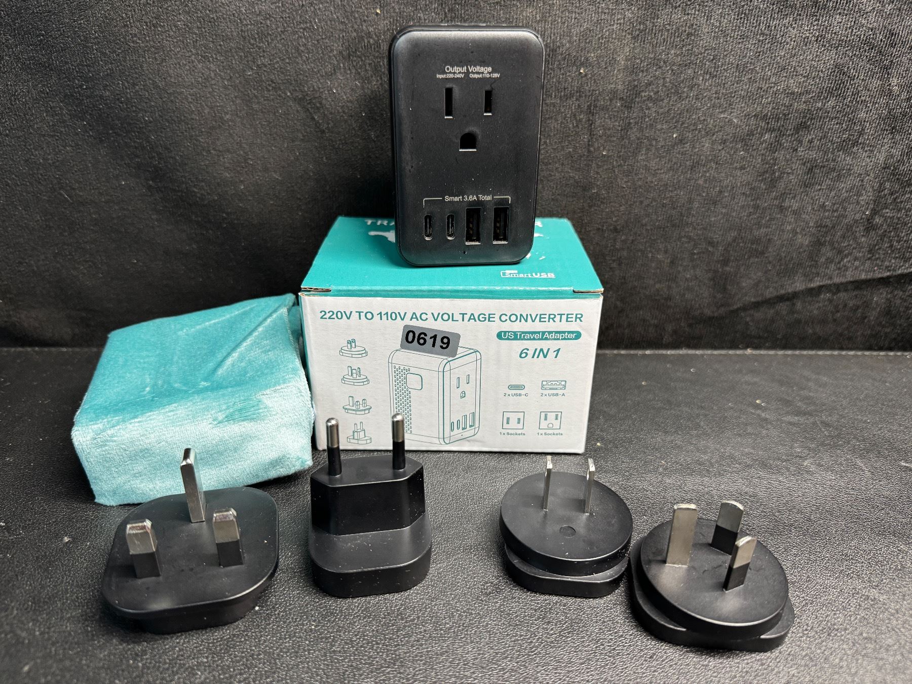 1 220V to 110V AC Voltage Converter 6-in-1 Travel Adapter Plug w/ USB-C & USB-A Ports - Brand New!