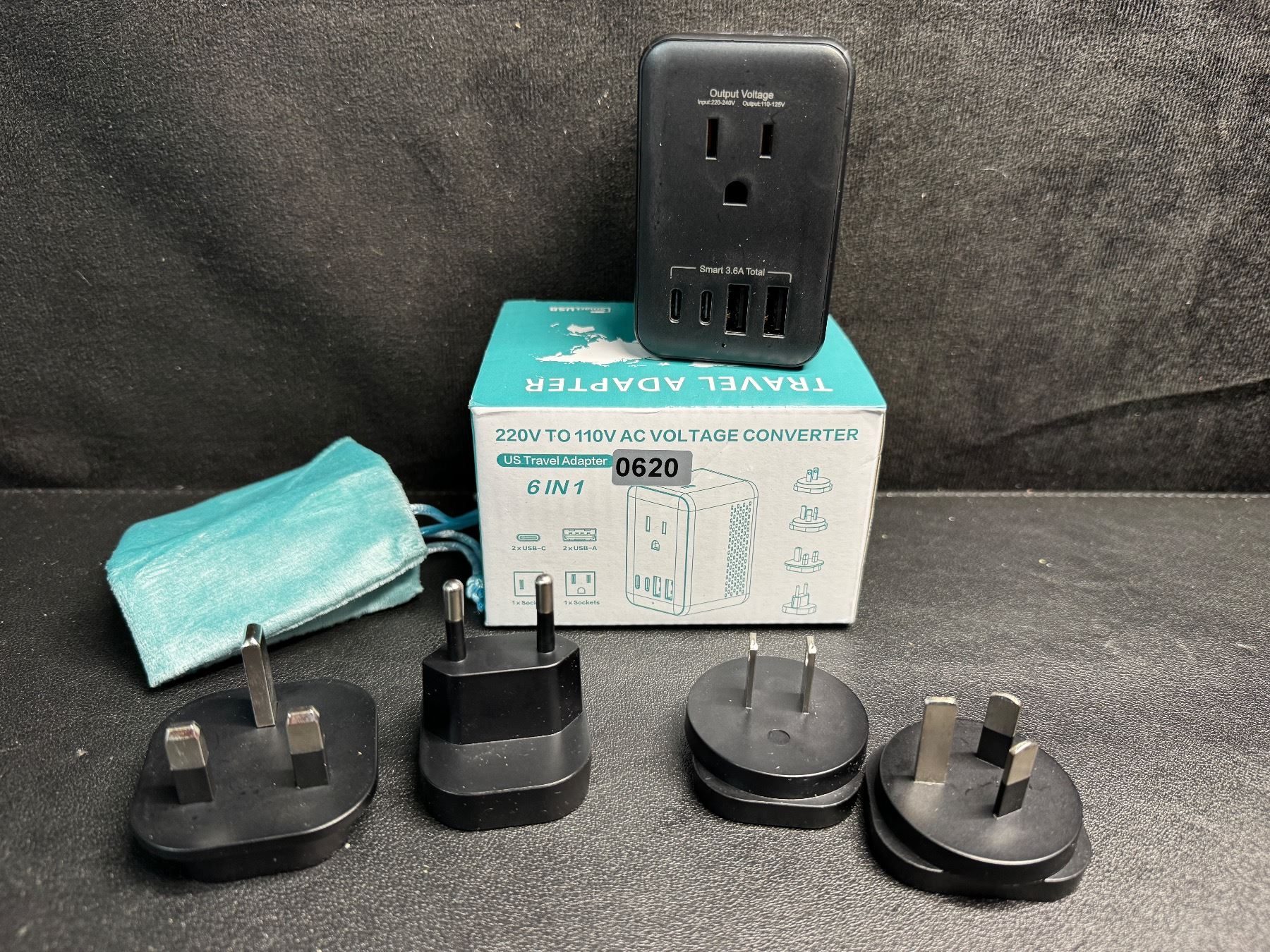 1 220V to 110V AC Voltage Converter 6-in-1 Travel Adapter Plug w/ USB-C & USB-A Ports - Brand New!