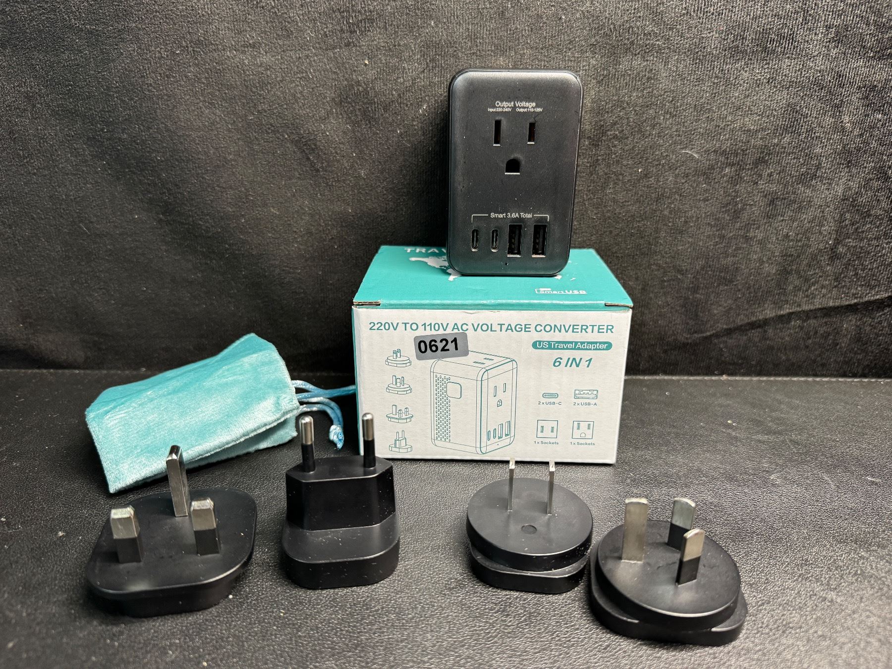 1 220V to 110V AC Voltage Converter 6-in-1 Travel Adapter Plug w/ USB-C & USB-A Ports - Brand New!