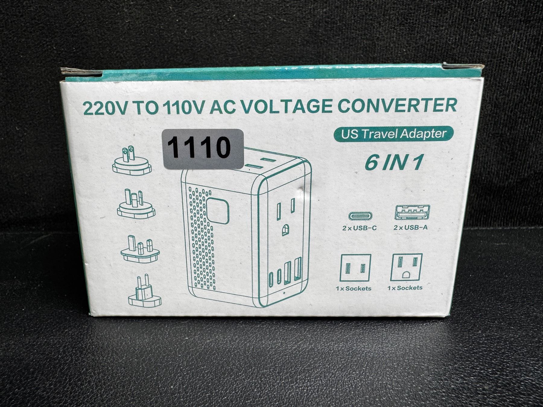 1 220V to 110V AC Voltage Converter 6-in-1 Travel Adapter Plug w/ USB-C & USB-A Ports - Brand New!