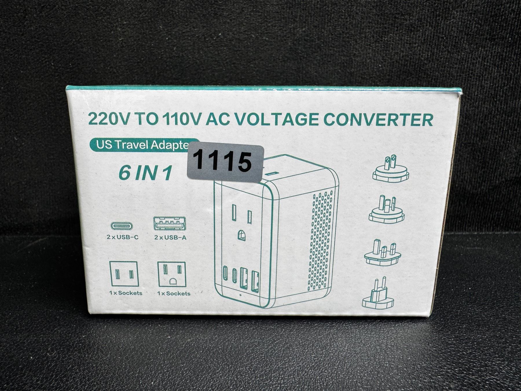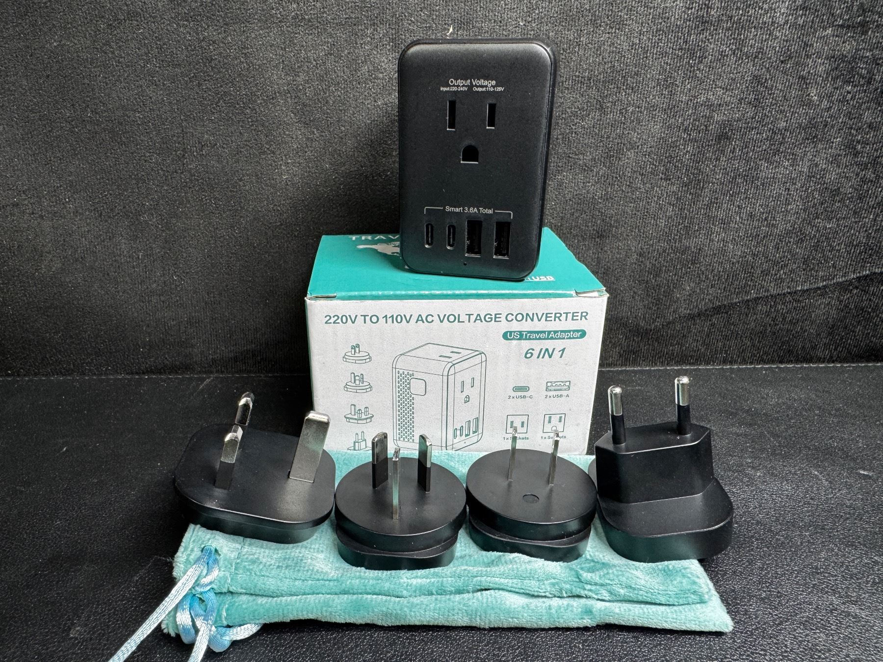 1 220V to 110V AC Voltage Converter 6-in-1 Travel Adapter Plug w/ USB-C & USB-A Ports - Brand New!