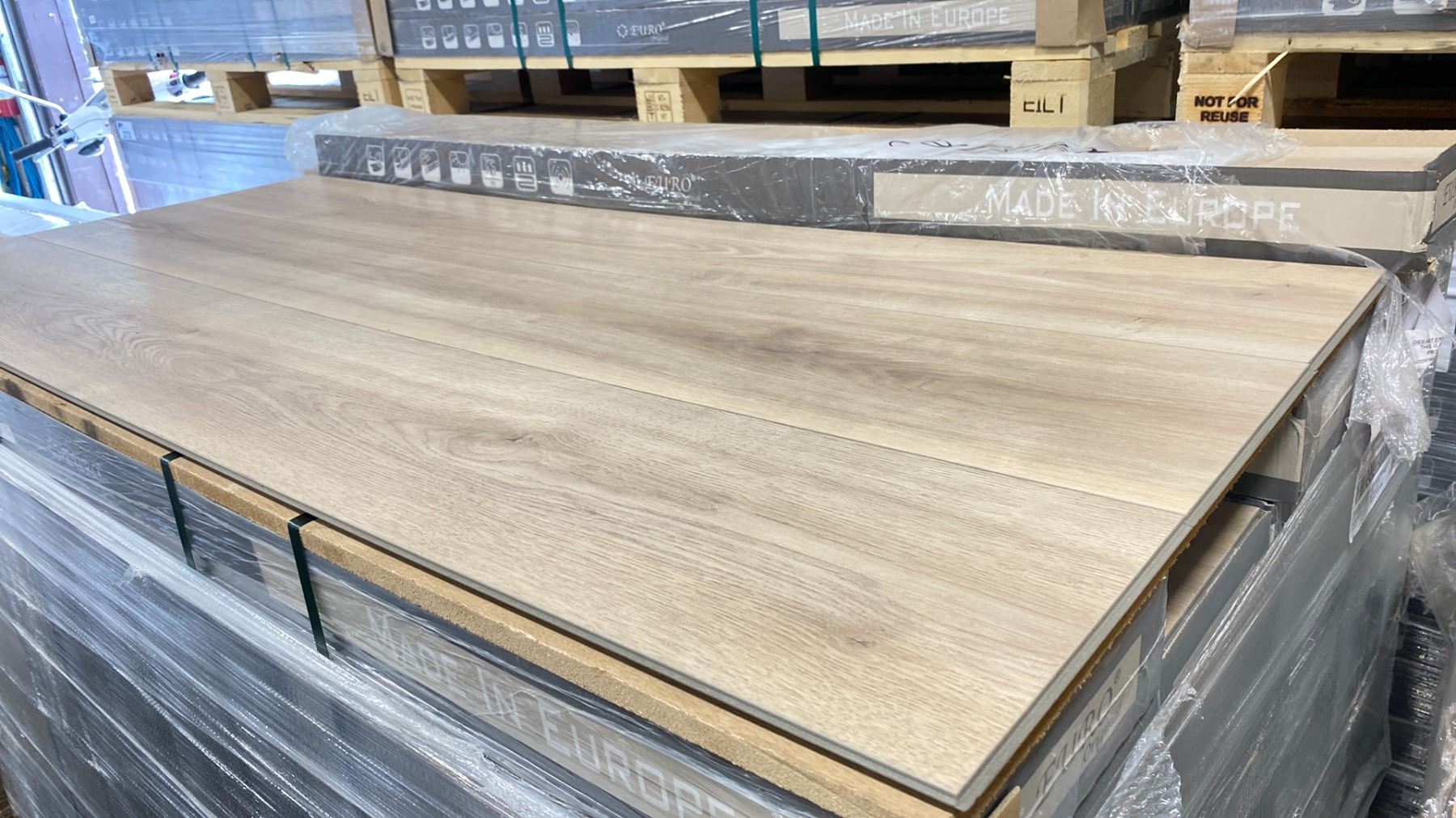 1,344.72 SQ FT OF EURO ORIGINAL AQUA GENIUS COLLECTION 8MM ROSARIO 1422 GLUELESS LAMINATE FLOORING 25.86 SQ FT PER BOX 52 BOXES 1,344.72 SQ FT TOTAL *MUST TAKE ALL ON PALLET*