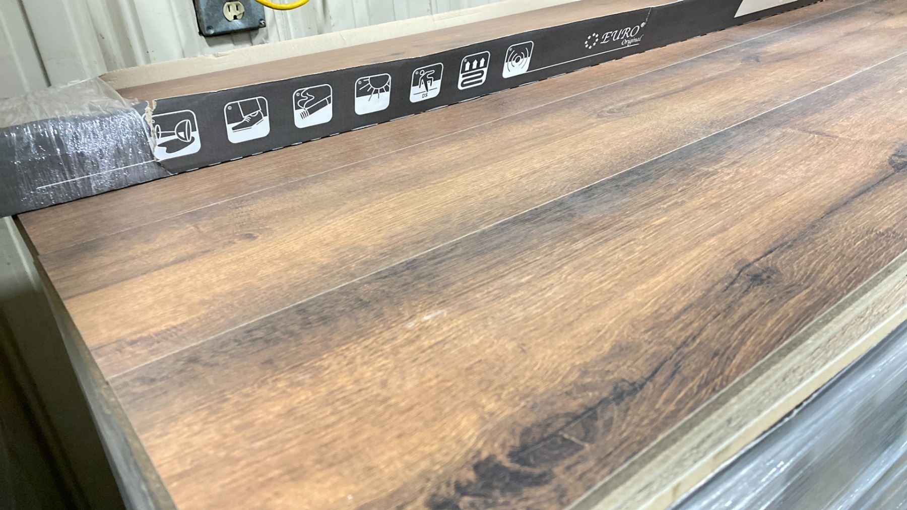 1,344.72SQ FT OF EURO ORIGINAL AQUA GENIUS COLLECTION BOGOTA 8MM GLUELESS LAMINATE FLOORING 25.86 SQ FT PER BOX, 52 BOXES, 1,344.72 SQ FT TOTAL *MUST TAKE ALL ON PALLET*