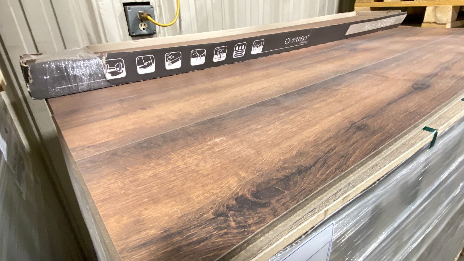 1,344.72SQ FT OF EURO ORIGINAL AQUA GENIUS COLLECTION BOGOTA 8MM GLUELESS LAMINATE FLOORING 25.86 SQ FT PER BOX, 52 BOXES, 1,344.72 SQ FT TOTAL *MUST TAKE ALL ON PALLET*