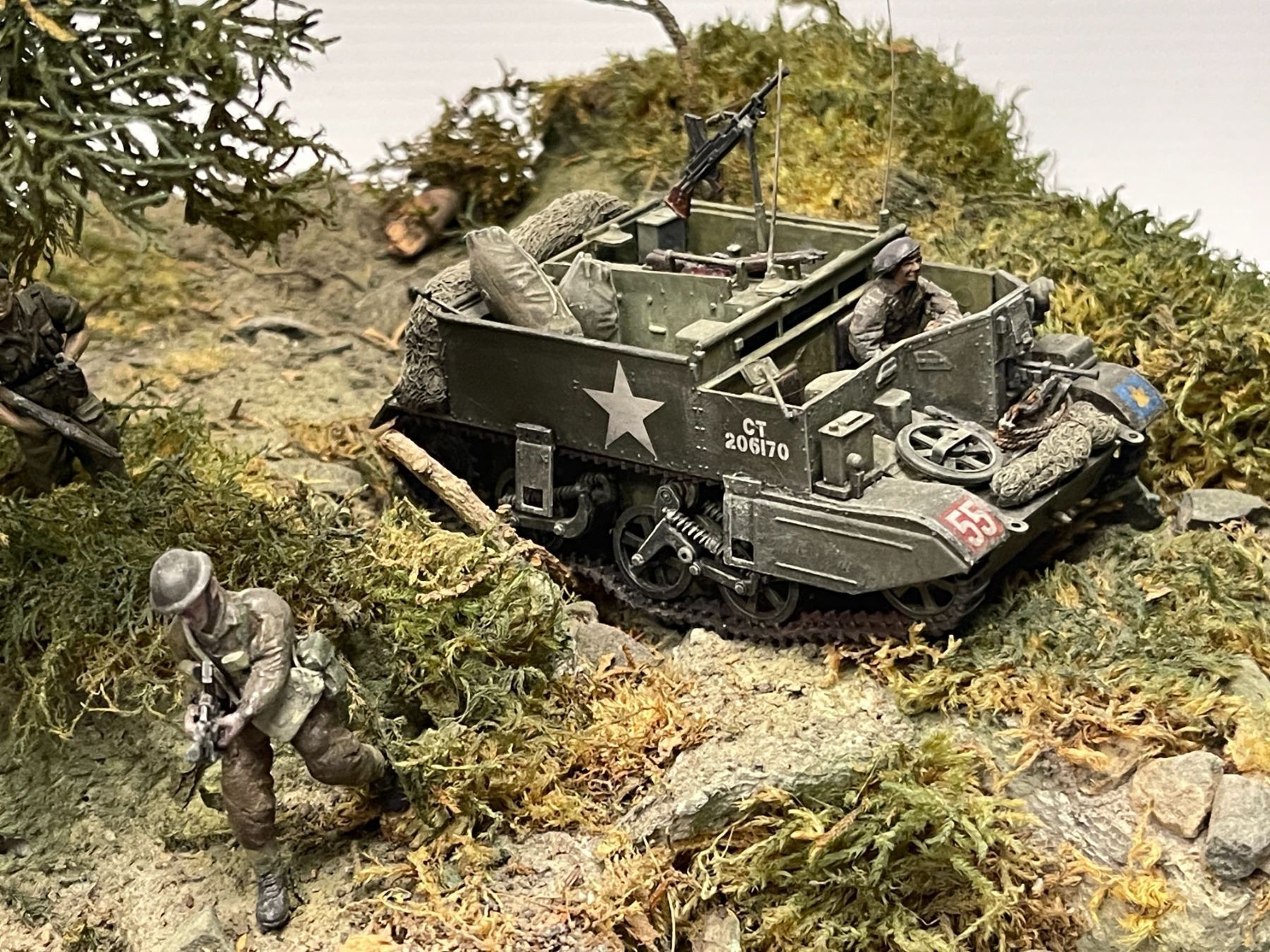 1/35th scale custom-made Military miniature soldiers & tank museum quality diorama w/ British Bren Gun Carrier - approx. 17 1/2in wide x 12in height